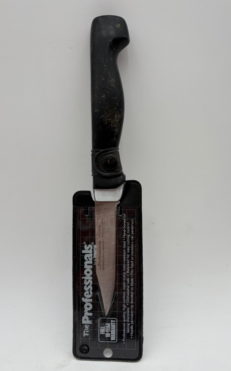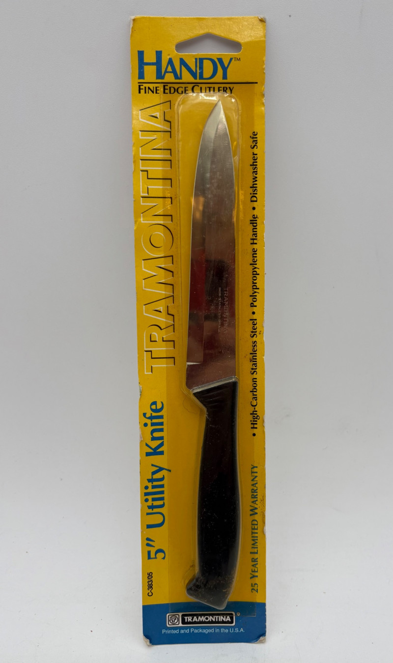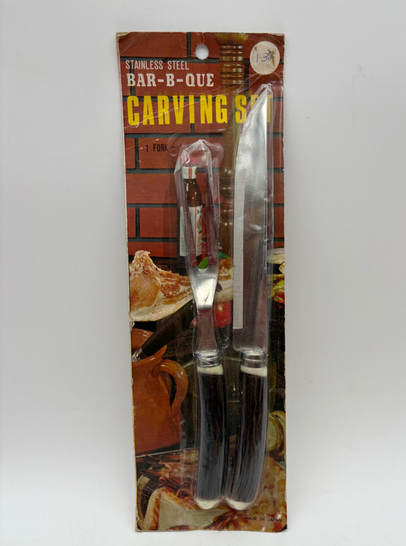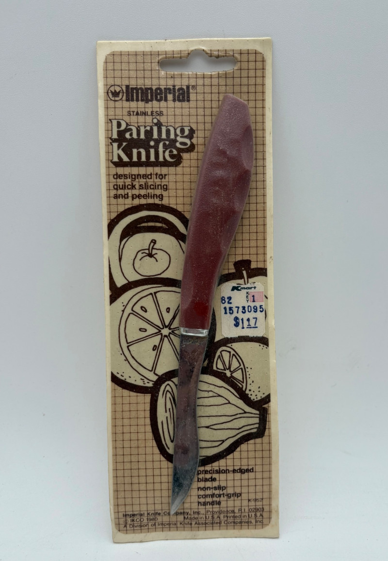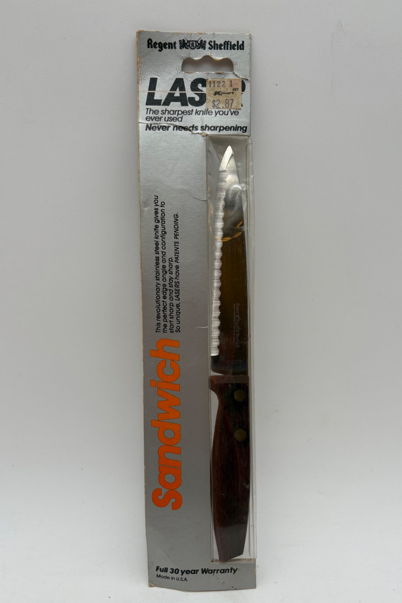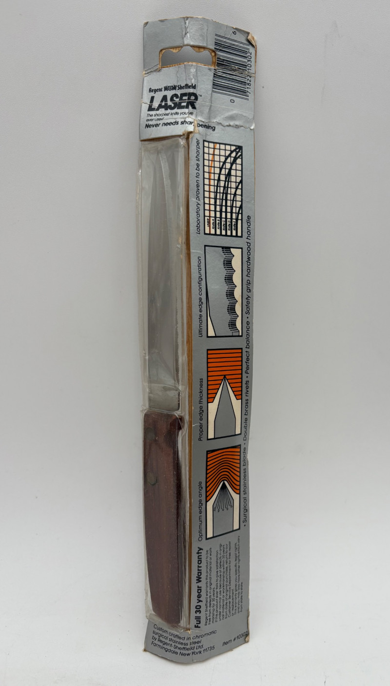 Large group of vintage knives from numerous makers - all appear to be new & unused upon cursory glance. Enjoy never having to hunt for a knife when you need it! Also included are a magnetic wall rack and sharpening stone.