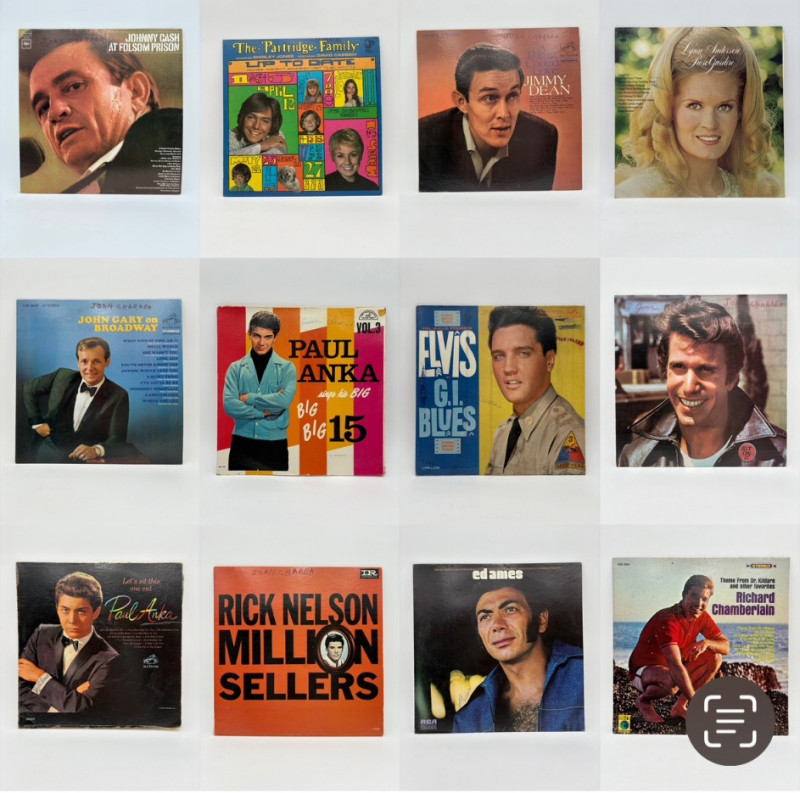 12 vintage LPs for your retro turntable! Our clients LOVED classic country music, Elvis, and popular music of the 1960s/1970s. Their records were well-loved and unless otherwise indicated as "new in packaging", were played a fair amount - check the photos to see which LPs are included in this lot. Artists in this lot include: Fonzie Partridge Family Paul Anka (2 albums) Elvis Presley Ed Ames Jimmy Dean Johnny Cash John Gary Richard Chamberlain Rick Nelson Lynn Anderson