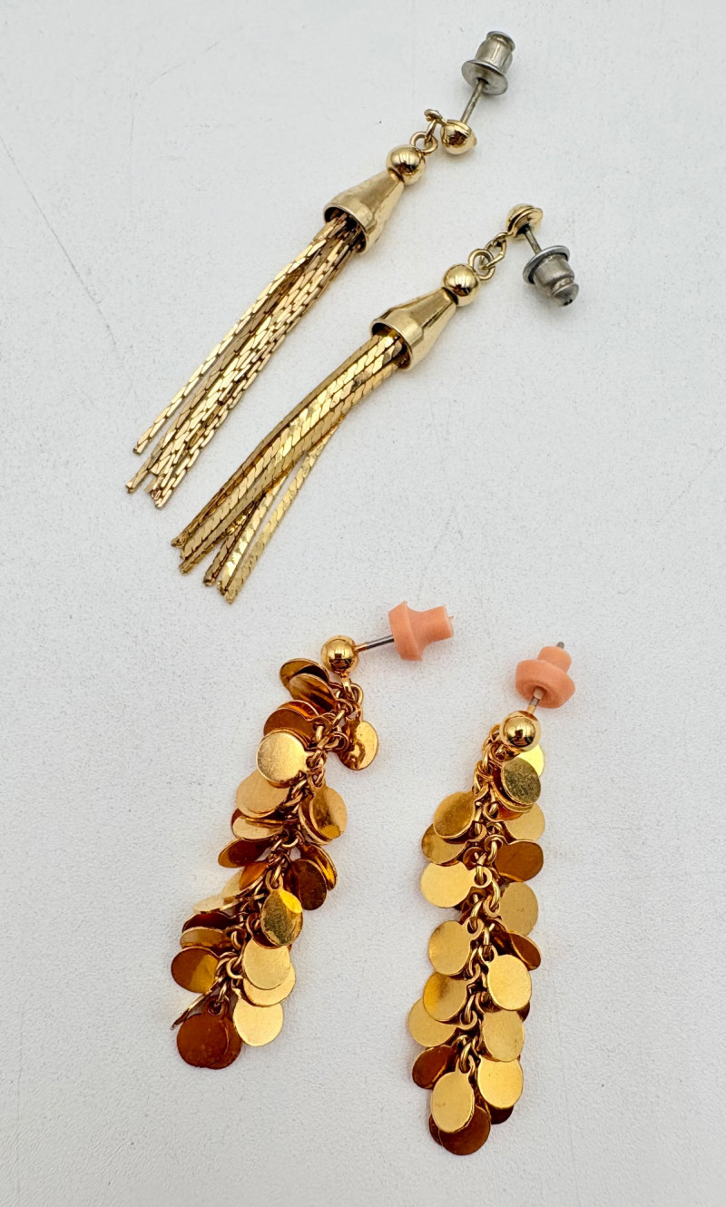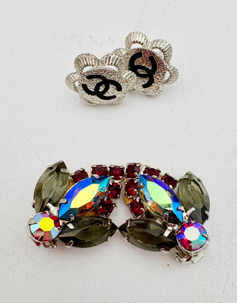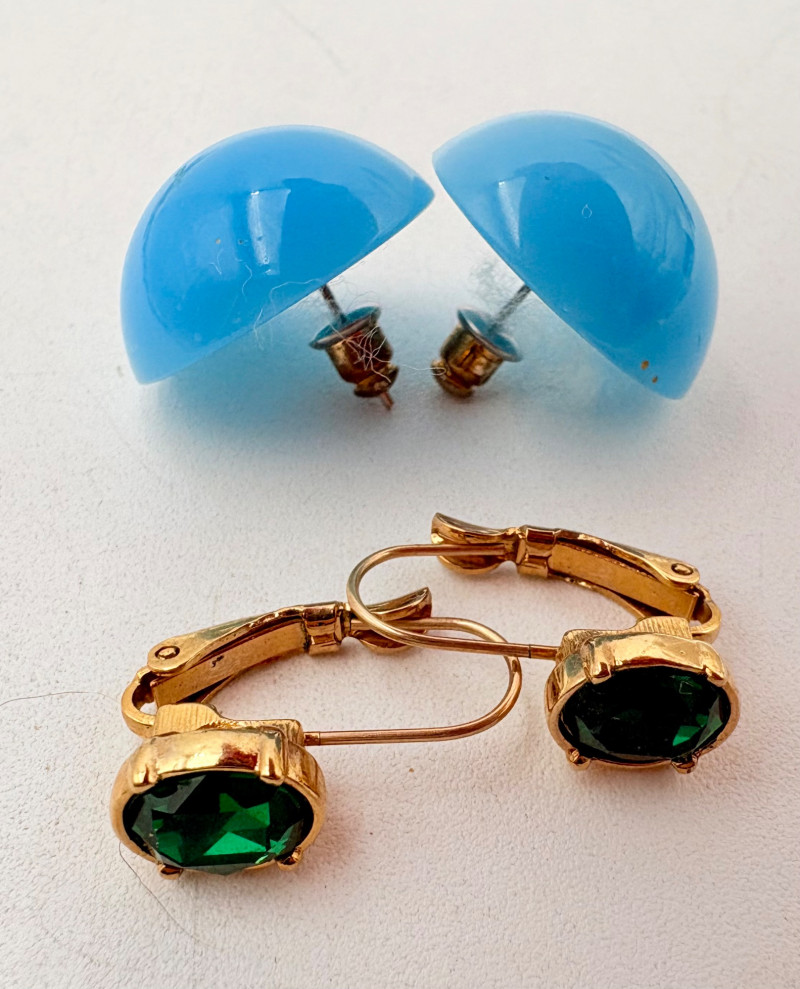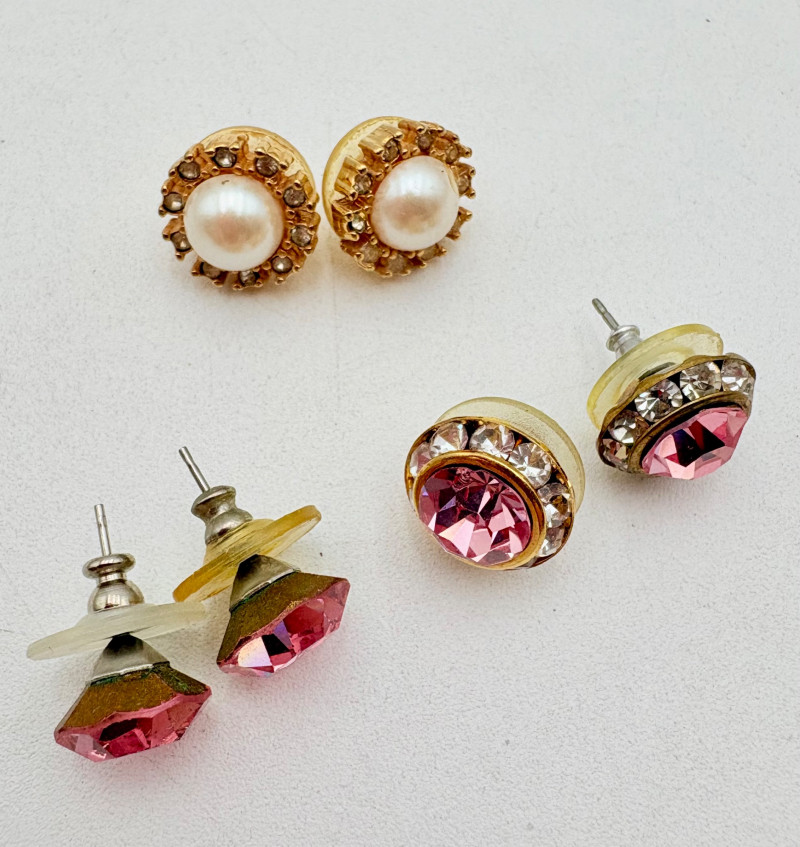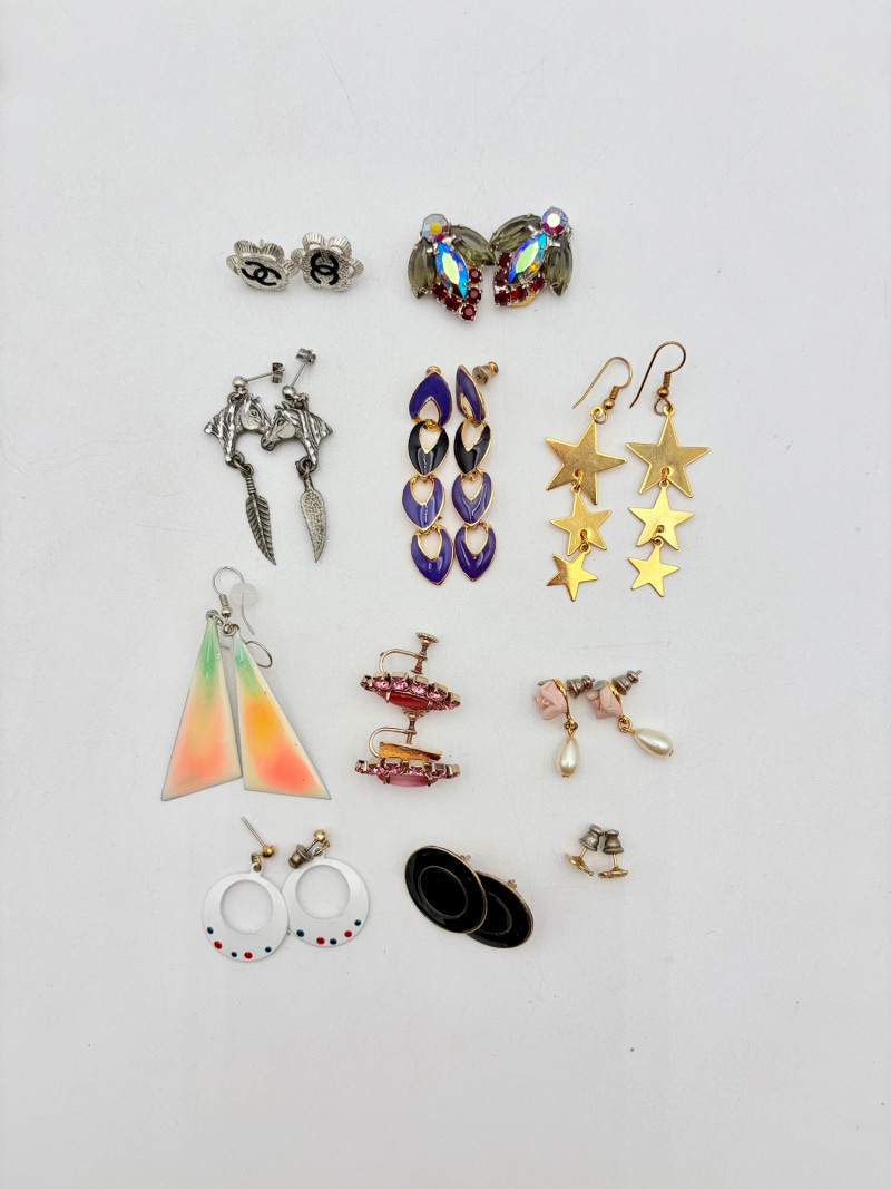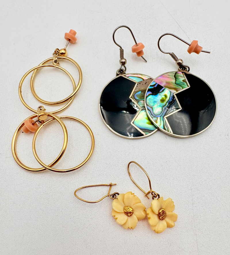 Your grandma's jewelry was vintage and yours is contemporary - your mom's falls somewhere in-between! This is a large grouping of vintage & almost vintage earrings and necklaces we would consider "transitional" in style (sounds better than "mom style", no?) Please see photos for details - earrings are a mix of clip-on and pierced with most being the latter.