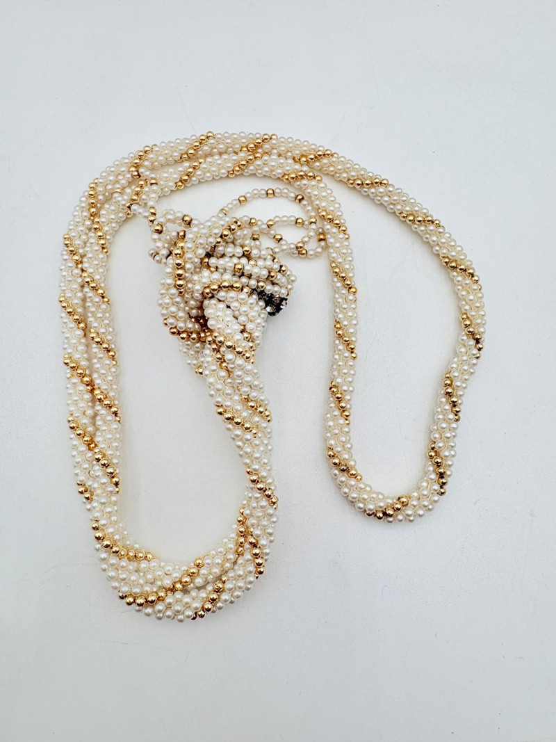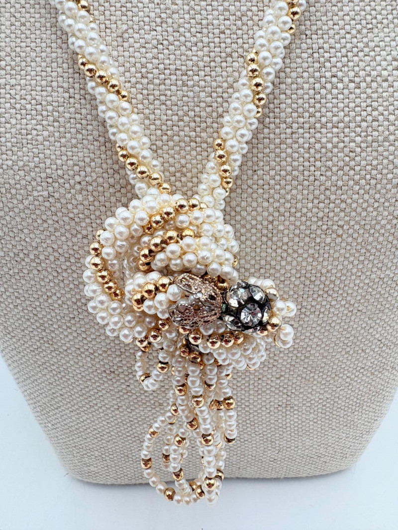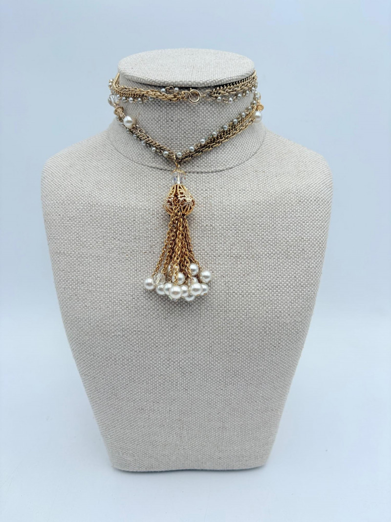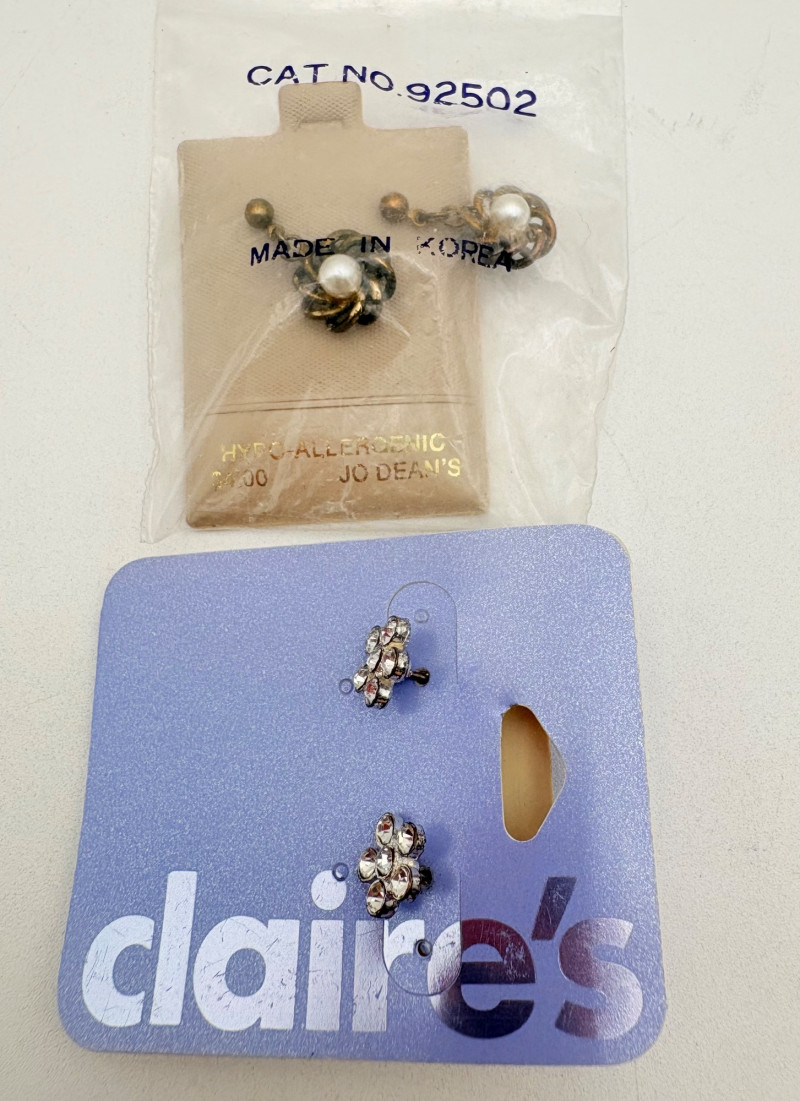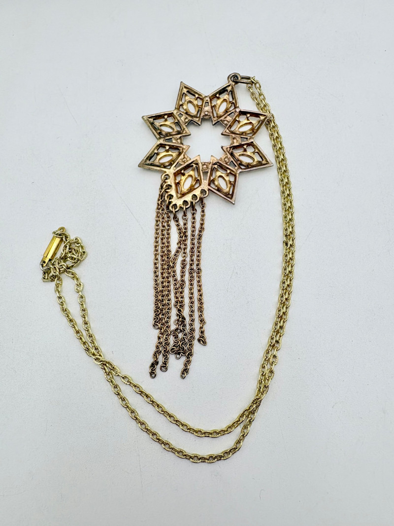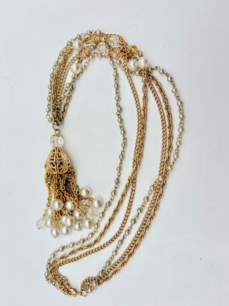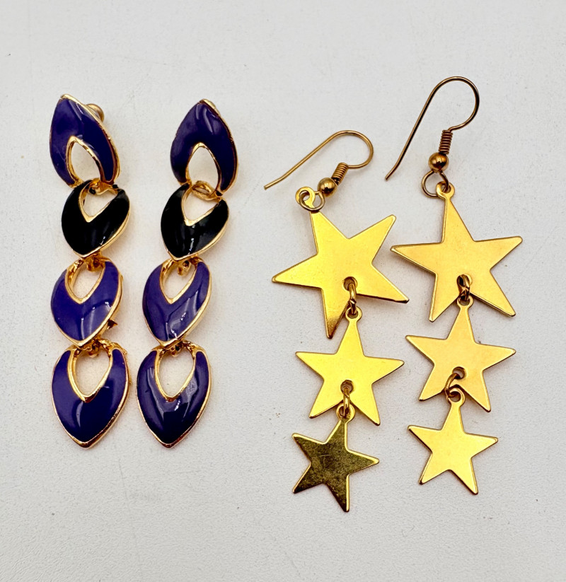 Your grandma's jewelry was vintage and yours is contemporary - your mom's falls somewhere in-between! This is a large grouping of vintage & almost vintage earrings and necklaces we would consider "transitional" in style (sounds better than "mom style", no?) Please see photos for details - earrings are a mix of clip-on and pierced with most being the latter.