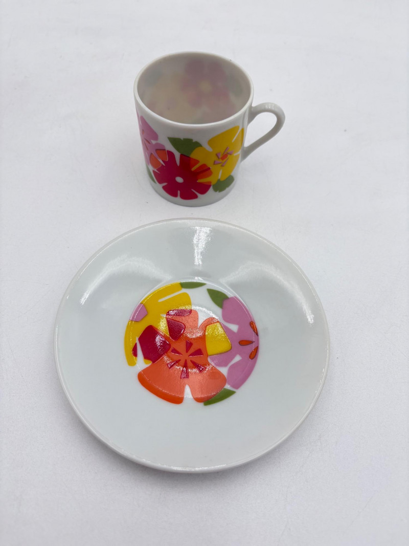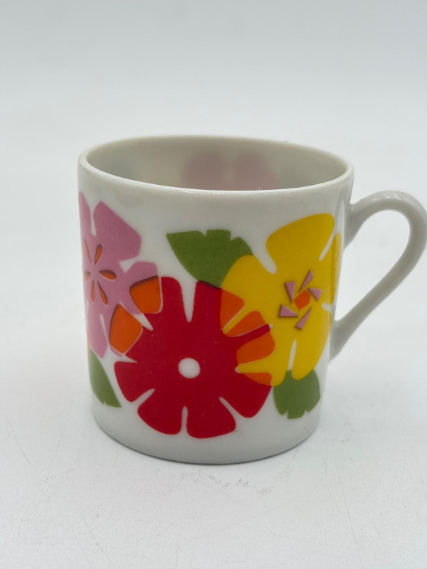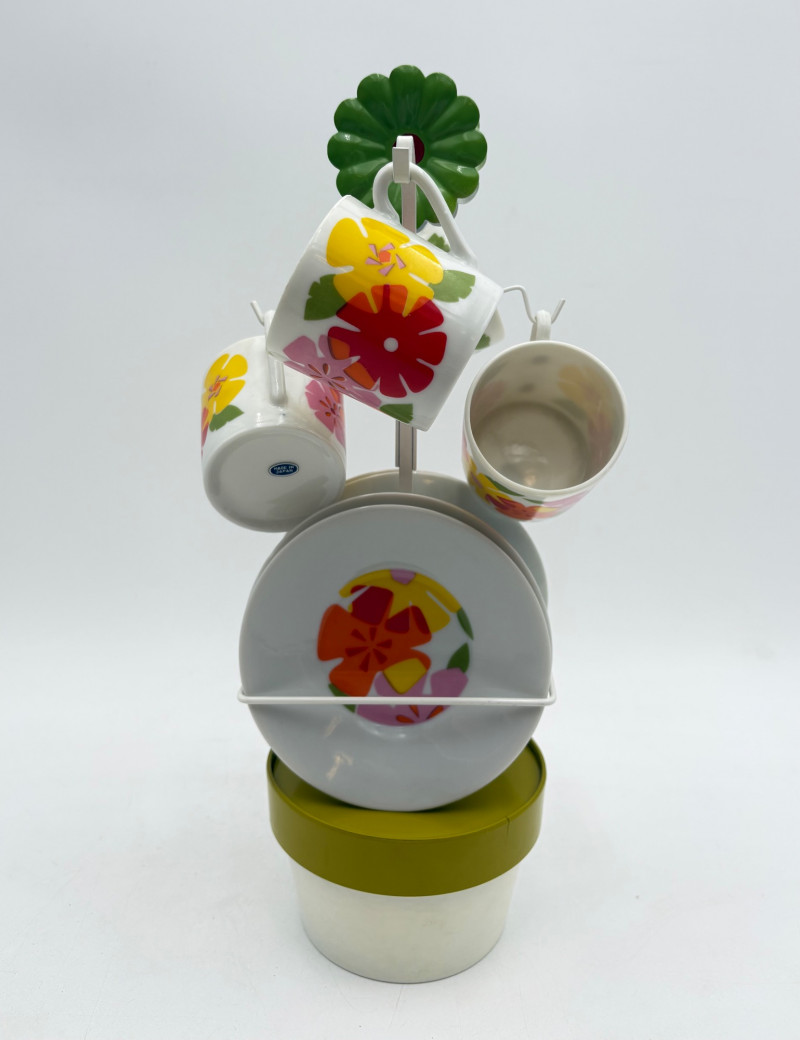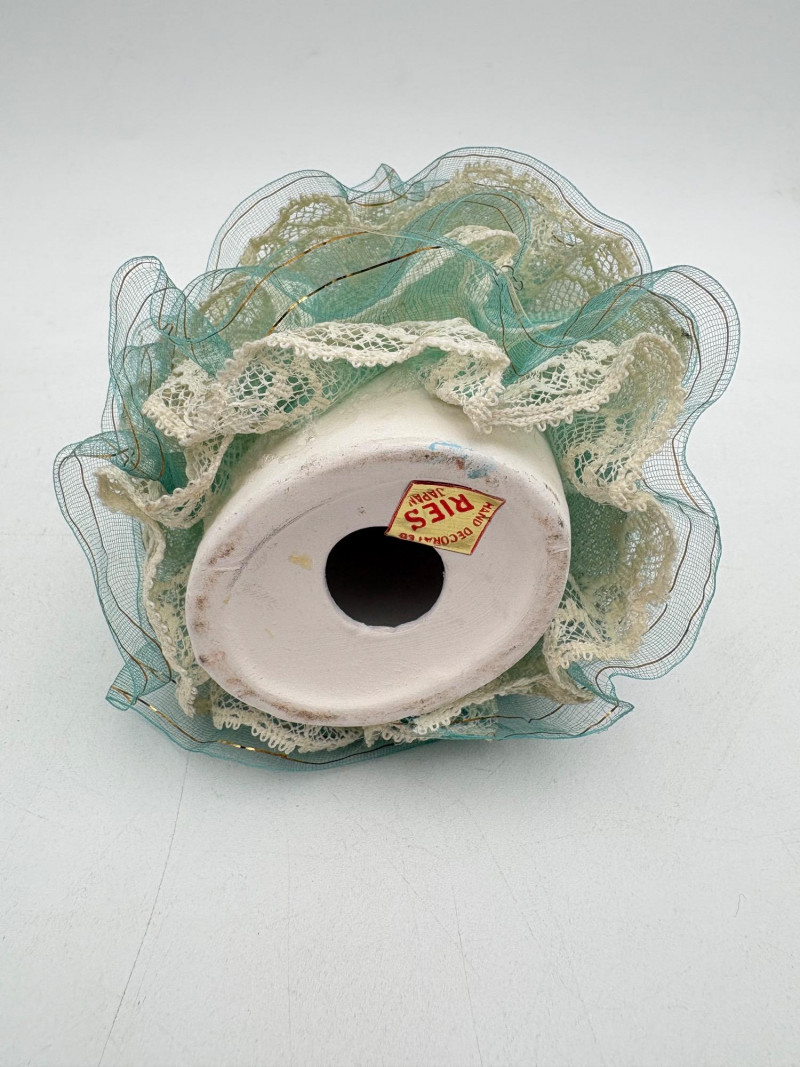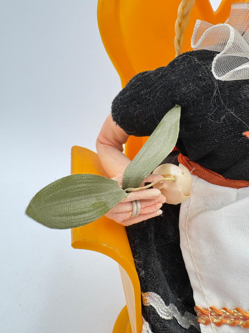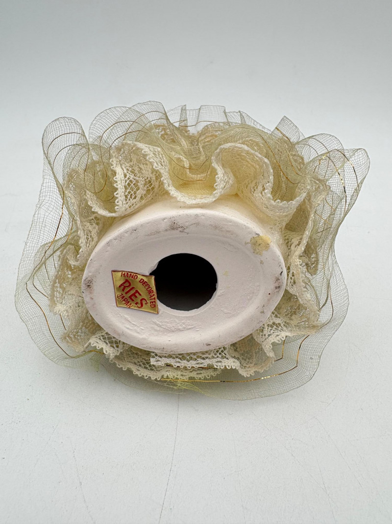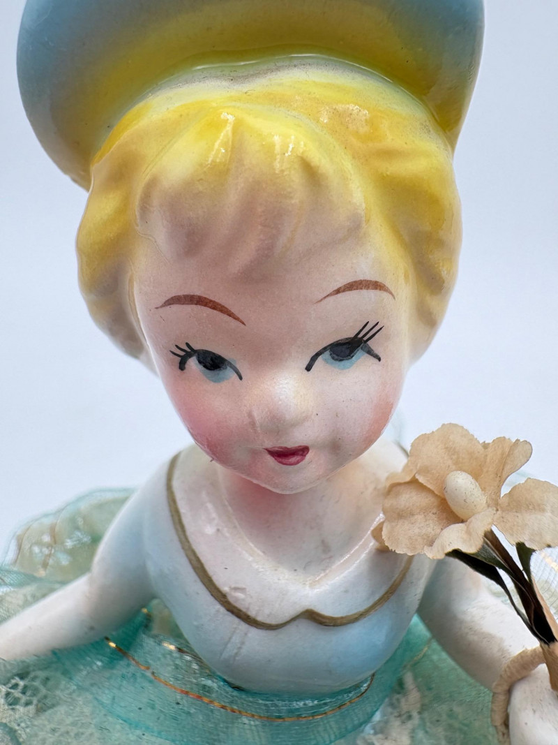 Three very vintage 1960s dolls to share your afternoon tea with - The ladies are all made in Japan and your event even has musical accompaniment! All are in good vintage condition with a few minor flaws here and there. Large doll in black dress sits in a mod 1960s chair that plays music and spins her around - works great! She measures approx. 12" H. From Tokyo manufacturer Senpo. Pair of porcelain fancy dolls with layered tulle fabric dresses are from Reis of Japan and measure approx. 6.5" H. Teacups and saucers in a mod design with accompanying metal rack. They are porcelain and made in Japan. Plates measure 4.5" diameter while cups measure 2.25" H. In excellent vintage shape with only very minor flaws from use - most egregious is shown in the last photo but doesn't affect function. Please note - like most other things in this auction, items have been in storage for a long time - a good cleaning would really do right by these items.
