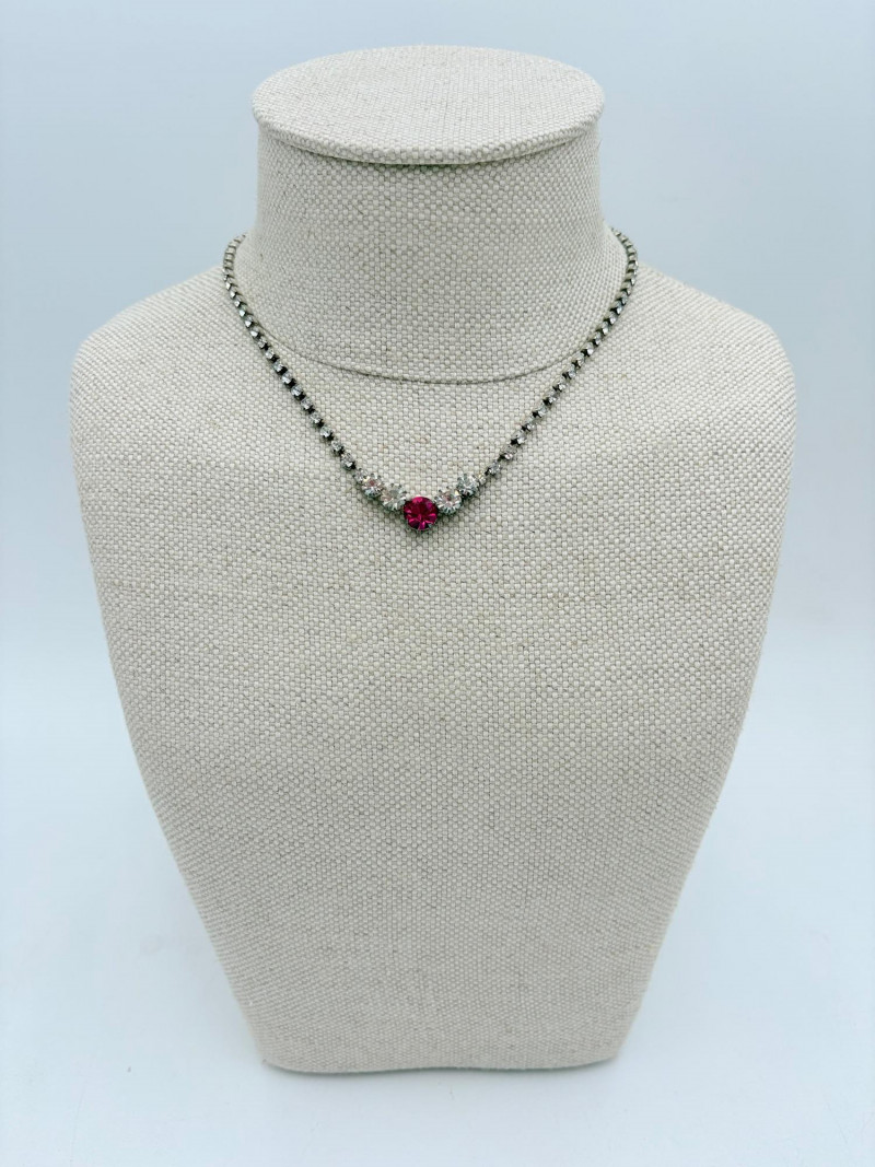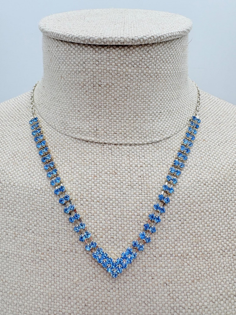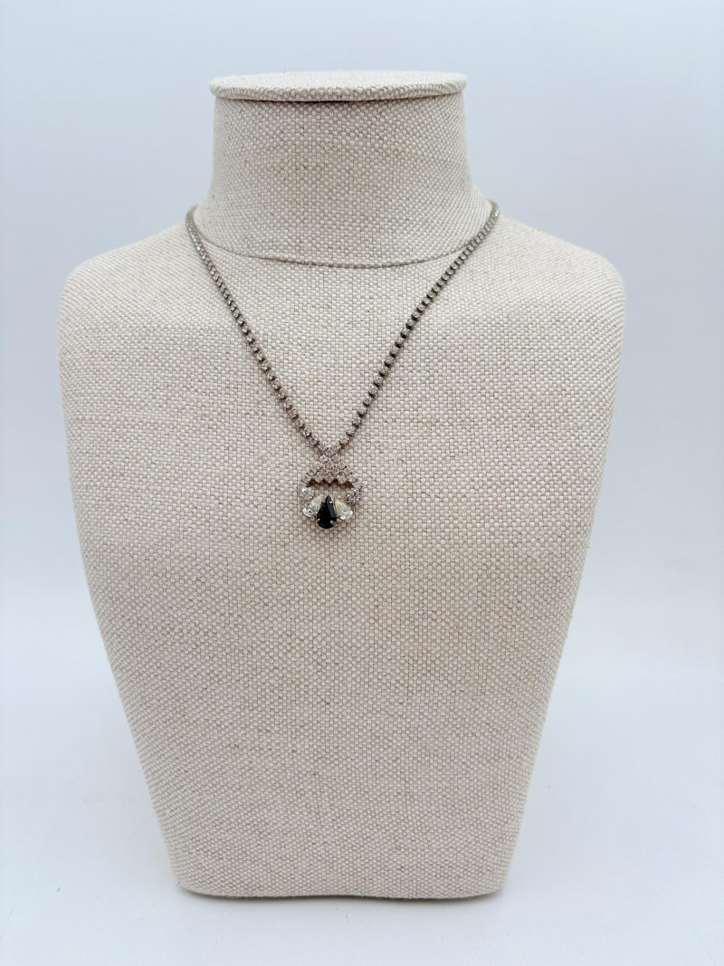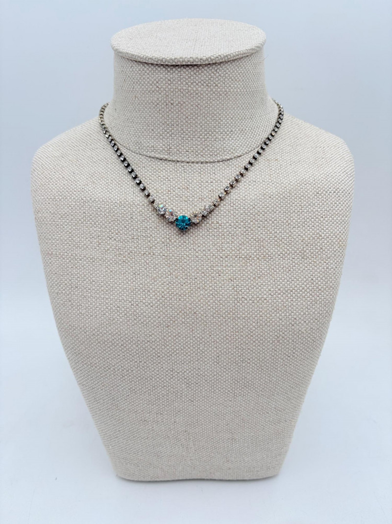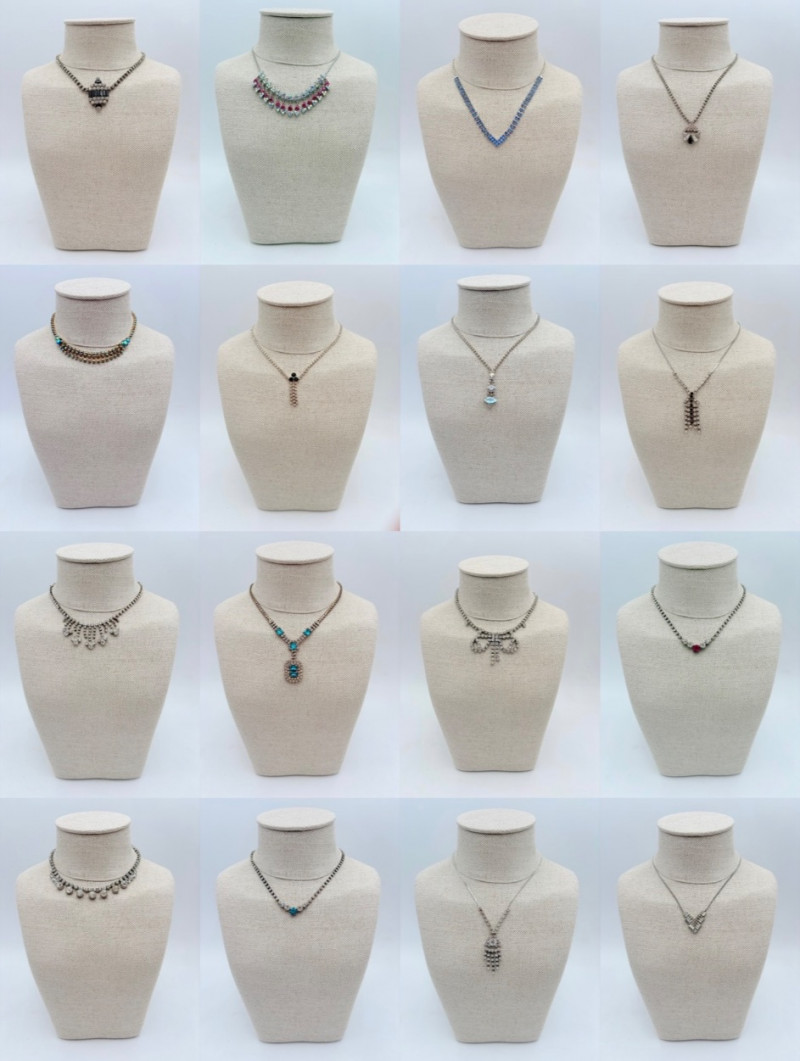 16 rhinestone necklaces in various shapes, sizes, and colors but with one thing in common: SPARKLE! Good quality costume jewelry with many vintage pieces. Please see photos for details.