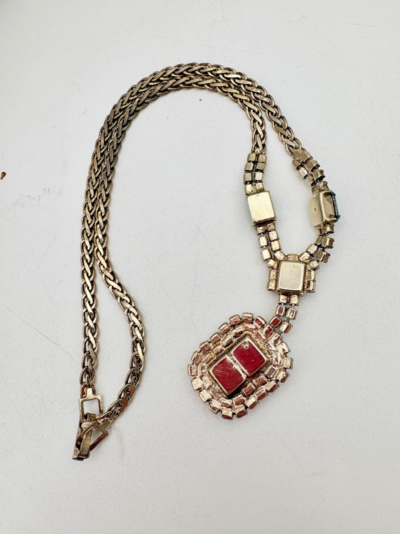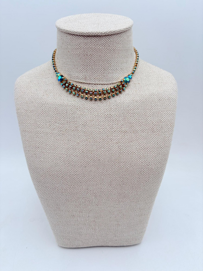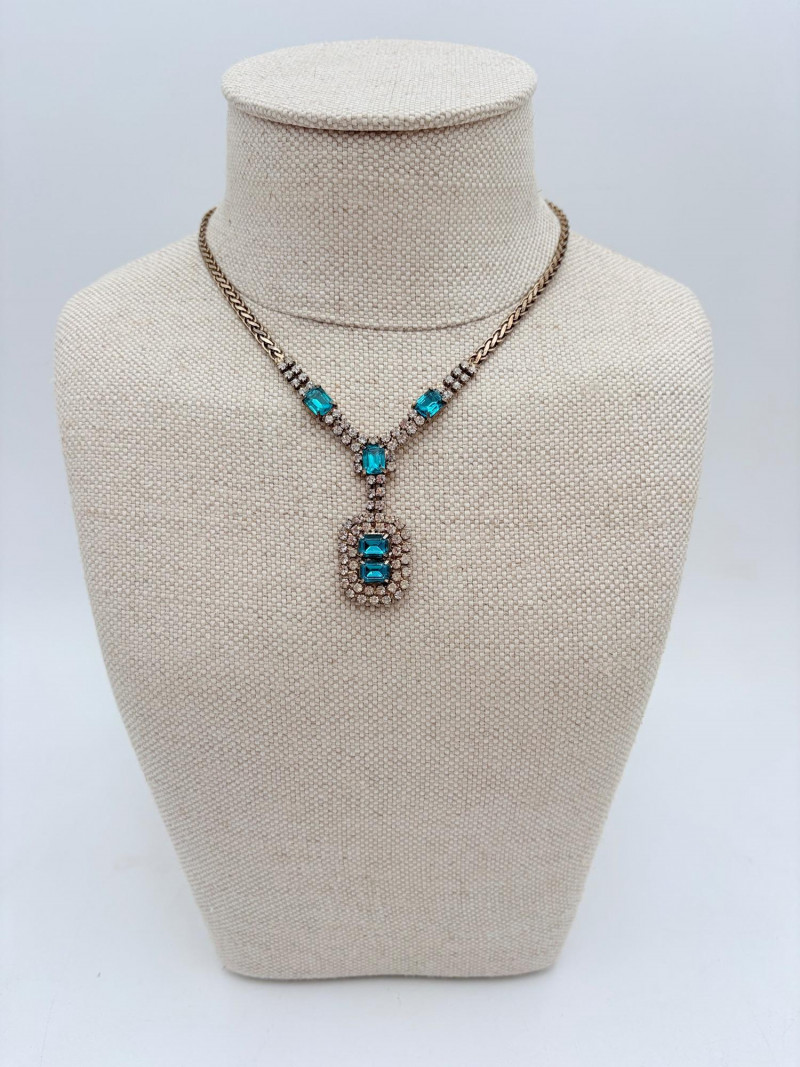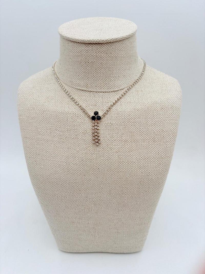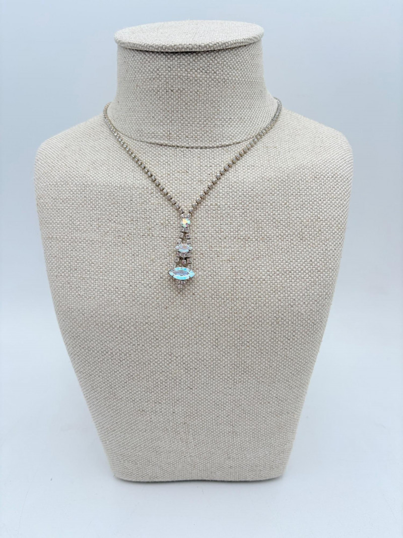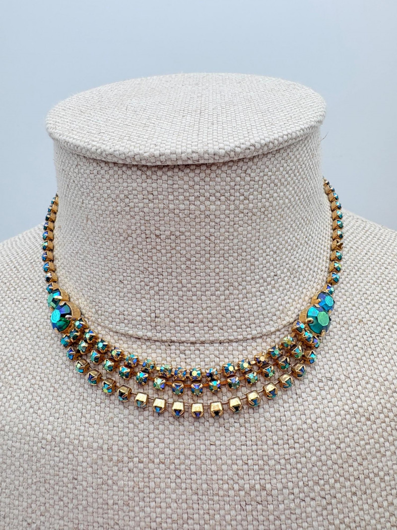 16 rhinestone necklaces in various shapes, sizes, and colors but with one thing in common: SPARKLE! Good quality costume jewelry with many vintage pieces. Please see photos for details.