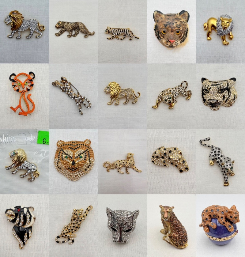 Big herd of big cats - 20 in all. Includes 18 pins and 2 intricate trinket boxes. Good quality costume jewelry with a number of vintage pieces. Please see photos for details.