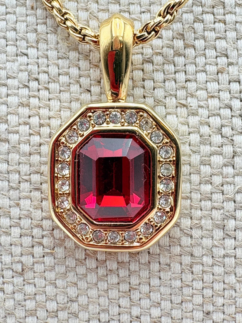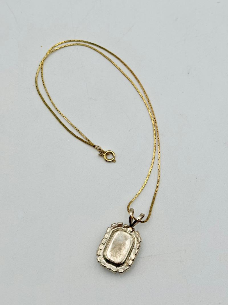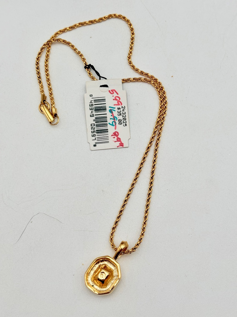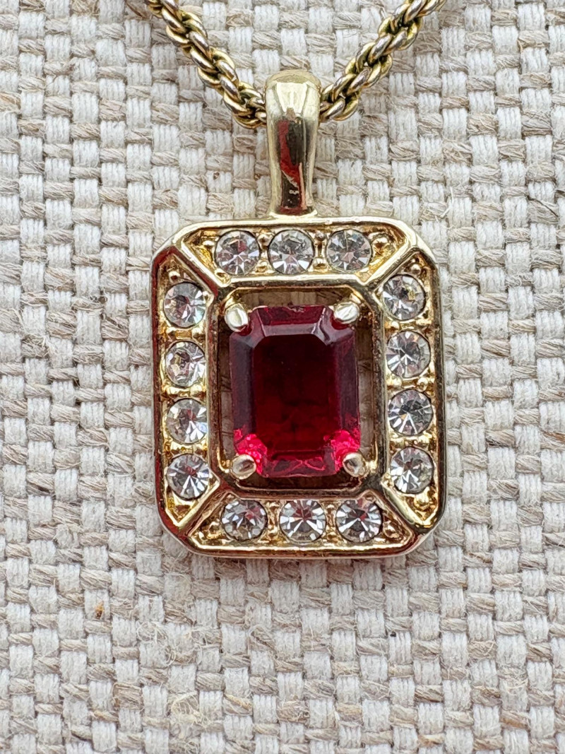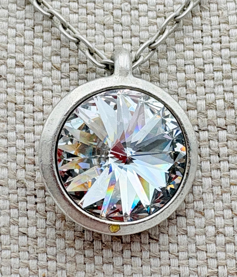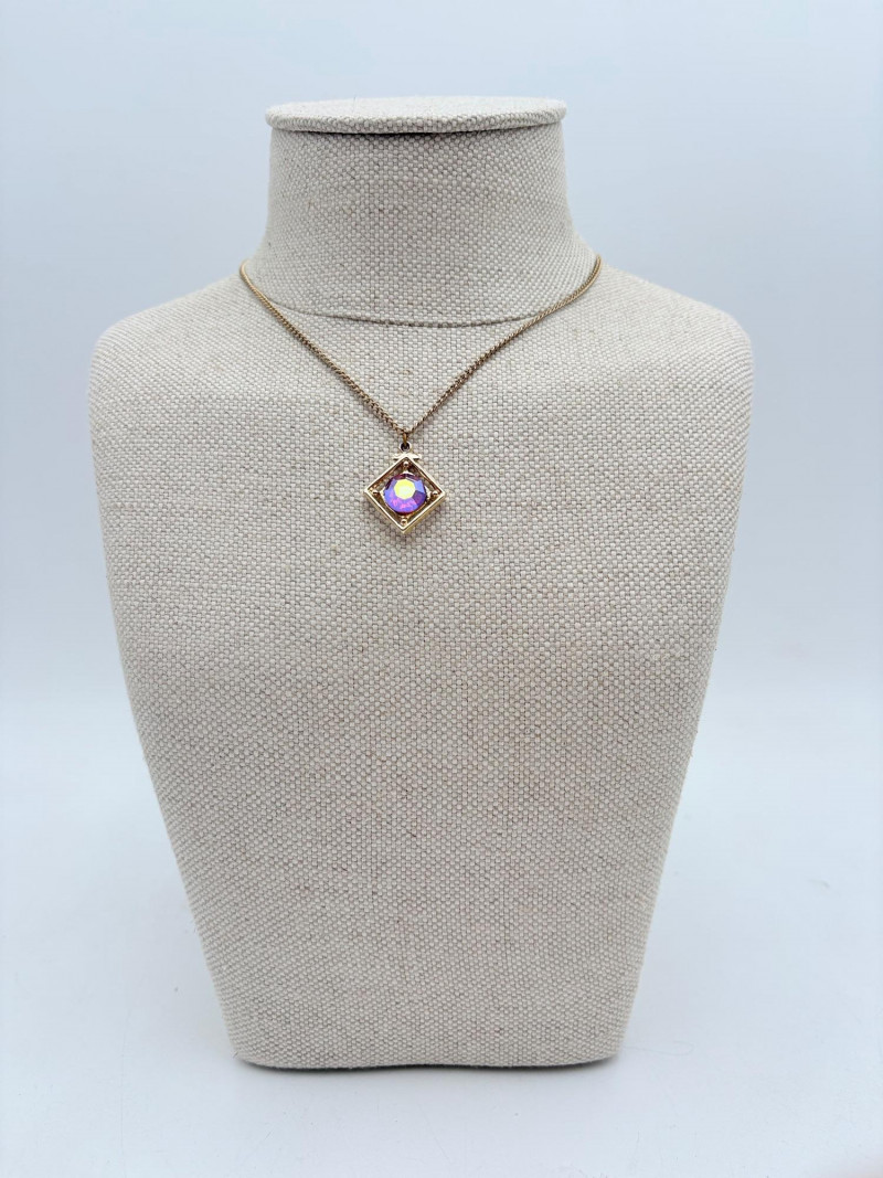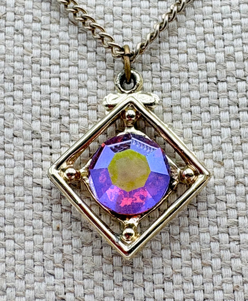 12 sparkly necklaces and 4 pendants that need a chain. Designs are different, but all catch light and sparkle. Good quality costume jewelry with a couple of vintage pieces. Please see photos for detail and note that we think the chains on a few of these are not original to the pendant (differing colors, etc.)