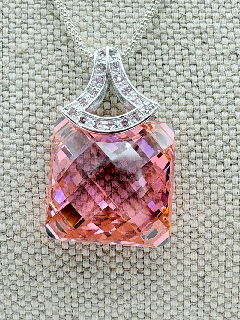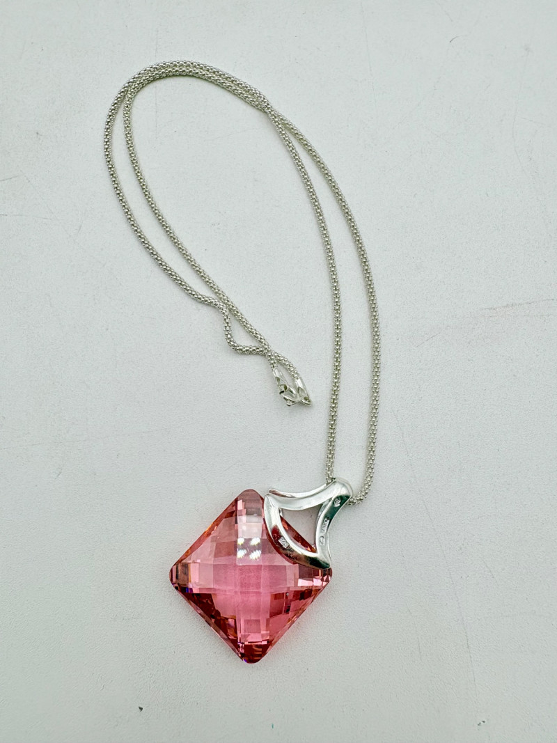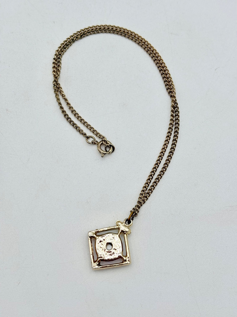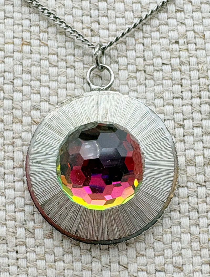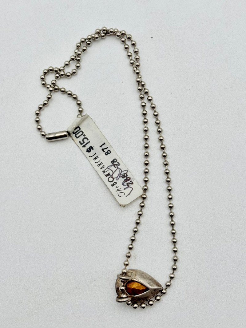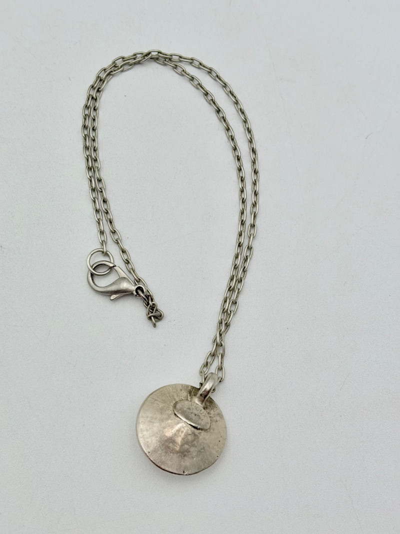 12 sparkly necklaces and 4 pendants that need a chain. Designs are different, but all catch light and sparkle. Good quality costume jewelry with a couple of vintage pieces. Please see photos for detail and note that we think the chains on a few of these are not original to the pendant (differing colors, etc.)