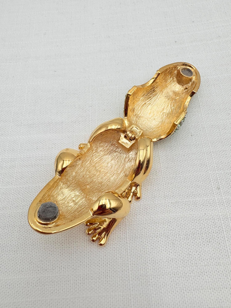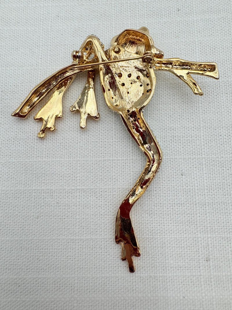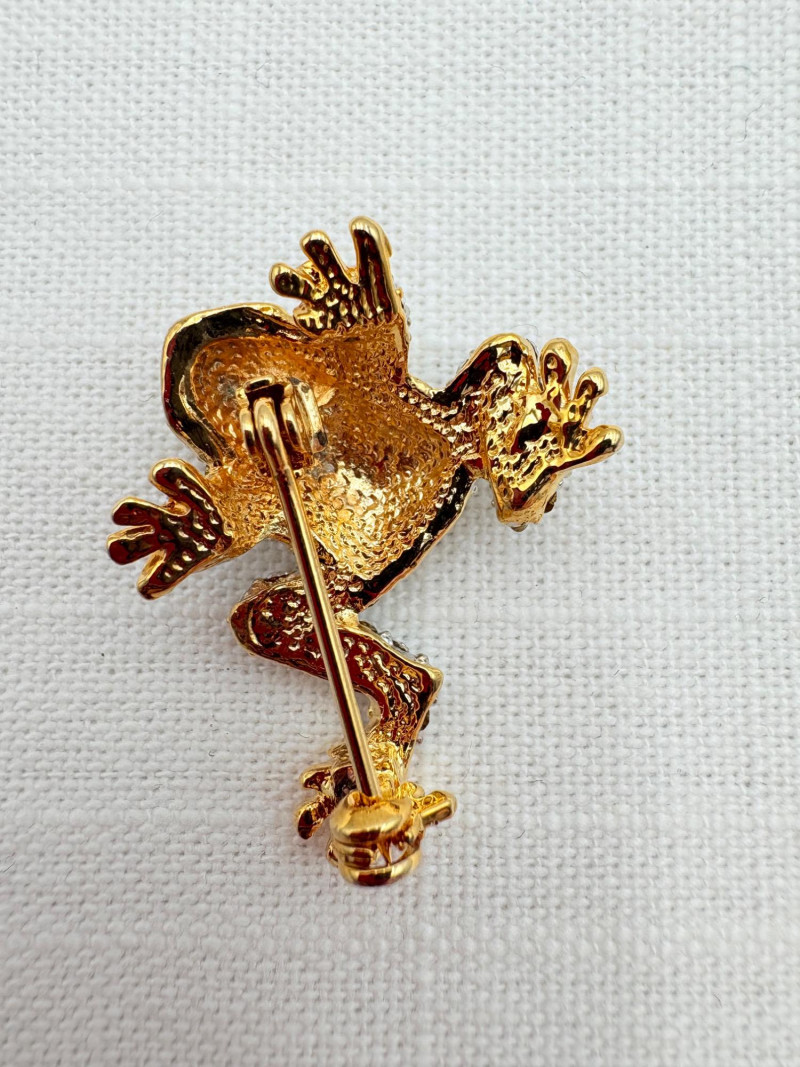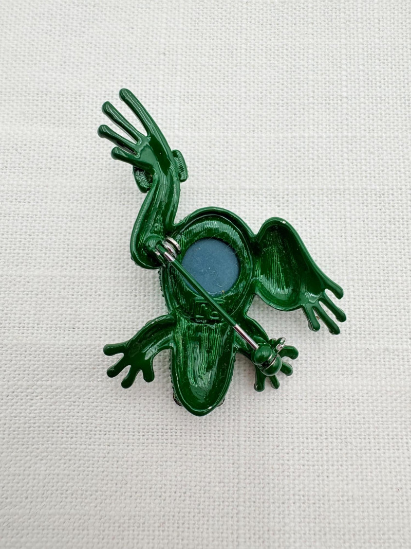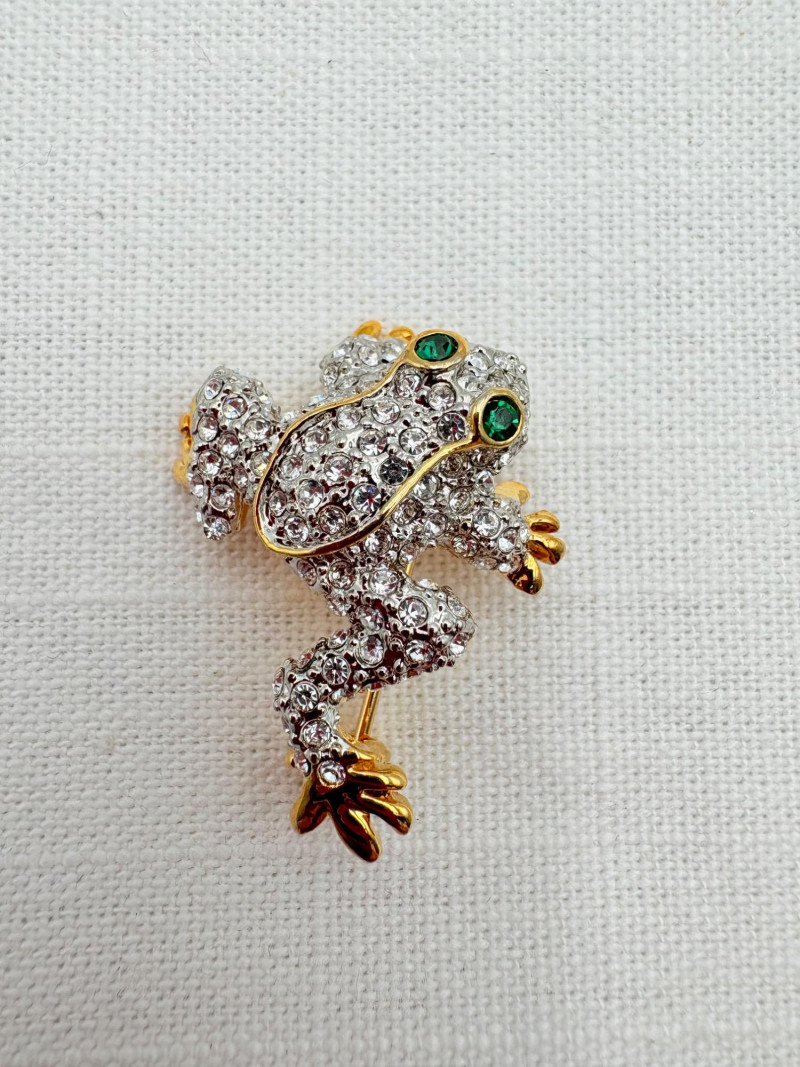 Large army of 13 frog pins accompanied by 3 lovely frog trinket boxes that are equally sparkly. Good quality costume jewelry with a number of vintage pieces. Please see photos for details.