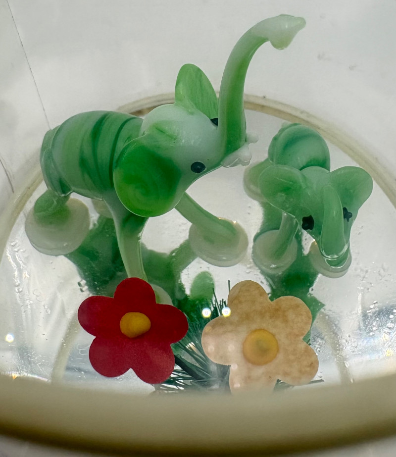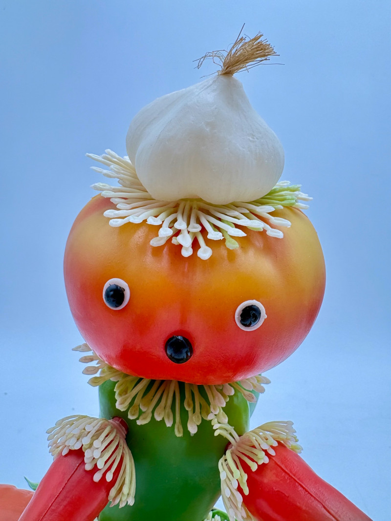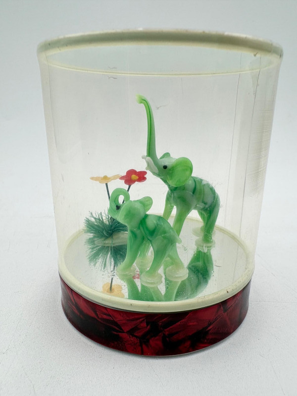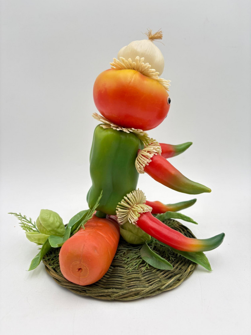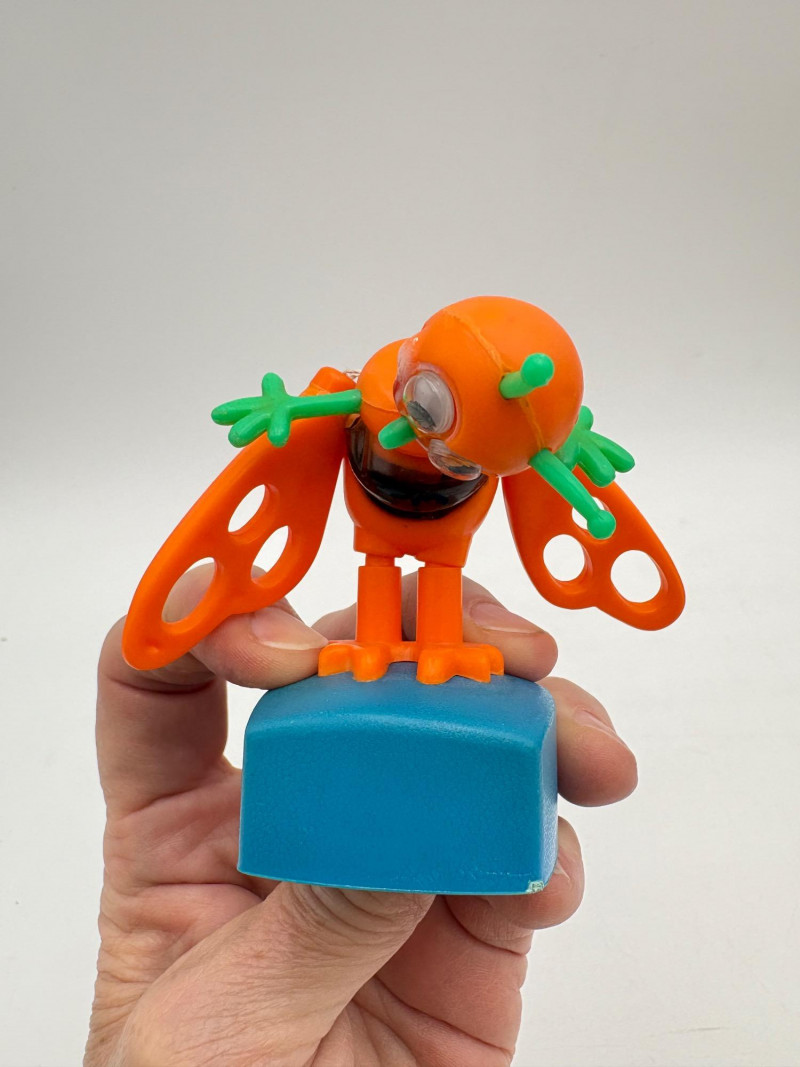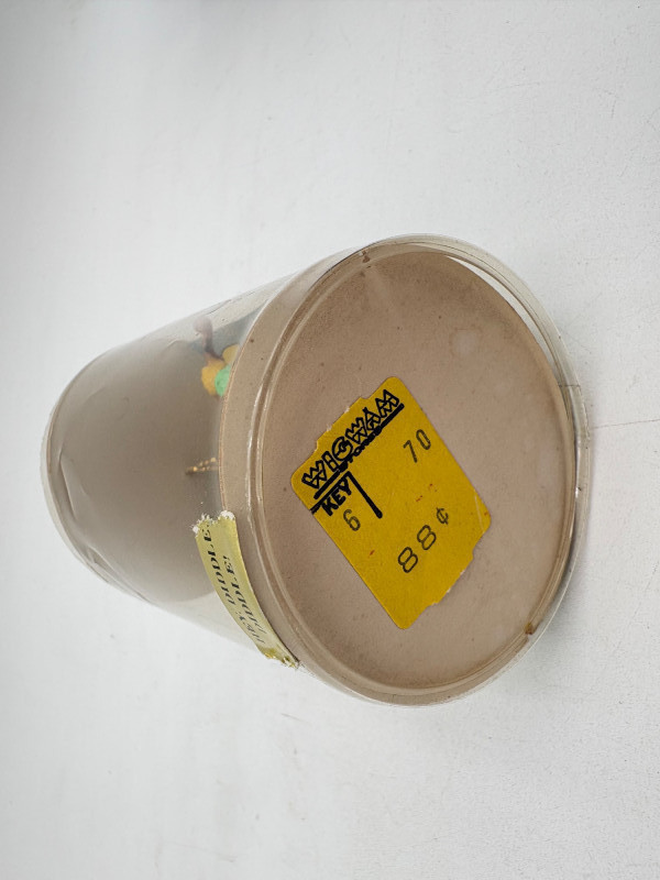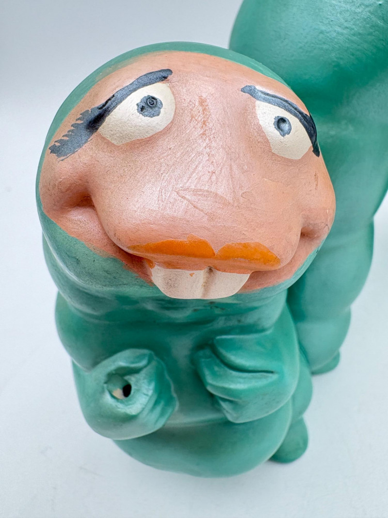 Eclectic group of vintage oddball items - not sure what purpose a couple even have, but we love the offbeat vibe! - Buck-toothed inchworm and his miniature friend. We think he once held a flag or toothpick sign of some kind - use your imagination to create your own if you like. - Strange plastic vegetable "Tomato Lady" figure from the 1960s (reminds us of a modern-day Arcimboldo painting), - 1960s mini-hippie doll (very tiny and we had to laugh at the meagre mustache attempt!) - Incredibly tacky Kreiss & Co. ceramic female figure from the 1960s "Psycho Ceramic" line in her undies. - Miniature fireman in a onesie. - Little elephants in a mirrored plastic tube. - Collapsing insect thumb puppet - classic from childhood! - Hey Diddle Diddle creepy fiddling cat. - Small red "viewer" of a little white boy in full Alaska Native parka & mukluks (couldn't capture a photo inside the viewer - we are guessing this is from the 1960s) - English mini-doll with a bottle of fragrance called "Devon Violets". Appears to be new & unopened (fragrance tag is loose in tube). See last photo with quarter in lower right for size comparison.