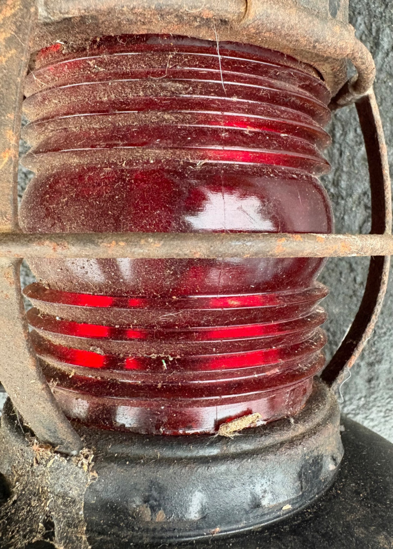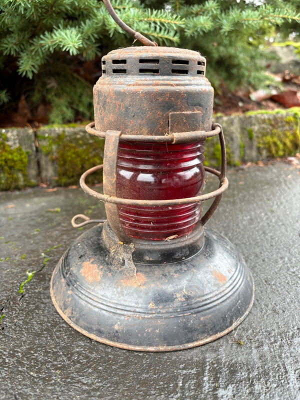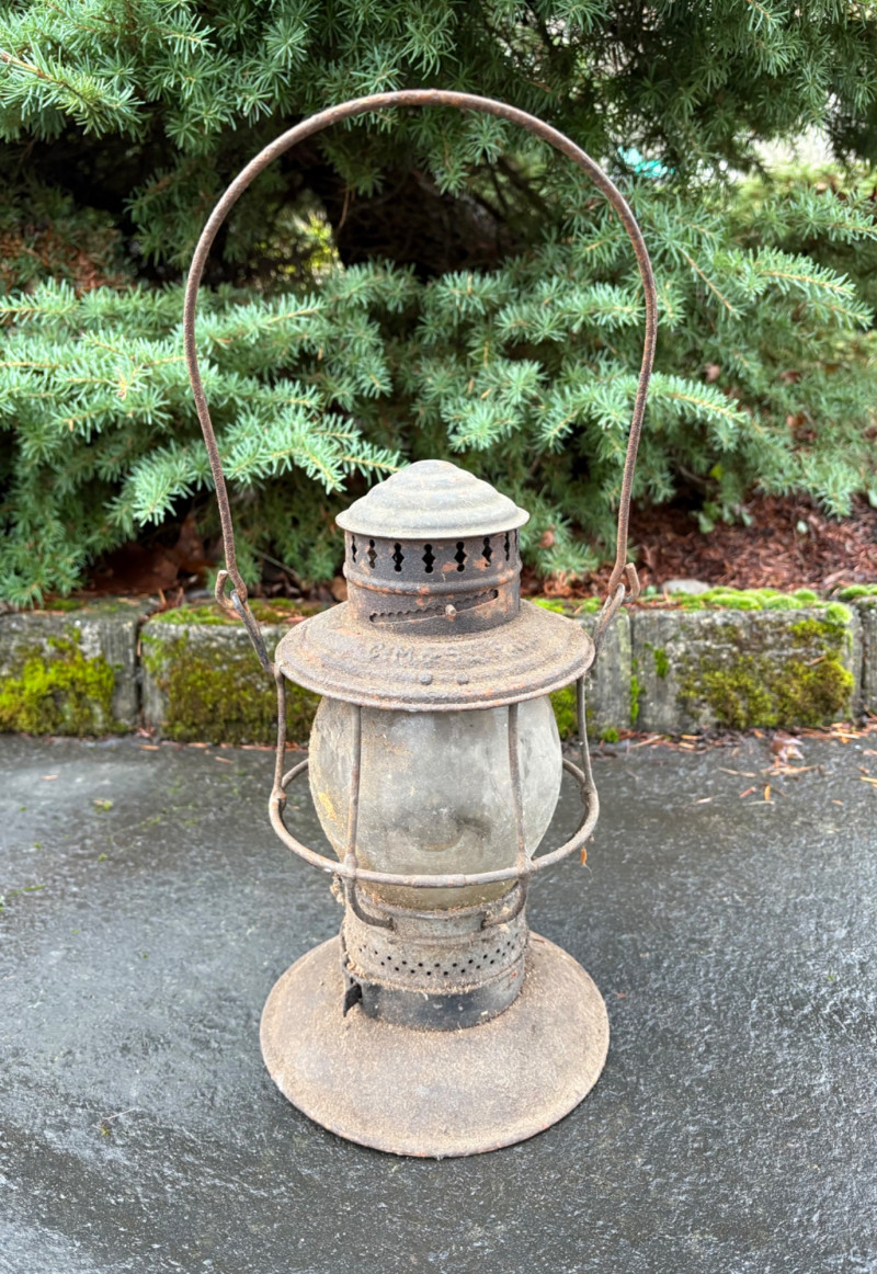 Two antique lanterns - as noted in Lot #76, we have folks who buy for stage sets, so for items like these we sell them as is showing their obvious age. The smaller lantern is an Embury #40 Traffic Gard kerosene lantern with a red globe. It was used for highway control & construction and we believe this one is pre-1953 since Embury was acquired that year by R.E. Dietz and this lantern still bears the Embury stamp (we are guessing 1920s). The red light made it visible from a distance and it can be hung or rested on the ground. Measures 7.5" H to the top of the body and 15" including the handle. We do not know if it is operative. The larger lantern is a Handlin C.M. & St. P RY (Chicago, Michigan, and St. Paul Railway) globe railroad switchman's lantern. It probably dates from the 1920s or 1930s. Measures approx. 11" to the top of the body and 16" including the handle. We do not know if it is operative. Antique 1920s Embury No.40 Traffic Guard Lantern Red Globe Warsaw NY USA - Etsy CM&StP RY Kerosene Globe Railroad Lantern - Matthew Bullock Auctioneers