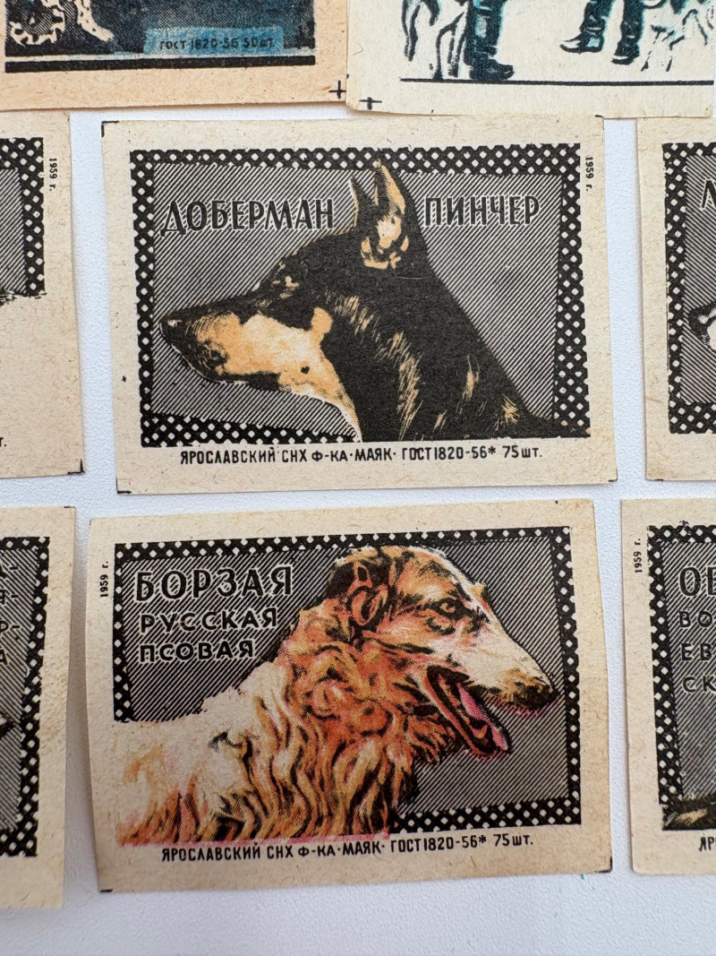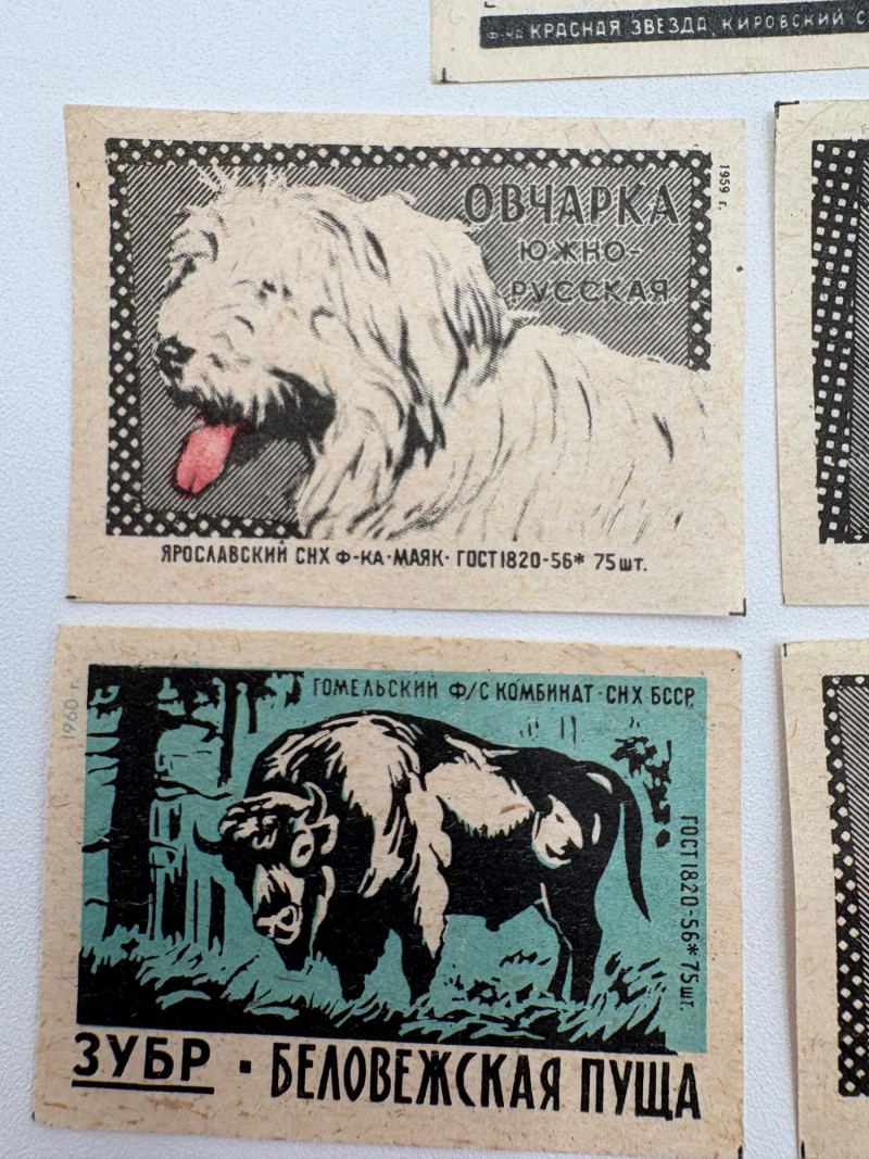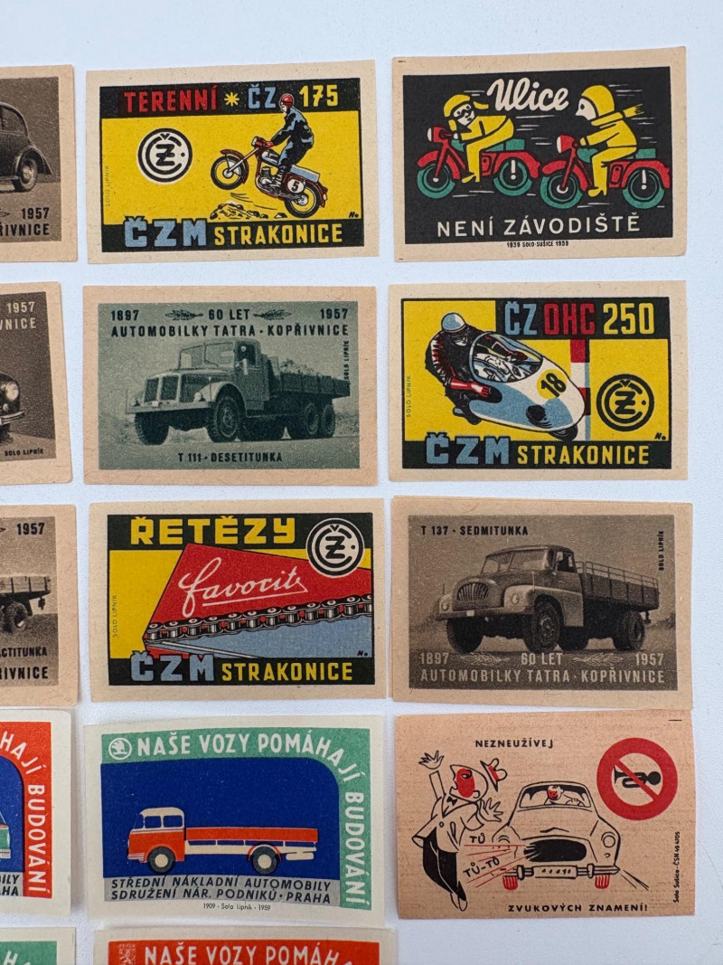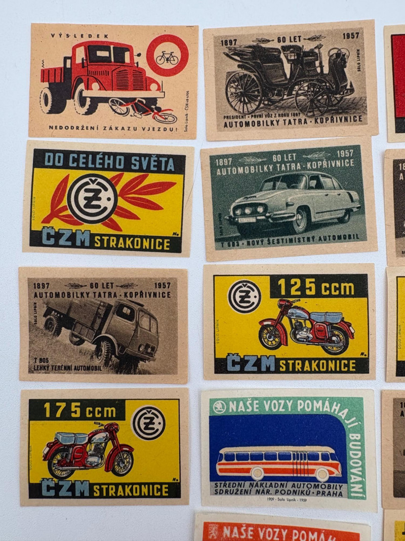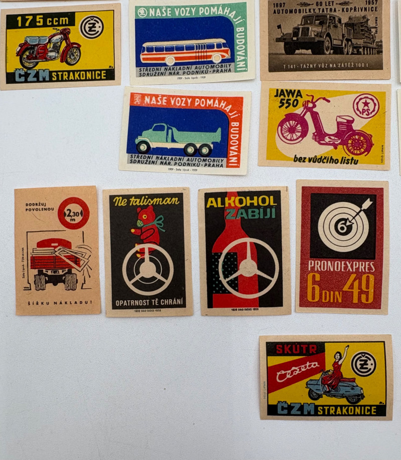 Authentic vintage matchbox labels from the 1950s or