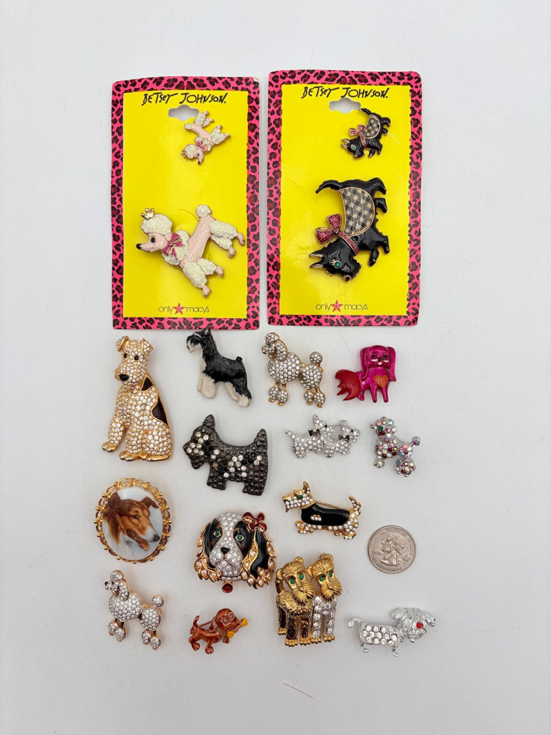 Nice group of canine pins - 18 in all. Good quality costume jewelry with a number of vintage pieces. Please see photos for details.