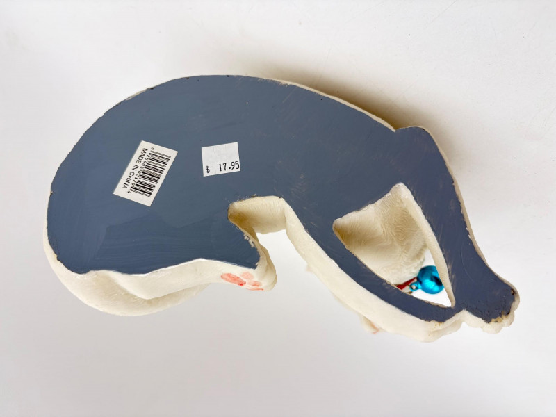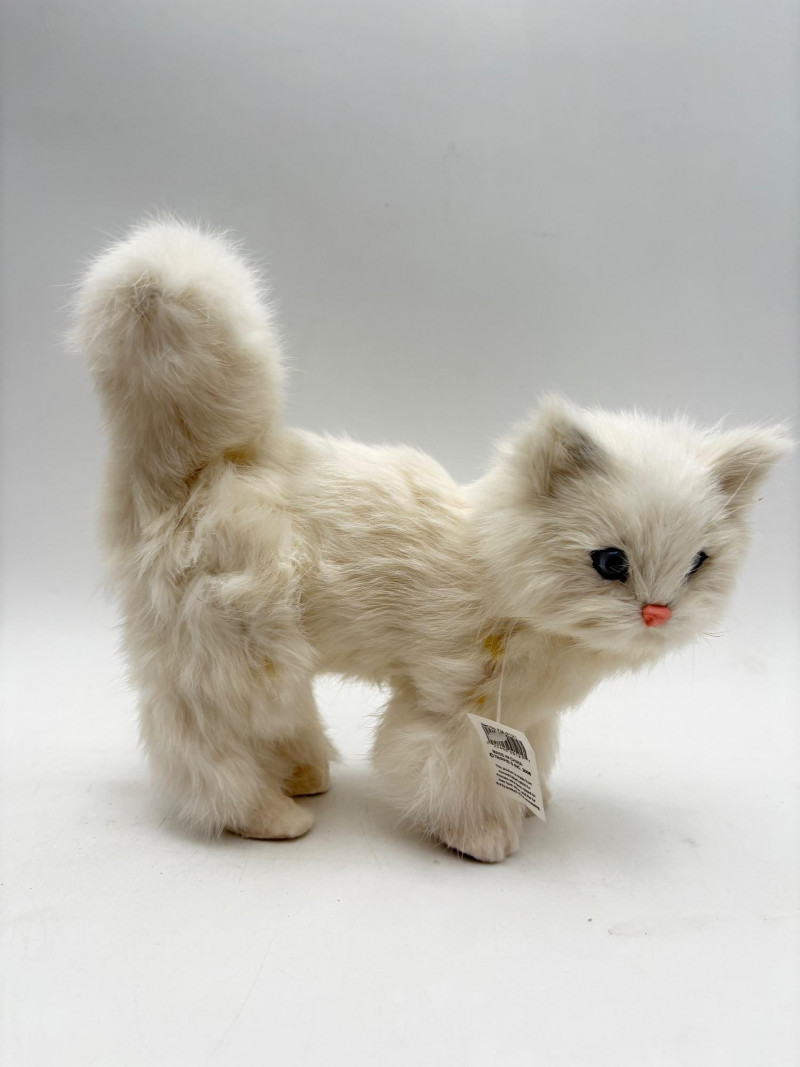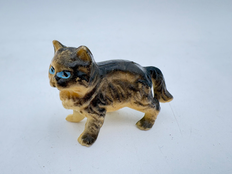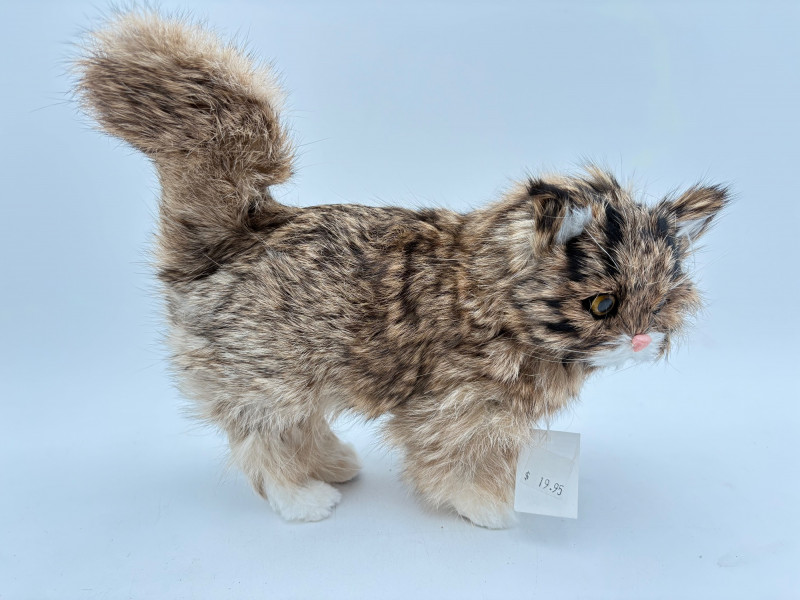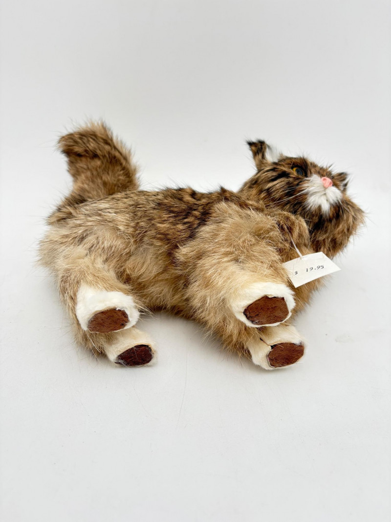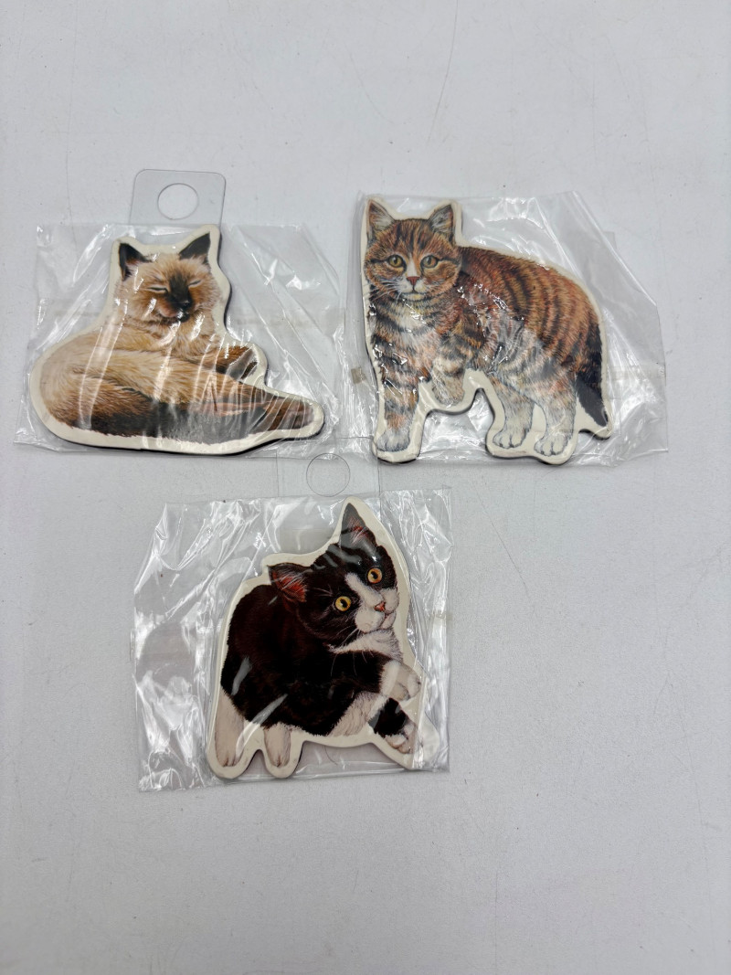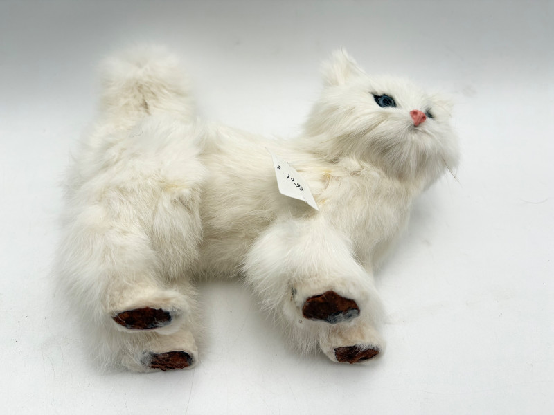 Cat-themed items ranging from furry figures to sheets to a vintage Meow clock (tested and works fine with AA batteries). Look closely at the photos for details and note the last photo with the quarter in the lower right for size comparison. Also note that the purse has some discoloration on the reverse - again, take a look at the photos.