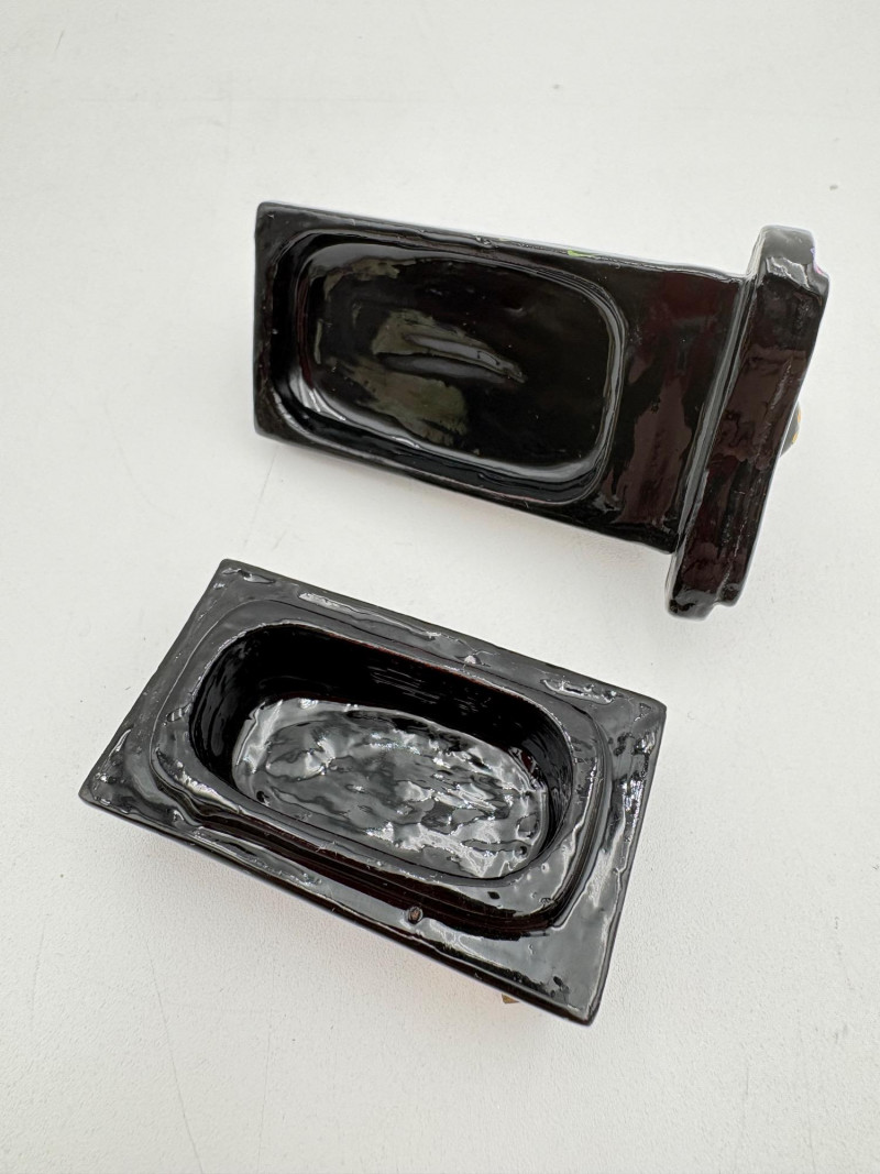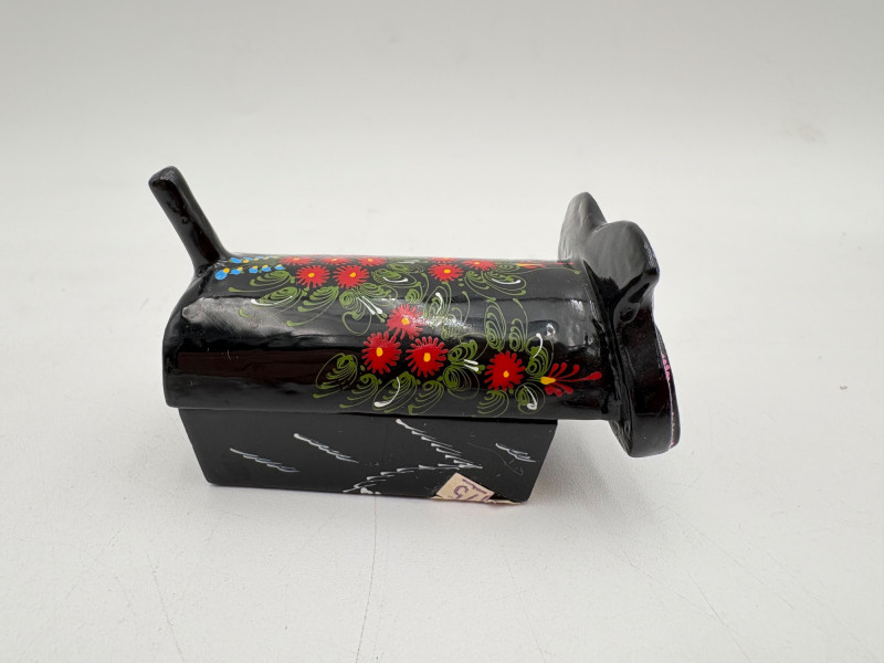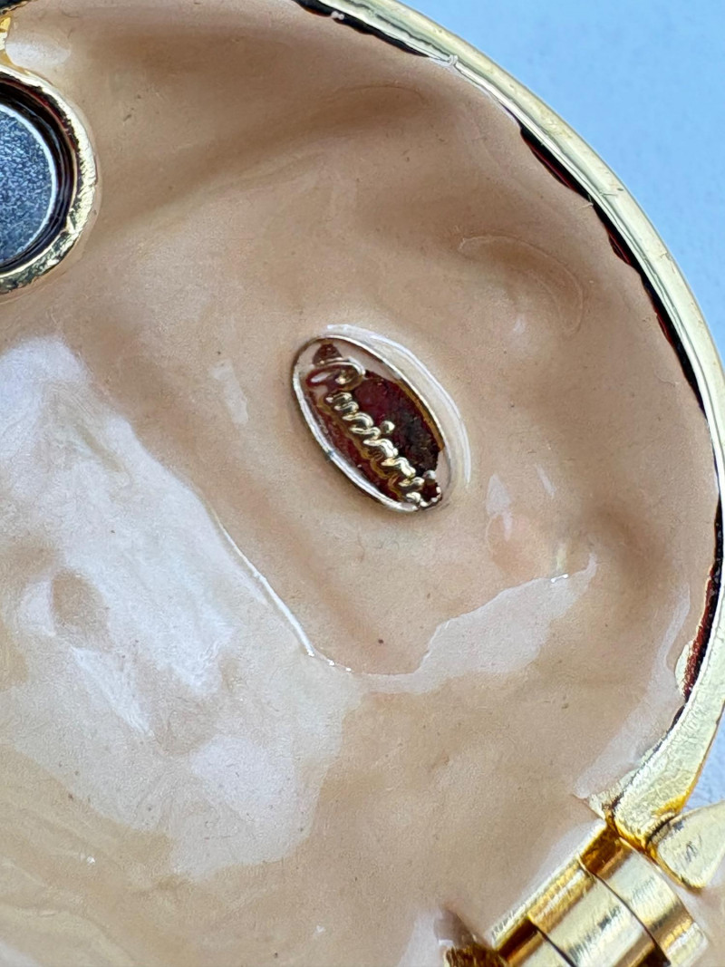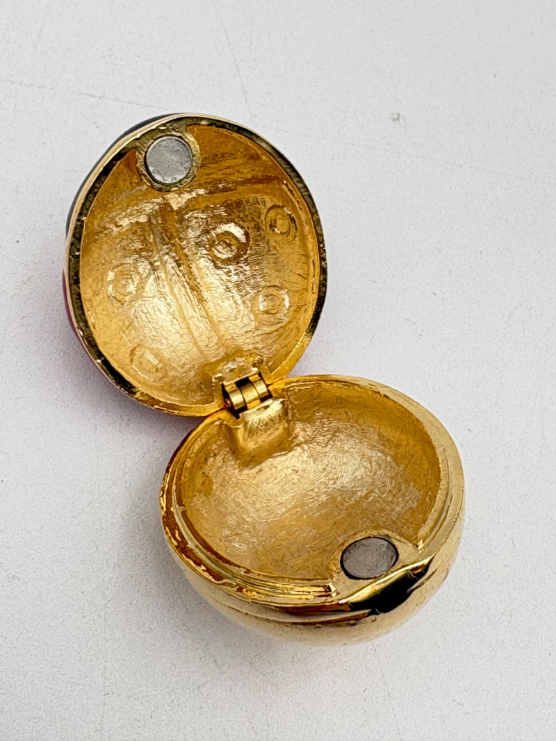 Nice group of trinket boxes in various sizes, materials, and designs. Violin box is a music box, too. Range in size from 9.5" H (violin) to 1.5" L (Ladybugs). See photos from details on maker marks.