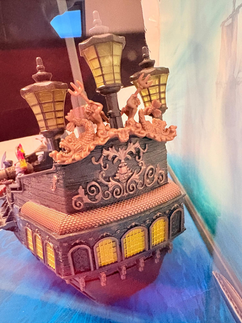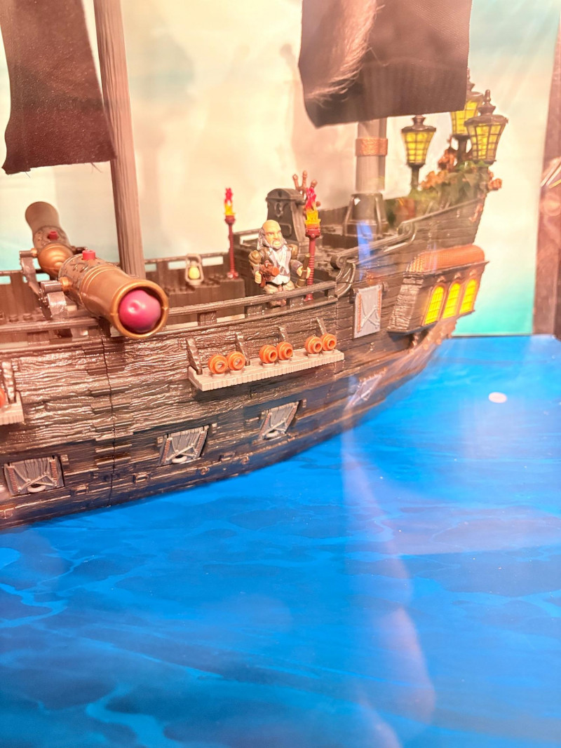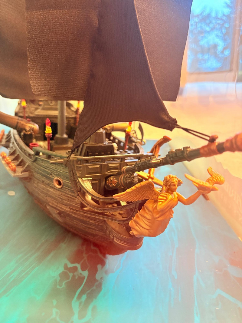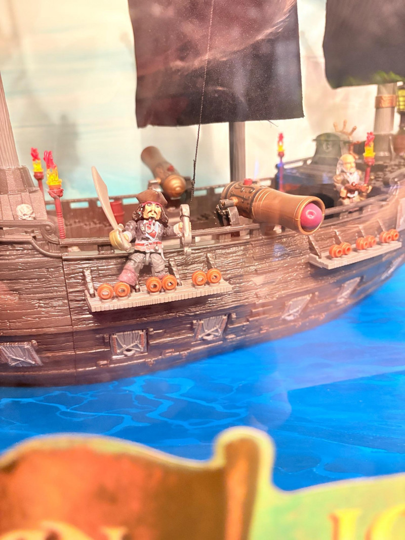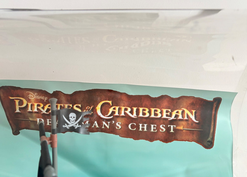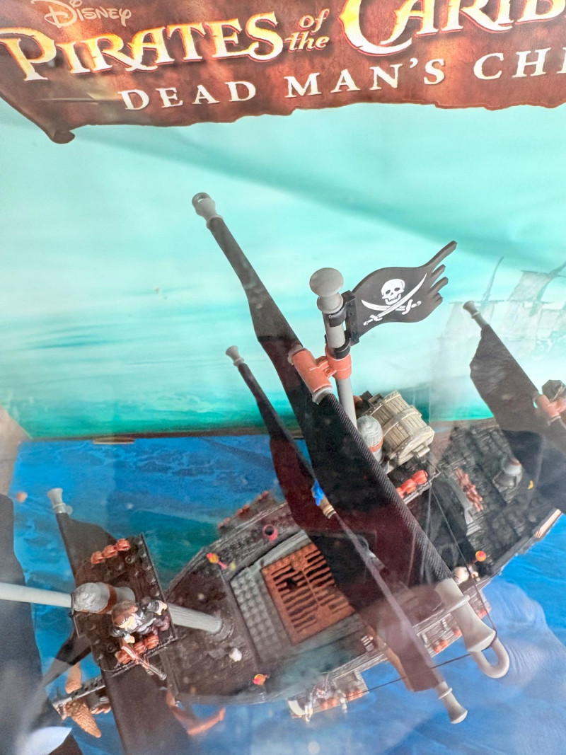 OK, first an apology - we cannot find a similarly packaged Pirates of the Caribbean on-line to refer you to since we know these photos are awful. This Mega Bloks model is packaged in a curved plastic dome that defies being photographed without distortion or reflection. We didn't open it since it appears to be mostly still sealed in the original packaging. The only identifying factors are on the label as Pirates of the Caribbean & #1017 Black Pearl. The ship is anchored to a thick removeable backerboard on the bottom (you can turn it upside down and it stays secure). There are a lot of these models out there, but none in this type of packaging that we could find. The ship is made of lots of removeable small parts (Mega Bloks, obviously), has numerous figures including Jack Sparrow, and measures approx. 24" H x 24" W with the packaging a fair amount larger. Again, while it all looks to be complete, we can't seem to get good photos!