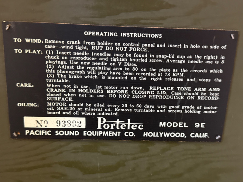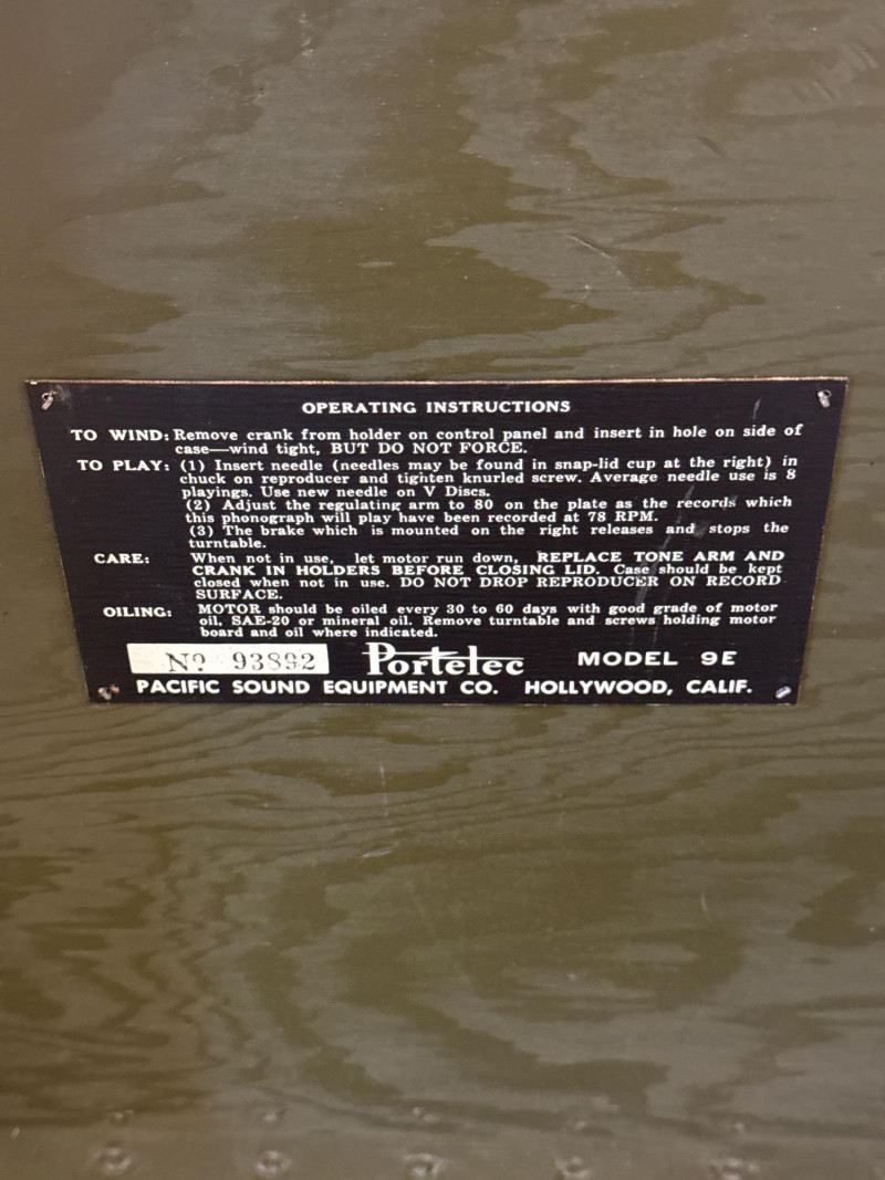 Lot # 1 - Portelec 9E WW2 Era US Army Portable Phonograph "V-Disc" #93892