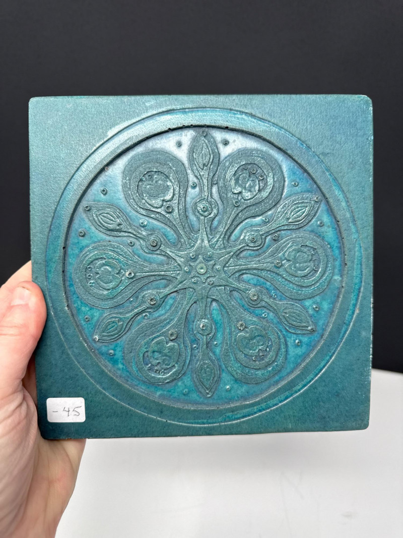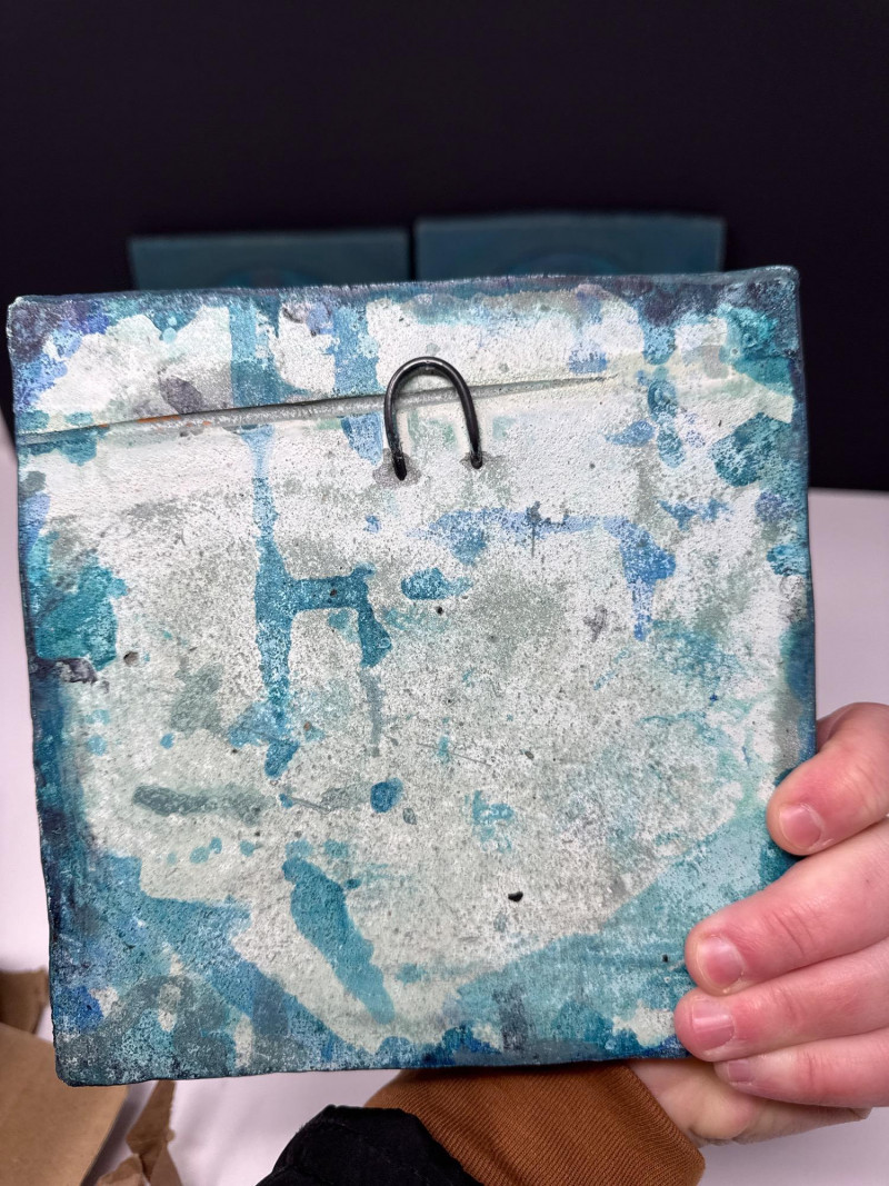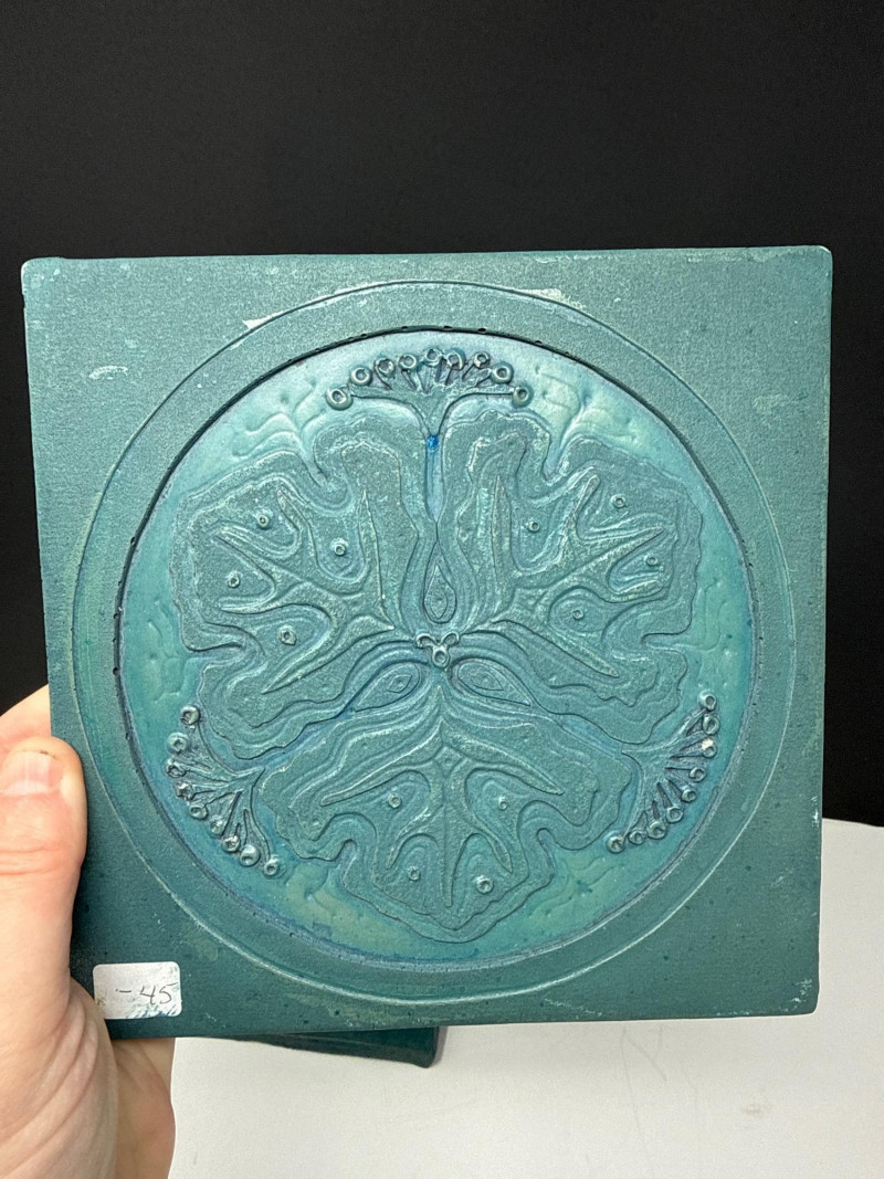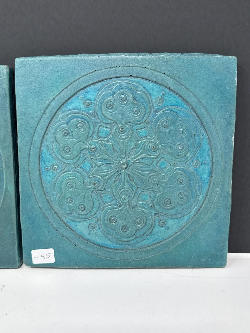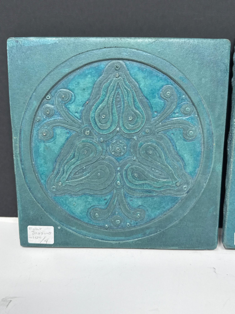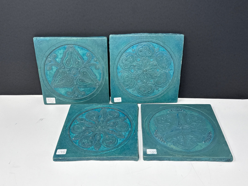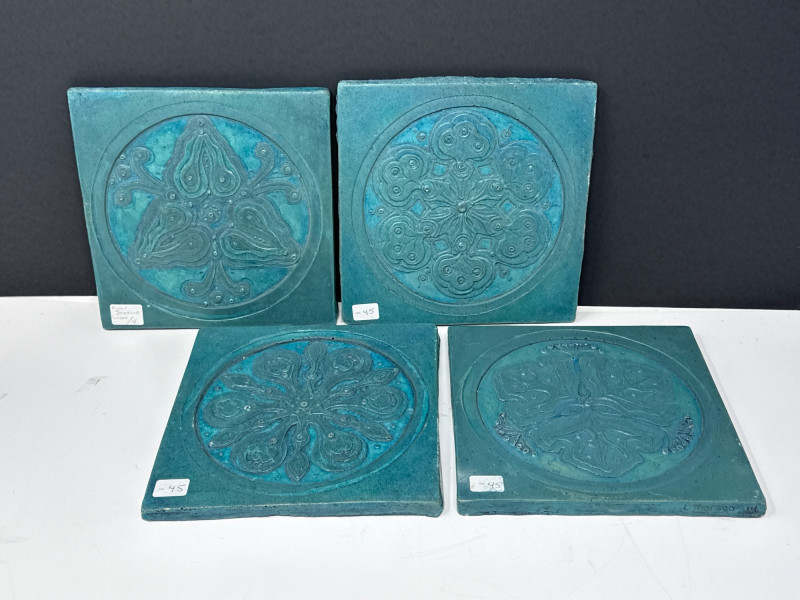 Lot # 107 - Glazed Teal Clay Tile Art- Set 4