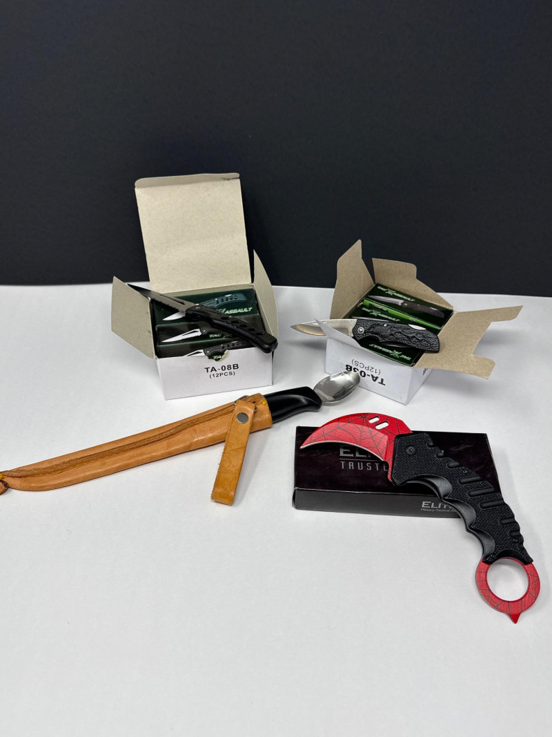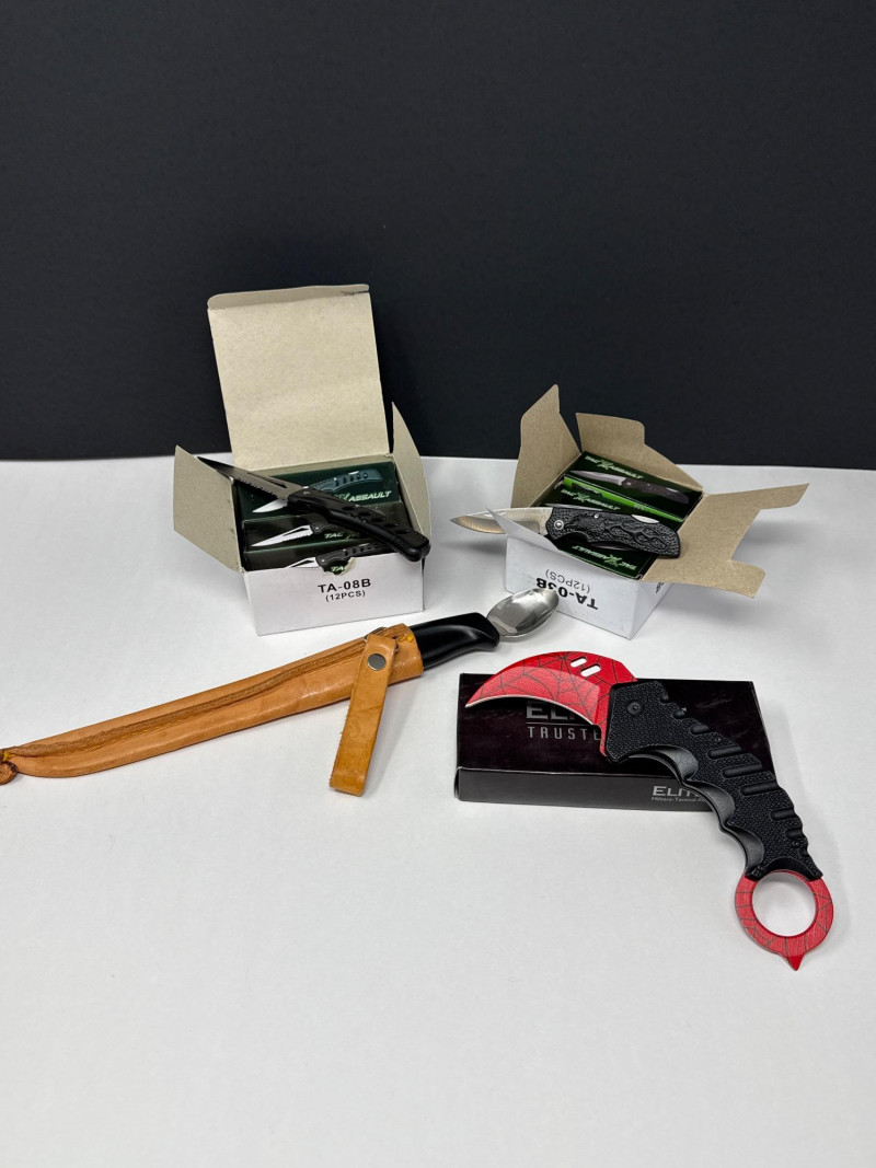 Knives- Karambit Spider Web, Rapala & 2 Boxes of Utility