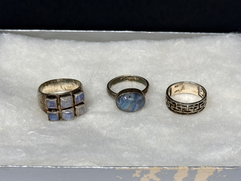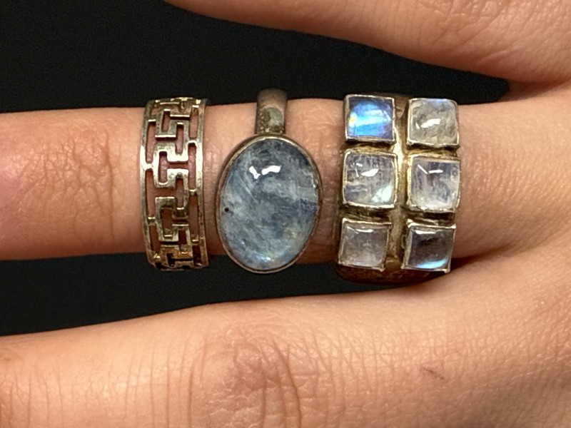 Lot # 114 - Sterling Rings- Moonstone, Labradorite & more- 19g