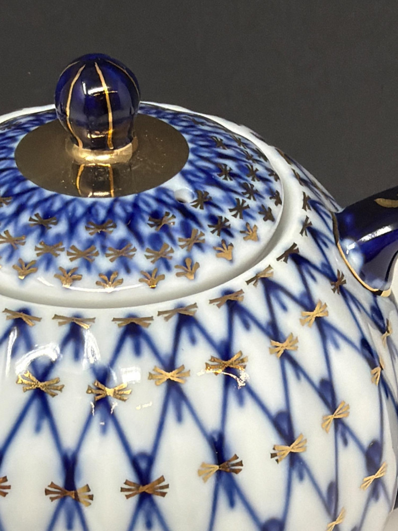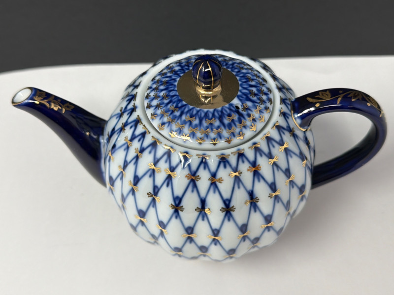 Lot # 118 - Lomonosov Cobalt Net Teapot *NEW!- Made in Russia $220+