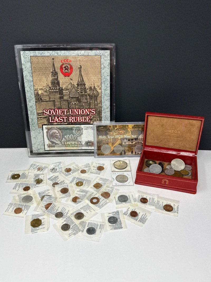 Lot # 130 - Assorted Vintage Foreign Coin- 1964 Tokyo 1000 Yen, 1961 Peso & more