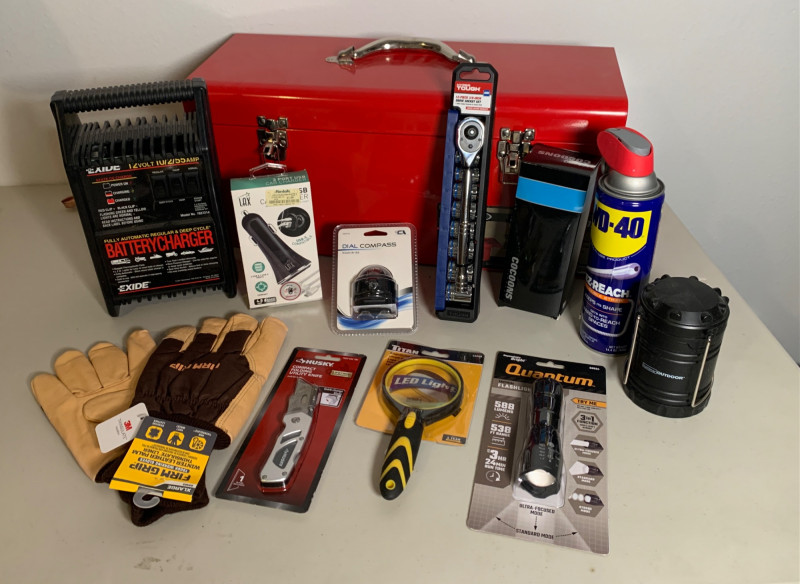 This versatile lot features a curated selection of tools and accessories suitable for automotive maintenance, electrical work, and general repairs. Items are presented in clean, functional condition unless otherwise noted. Ideal for hobbyists, mechanics, or anyone seeking reliable gear for hands-on tasks. Included in This Lot: EXIDE 12V Battery Charger – Dual mode (10AMP/2AMP) LUX Cigarette Lighter Socket Adapter COBRA CB Radio Microphone VODON 24-Piece Precision Screwdriver Set HUSKY Folding Utility Knife TITAN LED Light with Magnifying Lens Quantum Ultra-Slim Flashlight – 588 lumens Black Cylindrical Container – Possibly a lantern or speaker; untested FIRMGUARD Leather Work Gloves – Light wear WD-40 Multi-Use Canister BREACH Cleaning Foam Spray Packaged Dial Compass