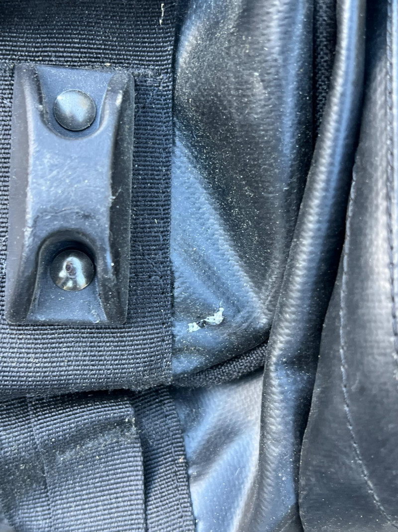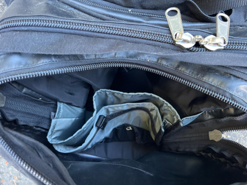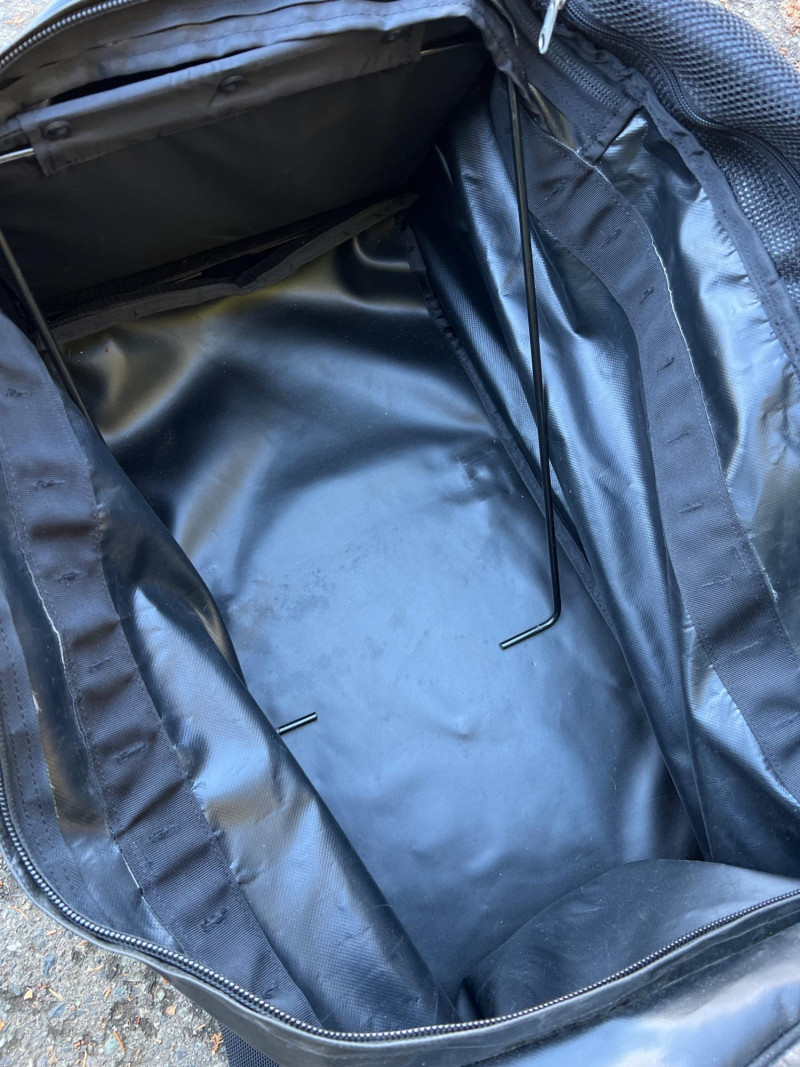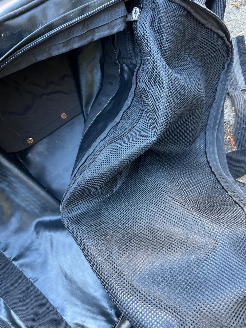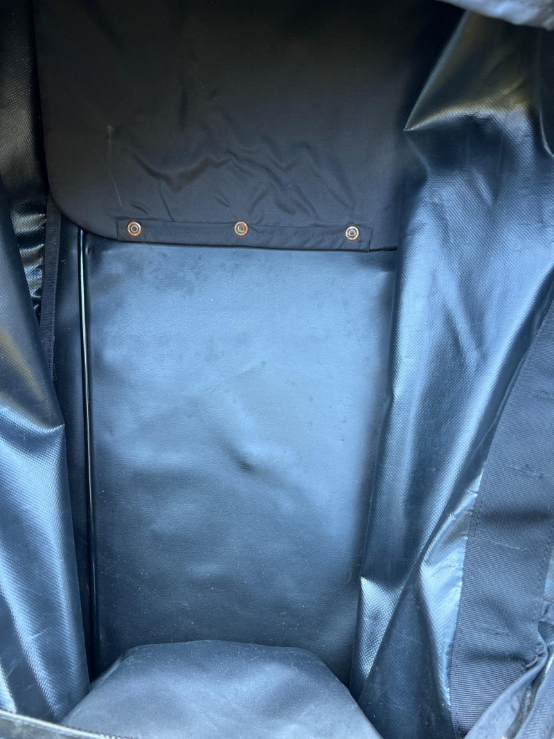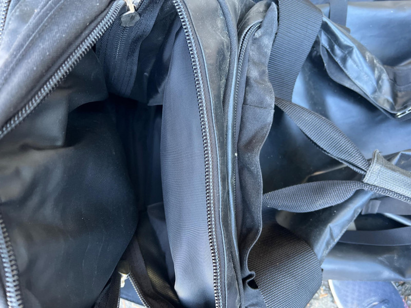Spacious North Face rolling duffel bag, built for durability and convenience in travel or outdoor use. Dimensions: 35" L × 14" W × 16" H. Exterior covering shows a few minor surface tears, none affecting the interior. Design: Rugged construction with reinforced seams and heavy‑duty zippers. Features: Smooth‑rolling wheels for easy transport. Telescoping handle and side carry handles. Large main compartment with internal organization. Utility: Perfect for camping trips, extended travel, or contractor gear transport.