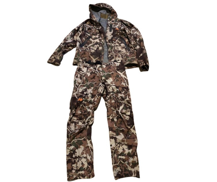 A premium First Lite hunting jacket and bib set in the Fusion camouflage pattern, size 2X. Built for serious hunters, this set features PrimaLift Gold synthetic insulation for warmth without bulk, ensuring comfort in cold conditions. The bibs include full‑length zippers, allowing easy on/off over boots and layering flexibility in the field. Designed for durability, concealment, and performance, this set delivers the protection and mobility needed for extended hunts in rugged terrain.