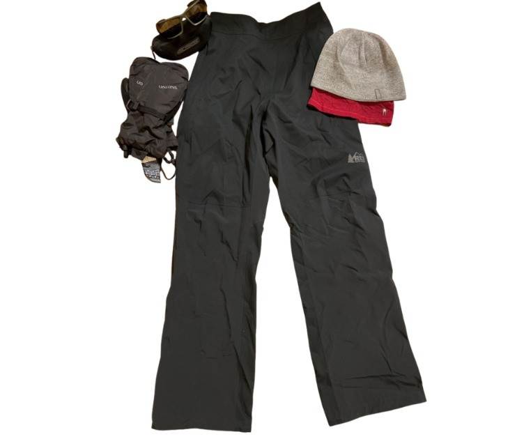 A versatile outdoor gear bundle featuring premium apparel and accessories. Included is a pair of REI Peak 2.5L Rain/Snow Weatherproof Black Shell Pants (size Small, 32" inseam, Long), designed for lightweight protection in wet and cold conditions. Complementing the pants are Burton Gore‑Tex mittens, offering superior warmth and waterproof performance, and ESS CDI sunglasses, built for tactical durability and glare protection. Two cozy beanies round out the lot, making this a complete set for backcountry adventures, winter sports, or everyday outdoor wear.
