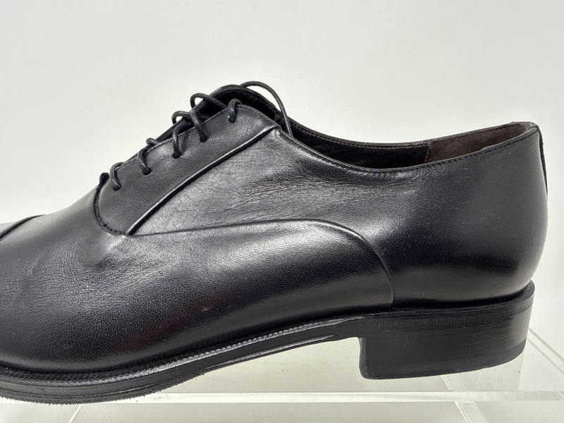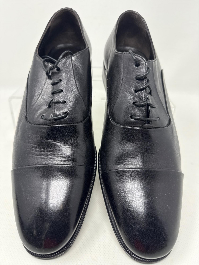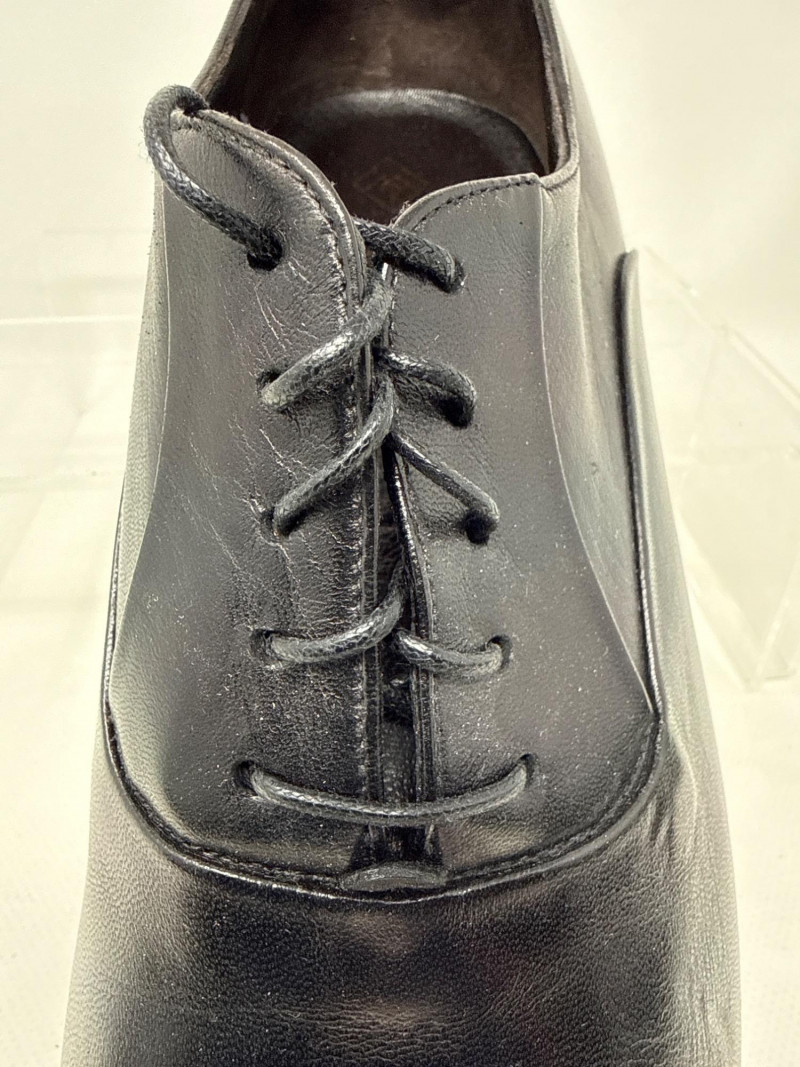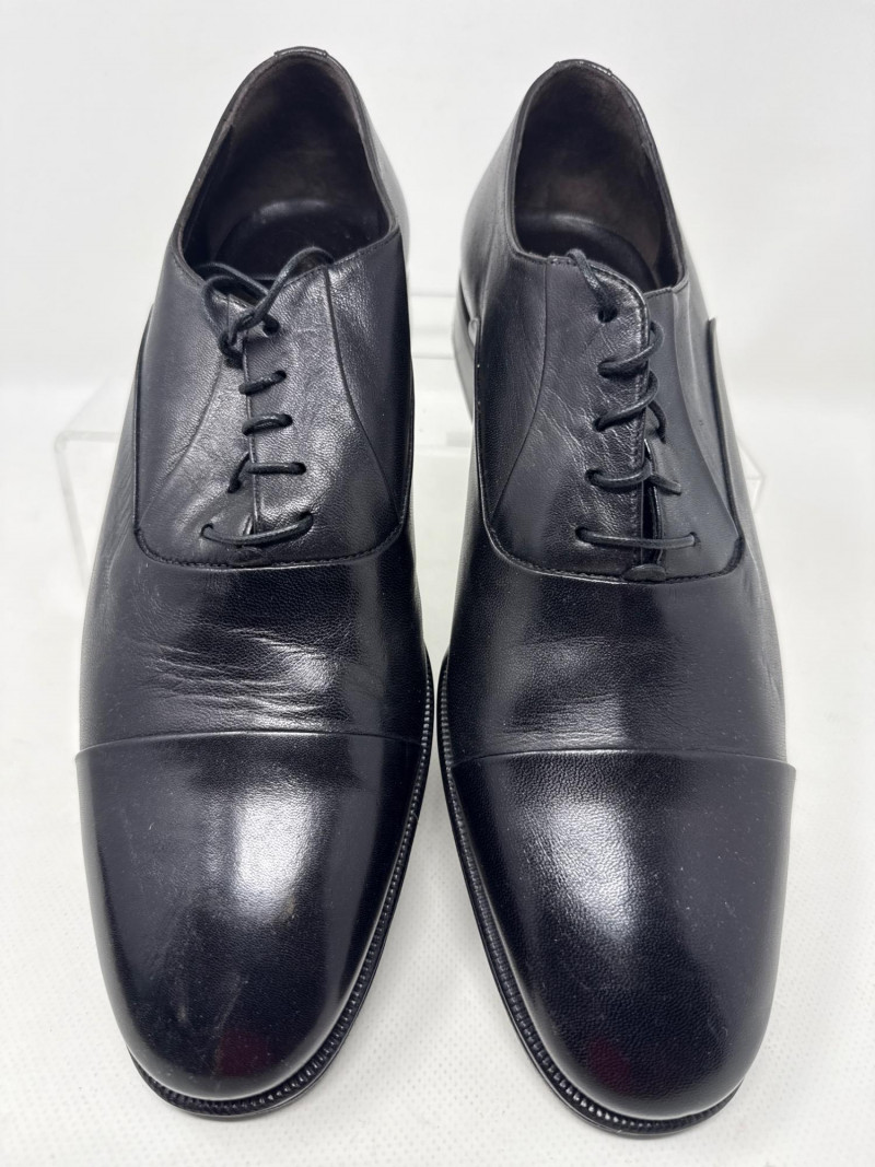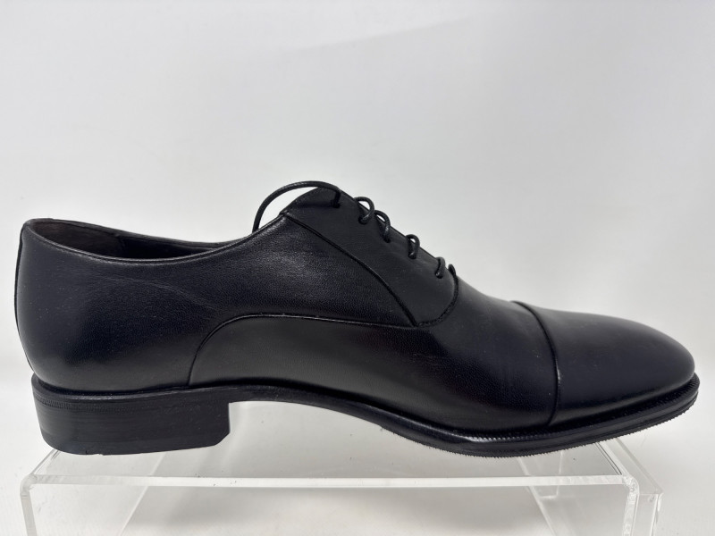 Details: Closed lacing and a cap-toe design; smooth, polished leather with a formal, elegant finish.