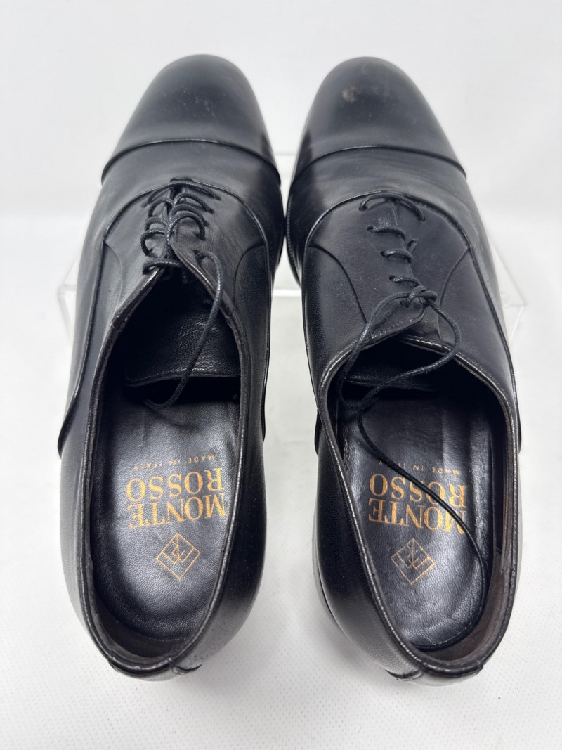 Monte Rosso Italian leather dress shoes. Type: A pair of black leather Oxford dress shoes, Size 10M.