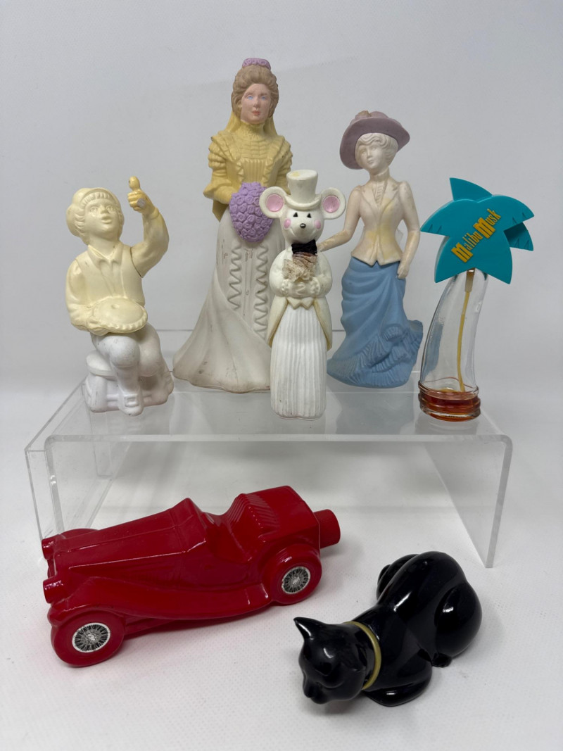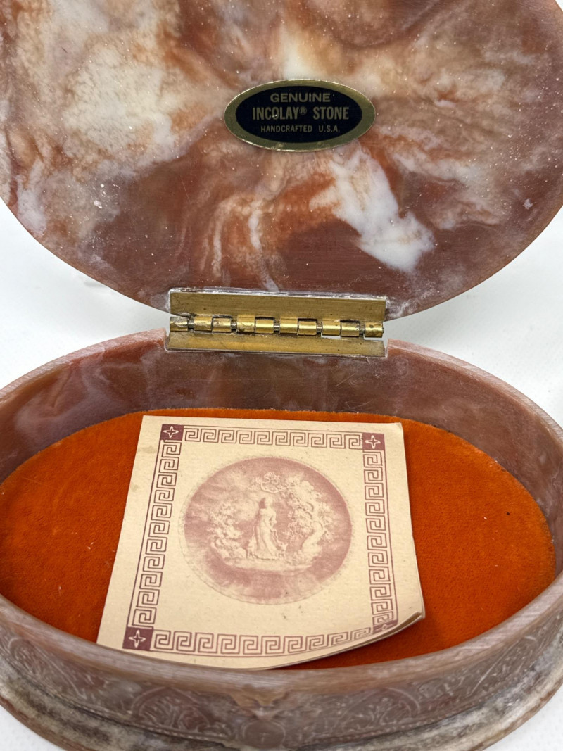 Lot # 59 - Ladies Vanity Decor, Incolay Box, Mouse Figures and Avon Bottles