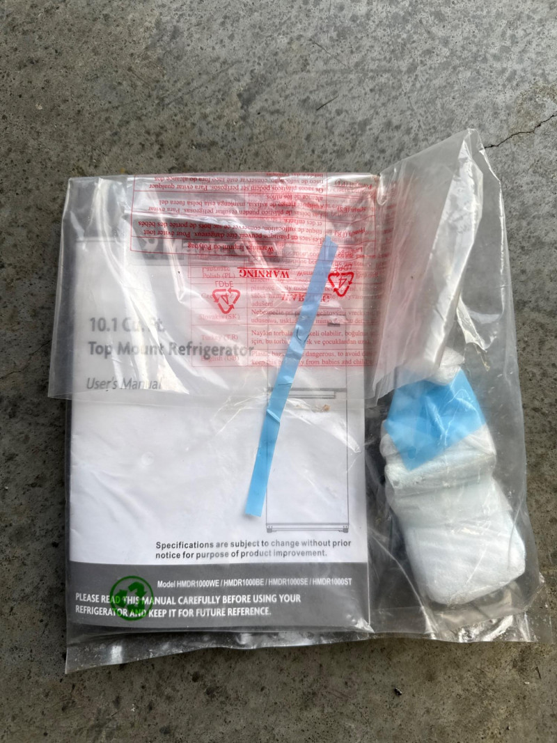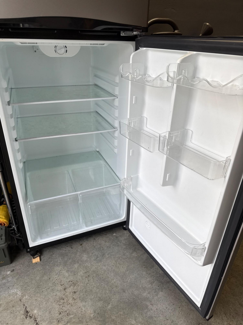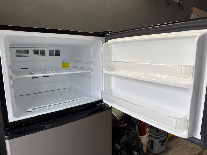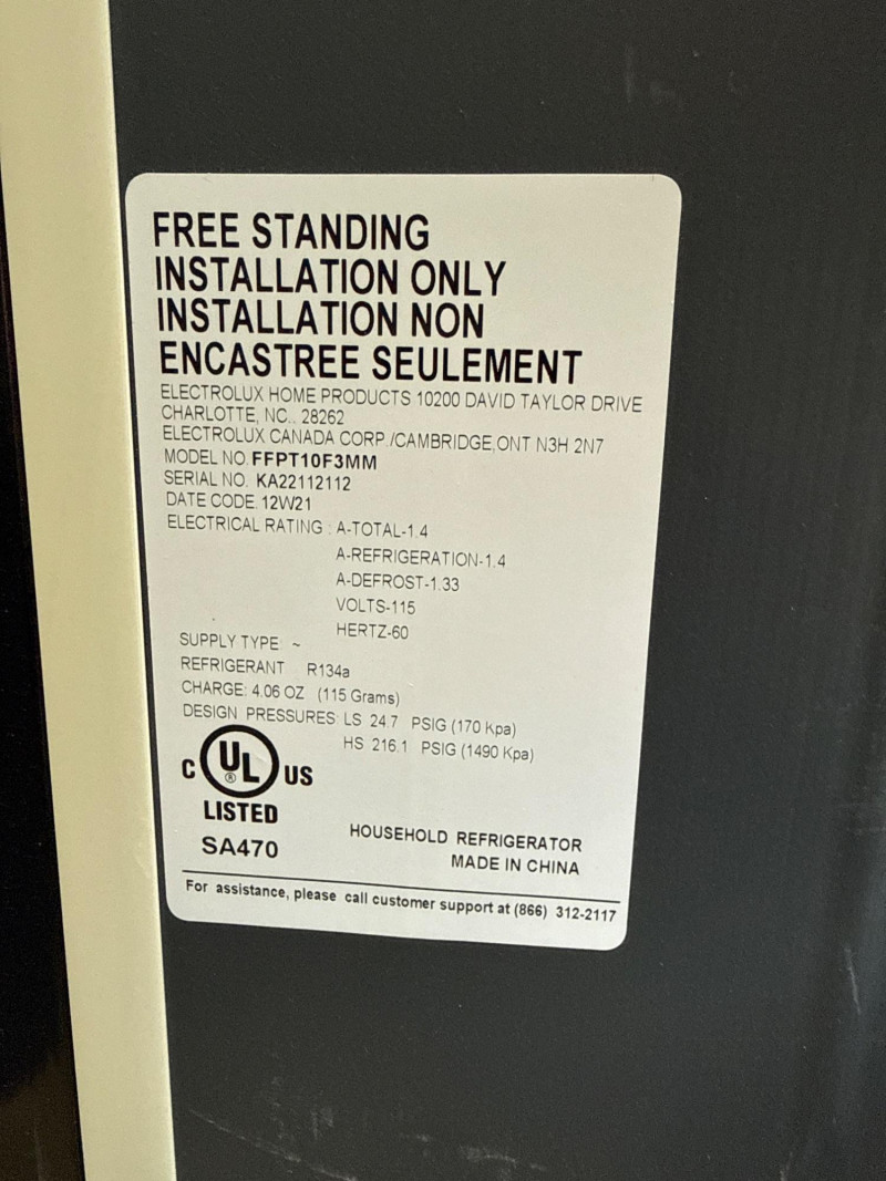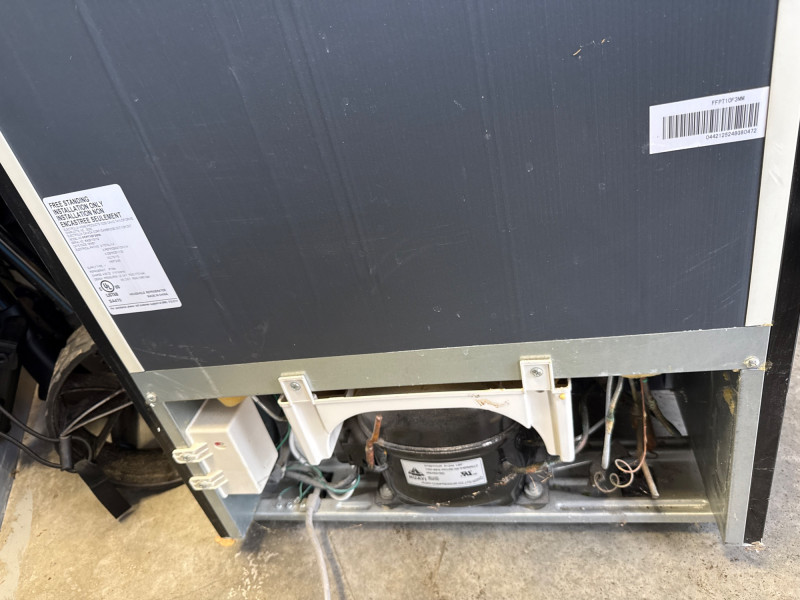 Model: FFPT10F3MM Used recently. Works great. Easy load location. Must bring support and tools to assist with loading. Glass shelves. Includes manual and extra components. Has minor wear with a couple shallow dings on exterior.