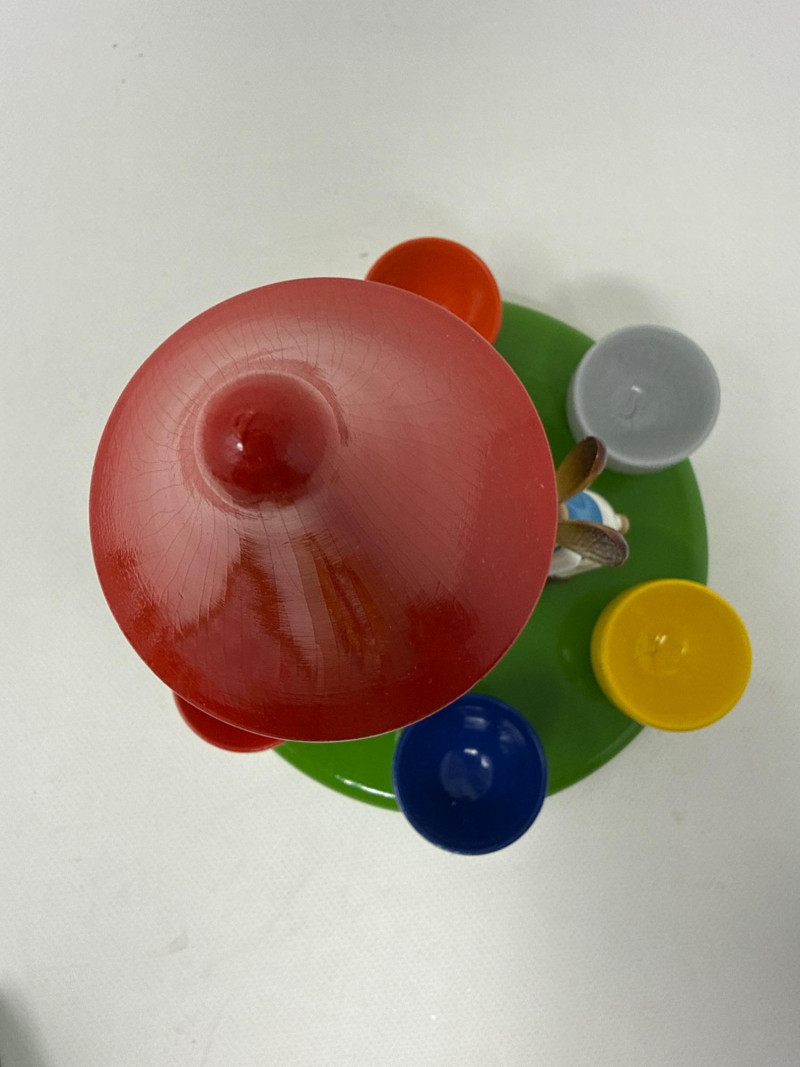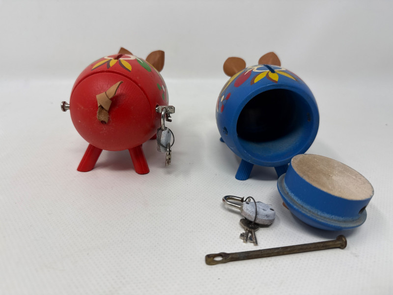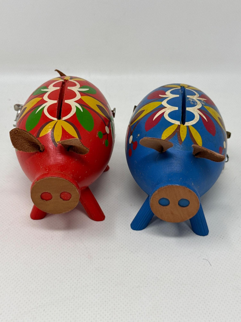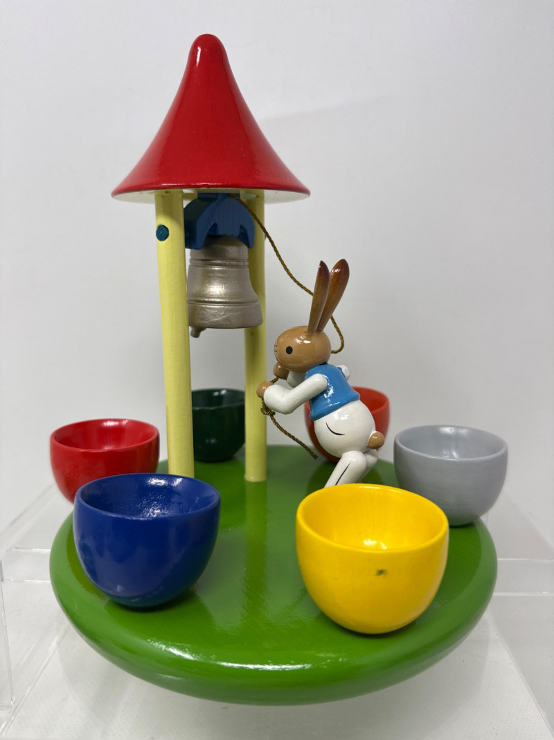 Charming vintage German wood ornaments, Egg holder Merry go round is 8 inches tall, 7 inches wide. NIB wood ornaments, birthday candle holders, large Lego stickers. Rabbits, birds, mushrooms, eggs and chickens. Wood clown with parallel bars. Wood piggy banks are hand painted and include metal locking system.