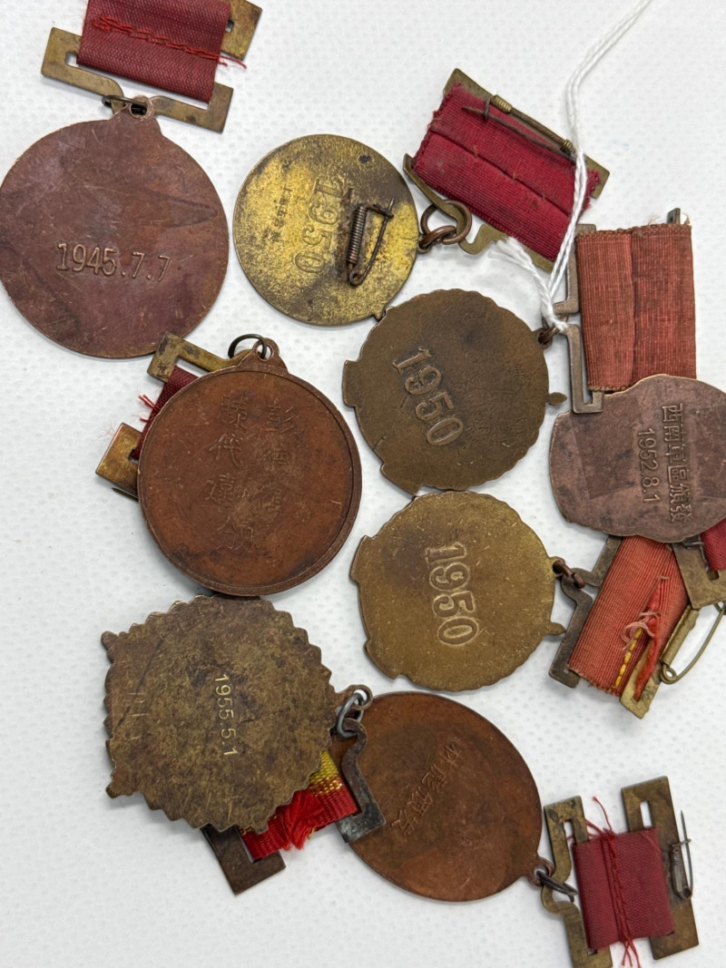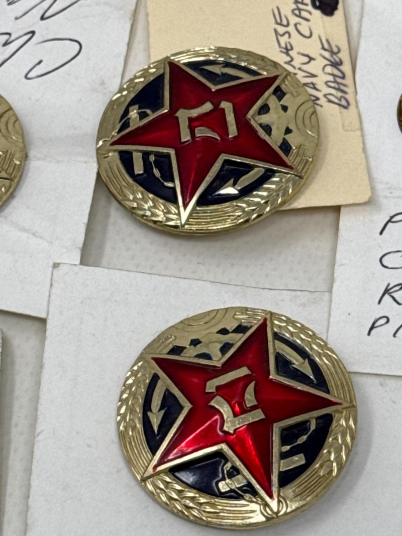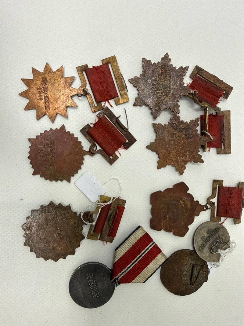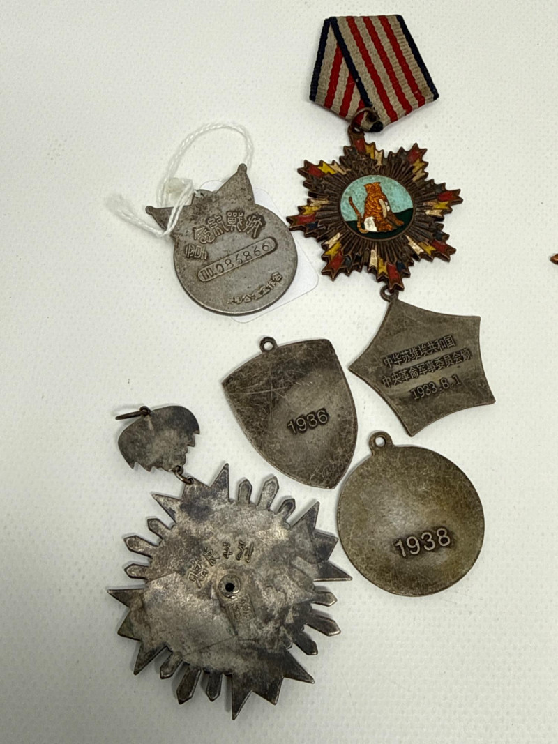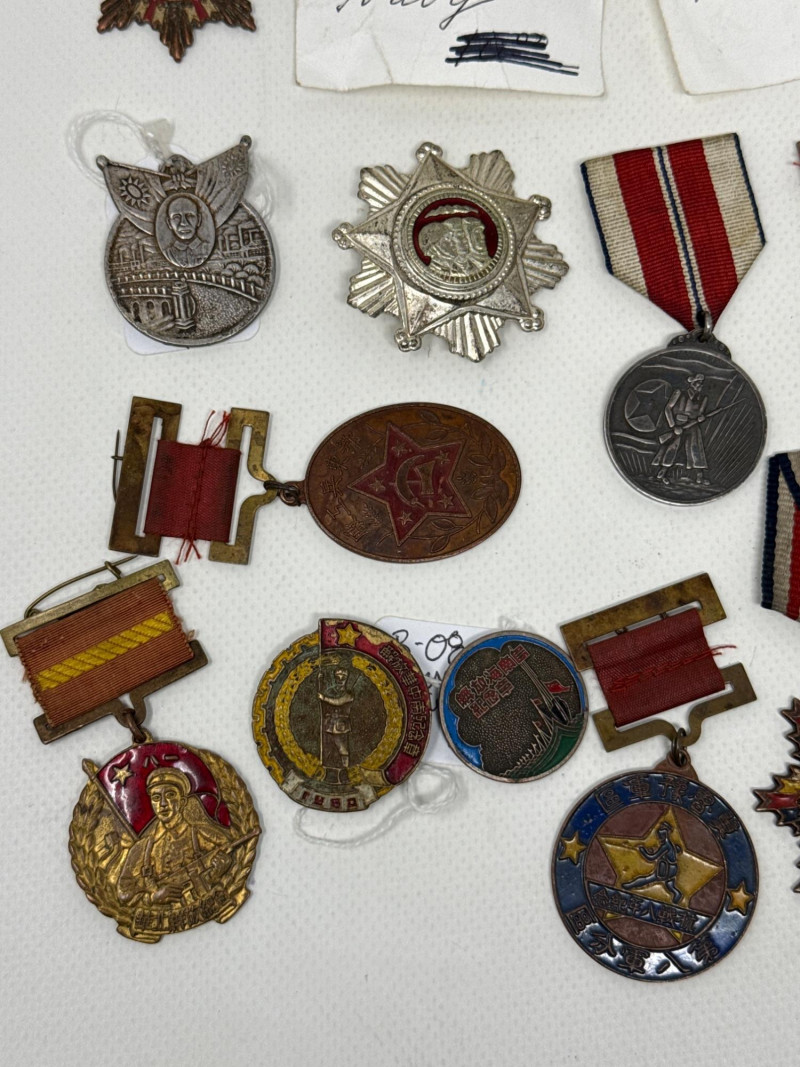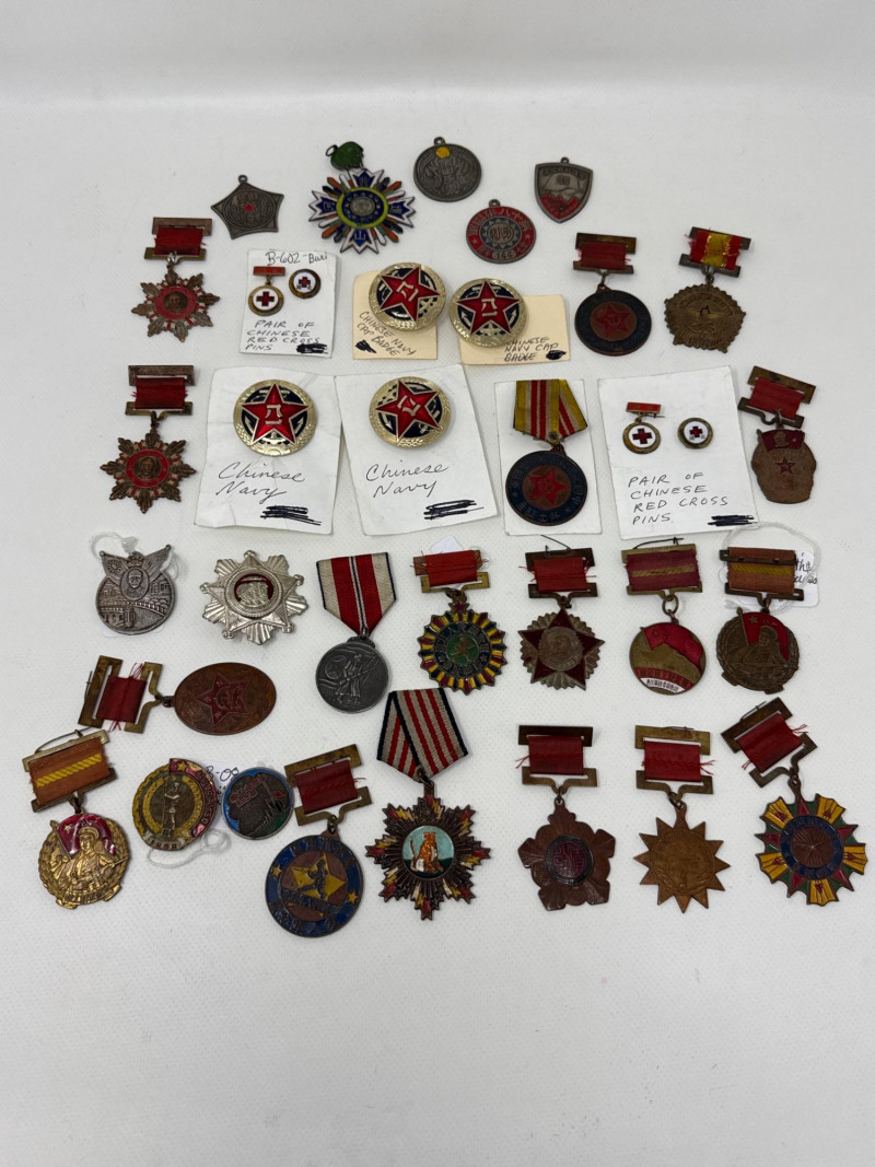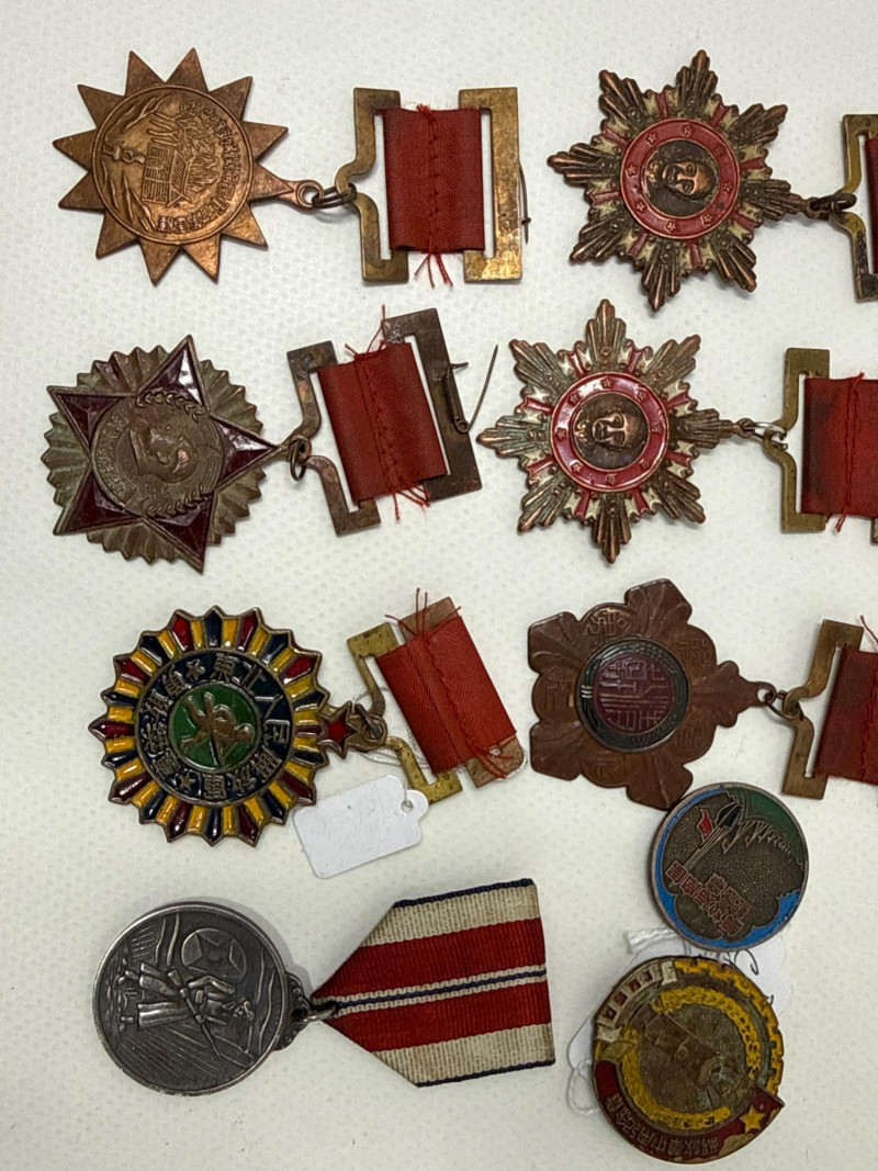 WWII and cold war era Chinese military pins, medals and badges. Conditions vary and there are several duplicates. Several are dated on the back or have script. Please see pics for details.
