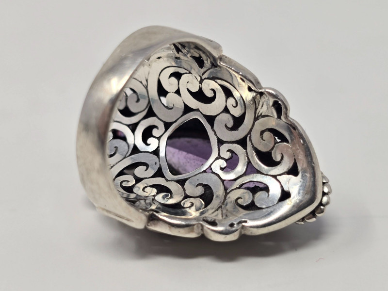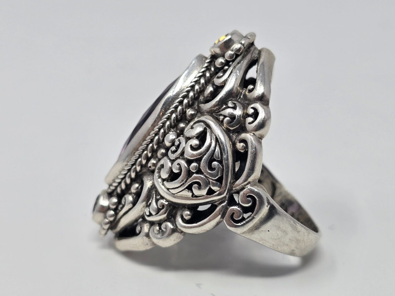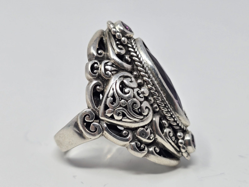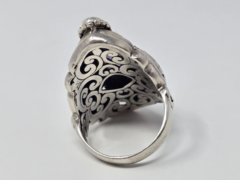 Lot # 7 - Sterling Silver SARDA Filigree Cocktail Ring w/ Purple Stone