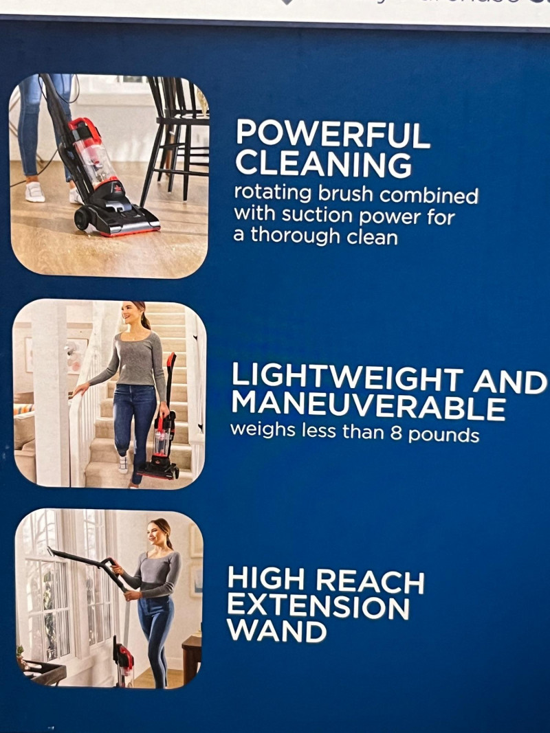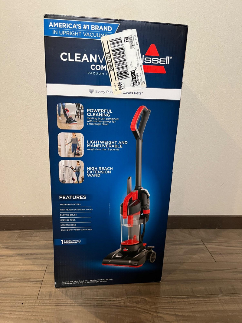 Factory‑sealed Bissell Cleanview Compact vacuum, never opened and in original retail packaging. This model is designed for efficient everyday cleaning with lightweight handling and strong suction performance. Box is clean with only minor shelf wear from storage. Features & Highlights: New, unopened retail box Lightweight compact design for easy maneuvering Multi‑surface cleaning capability Bagless system with easy‑empty dirt tank Washable filter Suitable for apartments, small homes, and quick cleanups Bissell reliability and modern Cleanview series engineering Condition: New in box No signs of prior use Packaging intact with expected light shelf wear only Included: Sealed Bissell Cleanview Compact vacuum All factory‑packed accessories (as originally included by manufacturer) Original documentation inside box Notes: