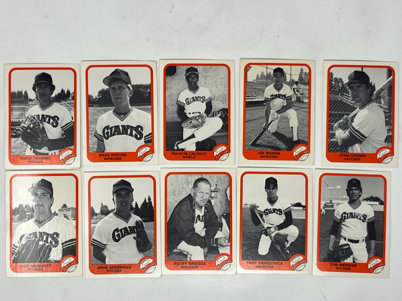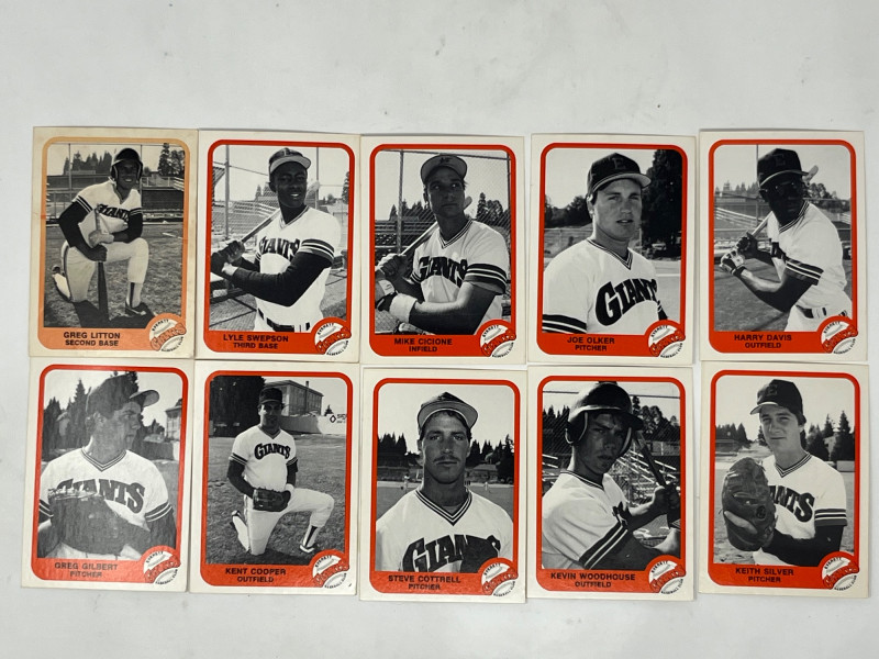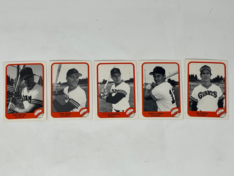 Minor league team sets from this period remain desirable due to their limited print runs and connection to future major league talent. This set offers a complete roster with additional 5th Series cards for collectors who appreciate variations and supplemental team issues. Included in This Lot: Complete 1984 Everett Giants team set A few cards from the 5th Series One duplicate card