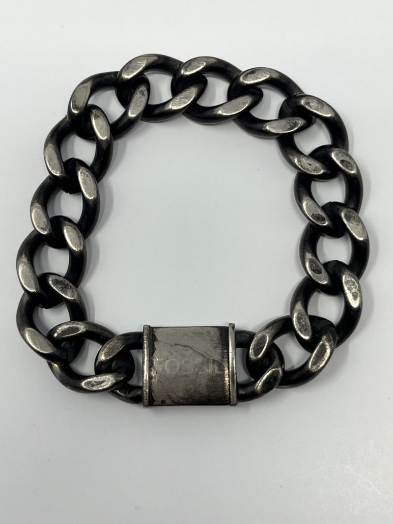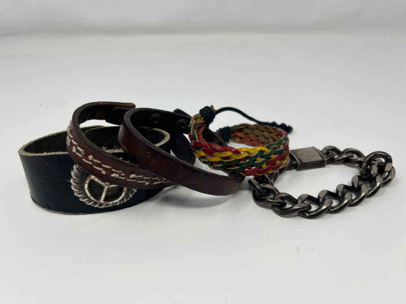 Lot # 29 - Men’s Mixed‑Material Bracelet Lot – Leather Bands & Fossil Metal Chain