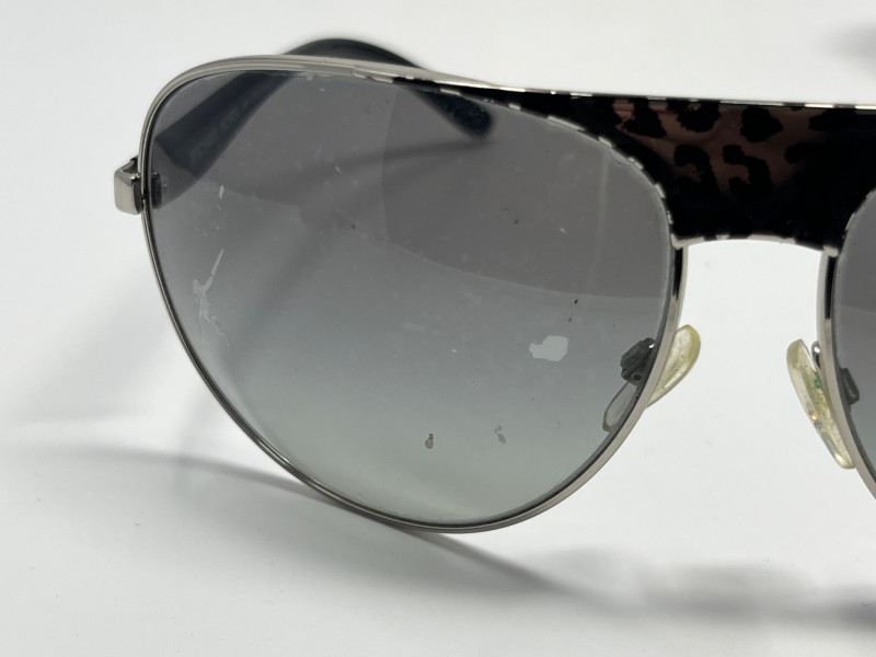 • Dark gray aviator sunglasses with animal-print detailing across the nose bridge