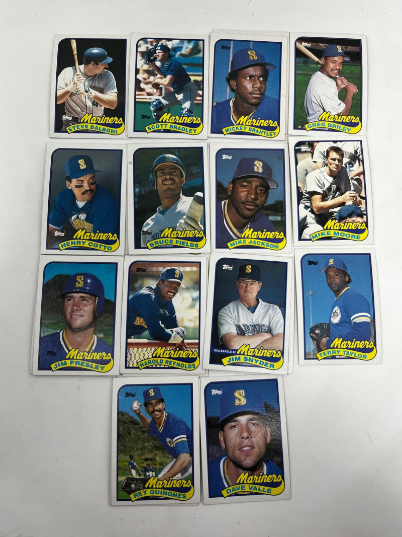Offered here is a mixed assortment of original 1989 Topps Baseball trading cards, sourced from an estate collection. This release is known for its bold team-color borders, classic late‑80s design, and strong representation across all Major League teams. Cards from this year remain popular with collectors, set builders, and vintage hobbyists. Highlights: Authentic 1989 Topps Baseball issue Includes individual player cards representing 26 different MLB teams Lot also contains a variety of themed subsets, including: