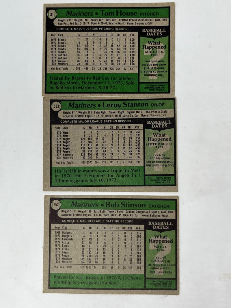 Cards have not been professionally graded. Condition varies throughout the lot and reflects typical age‑related handling and long-term storage. Corners, edges, and surfaces may show wear consistent with vintage collections. Please review all photographs for the most accurate representation of condition. Collector Notes: