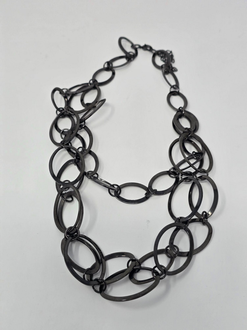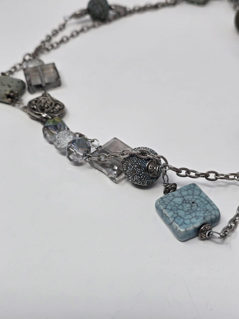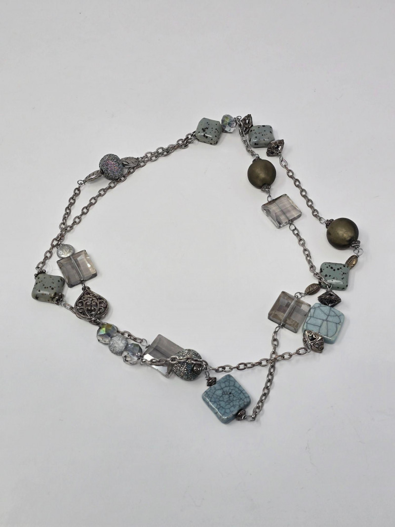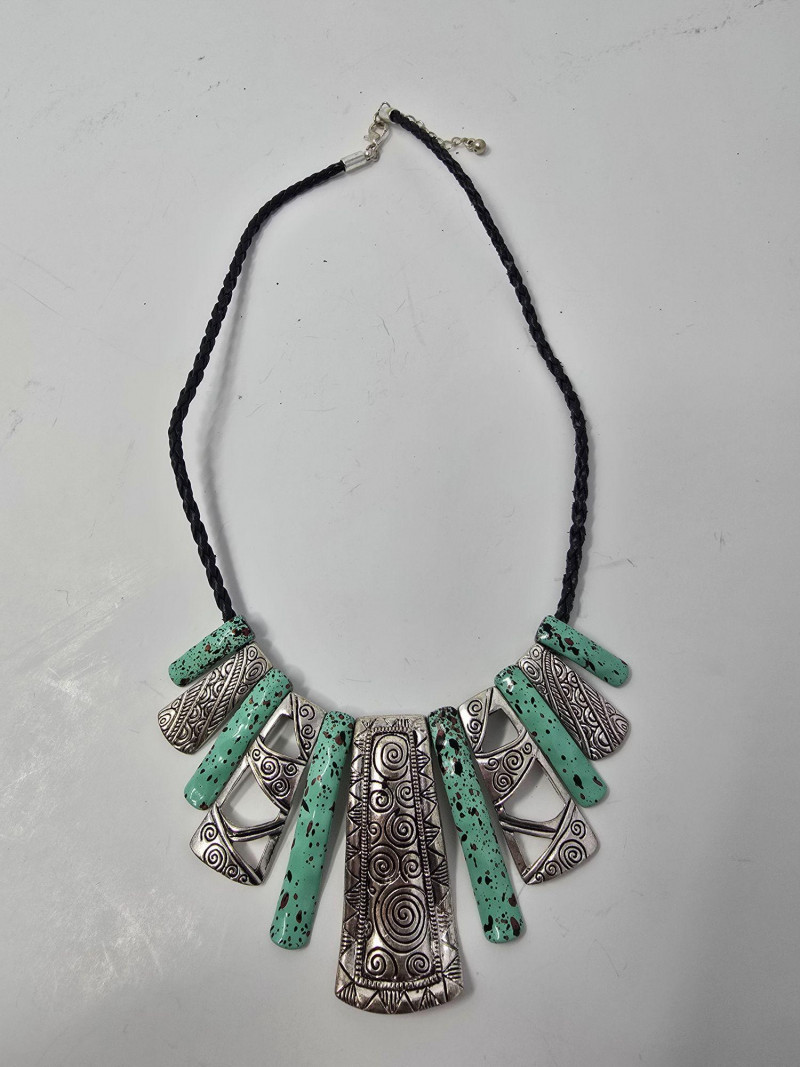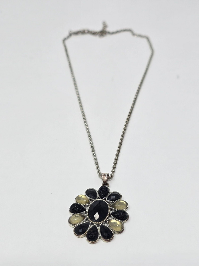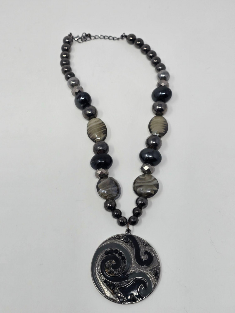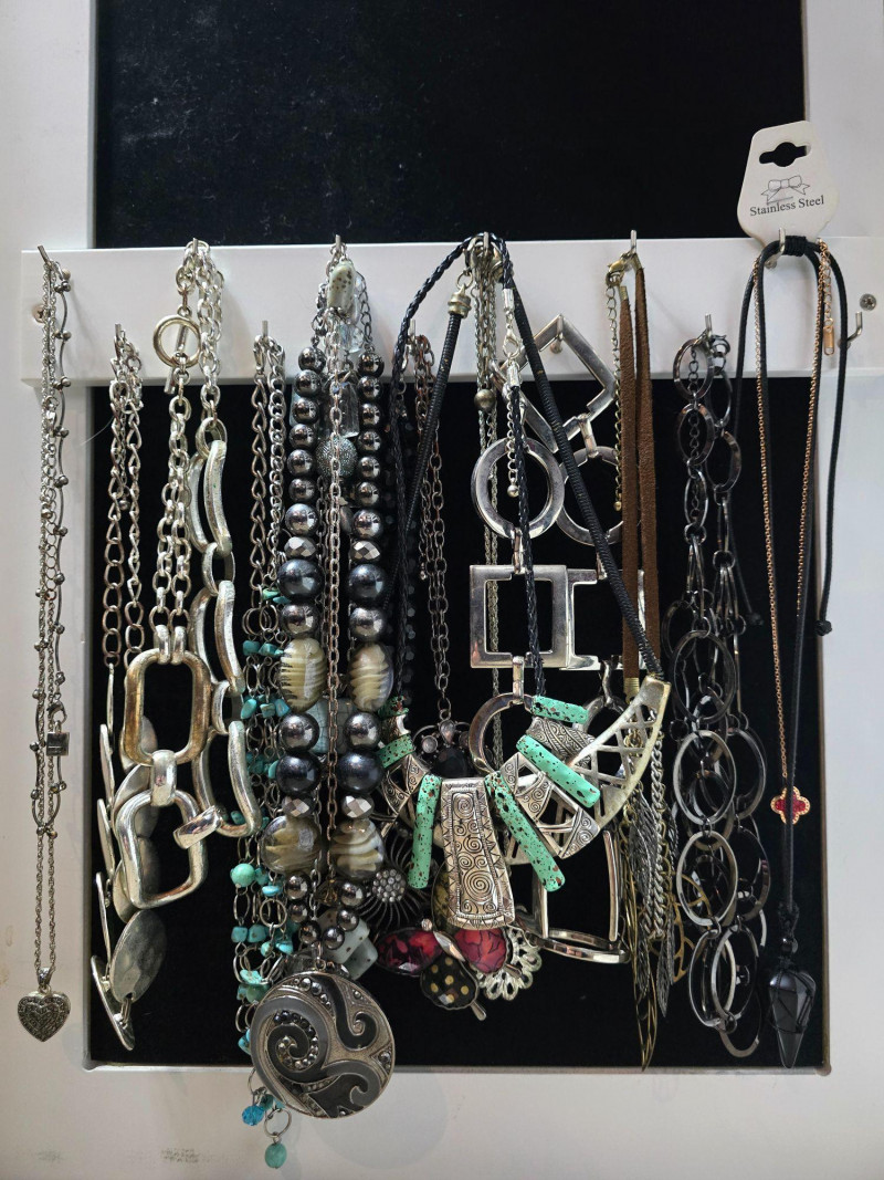 Assorted group of contemporary and vintage-style necklaces in a range of designs and materials. Includes modern geometric pieces, pendant necklaces, and mixed‑material styles. Materials vary and may include metal alloys, resin, glass, beads, and natural elements. Lengths and finishes differ across the lot. Light wear consistent with age and use. Sold as a single lot. See photos for details.