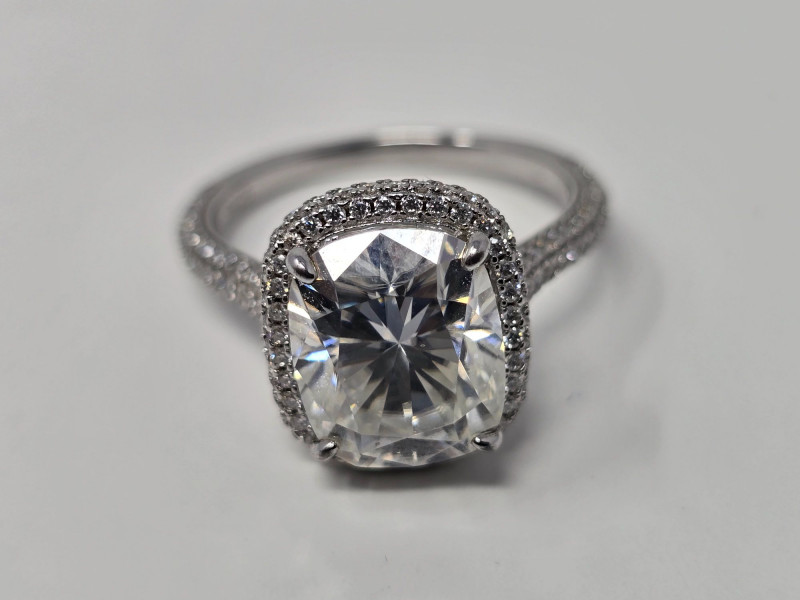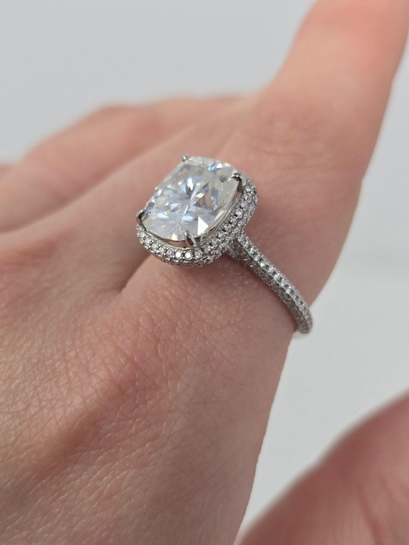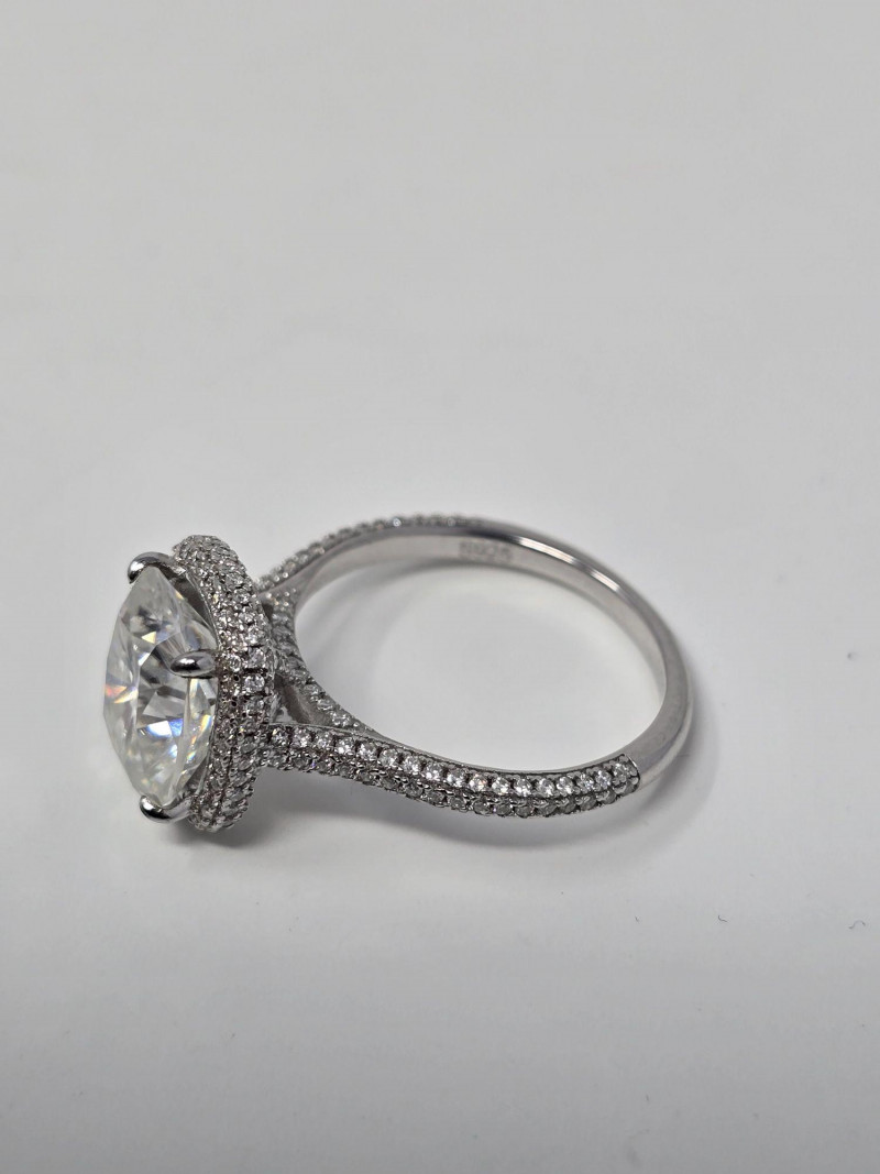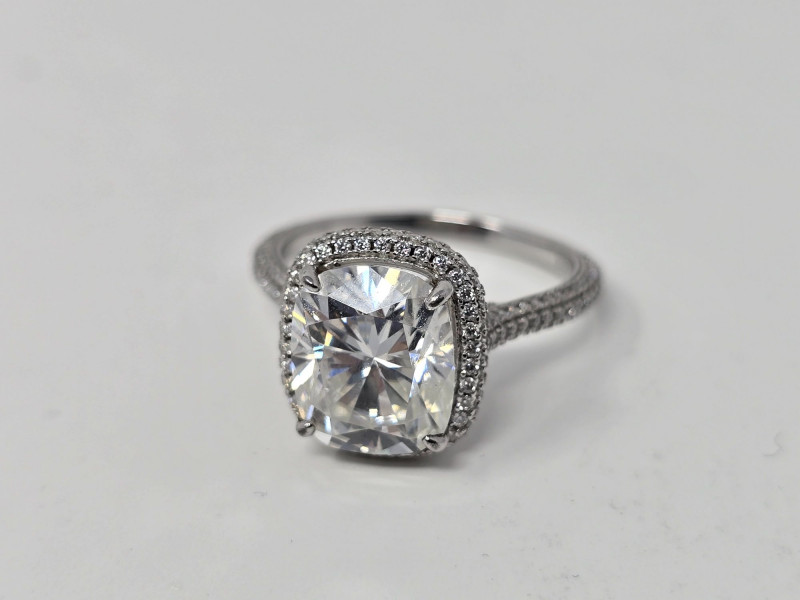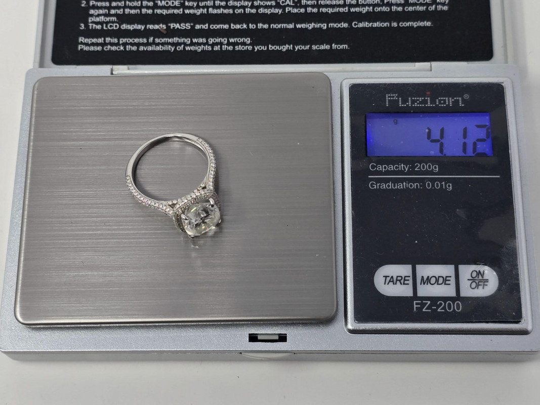 Lot # 78 - Sterling Silver 925 Halo Ring With Elongated Cushion Stone