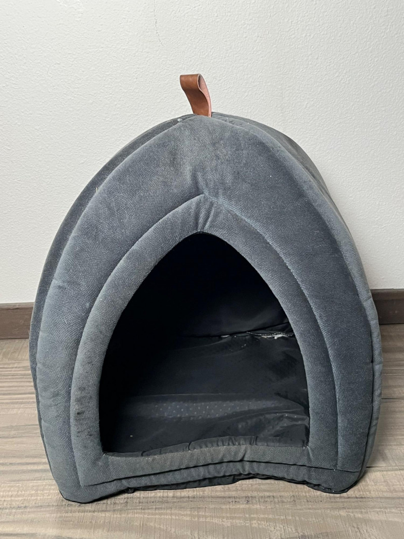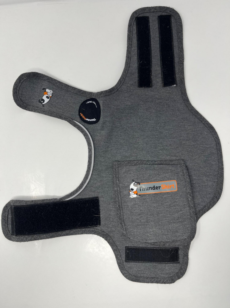 Comprehensive assortment of small‑pet essentials, all recommended for XS–S sized dogs. Includes a small dog bed, soft‑sided pet carrier bag, bag‑style carrier, and a front chest carrier for hands‑free transport. Also included is a set of pet steps for safely reaching furniture, plus a basket of assorted soft toys. Apparel and handling accessories include a ThunderShirt‑style calming jacket, a pet coat with leash‑access cutout, a harness with top grab‑handle, and a tug leash. Items show light household use with no noted damage. A practical, ready‑to‑use bundle for small‑pet care and transport.