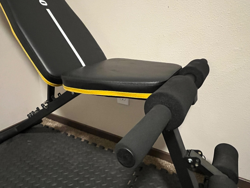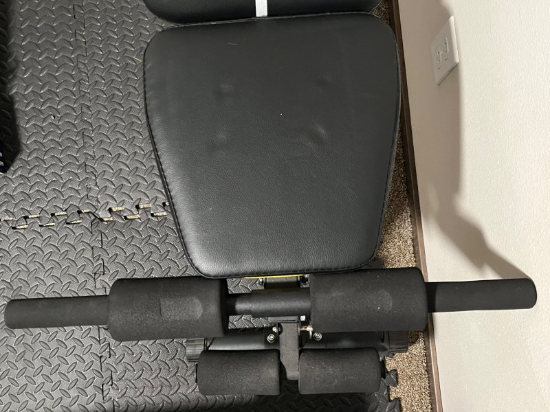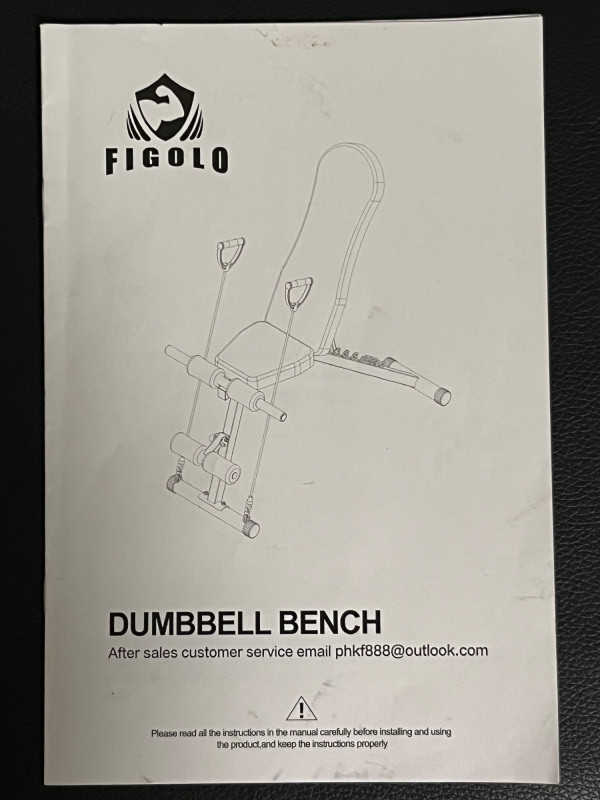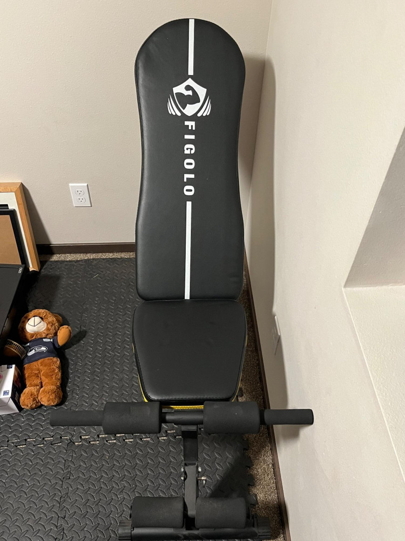 A versatile home‑fitness bench designed for strength training, free‑weight routines, and general conditioning. This Figolo model offers a stable platform with a compact footprint, suitable for small workout areas or multi‑purpose rooms. The bench shows light cosmetic wear from normal use but remains fully functional and structurally sound. Includes the original user manual for reference and setup guidance. Please note: the pull straps originally offered with some configurations are not included with this unit. Approx. Measurements: 24" W × 44" H × 46" L