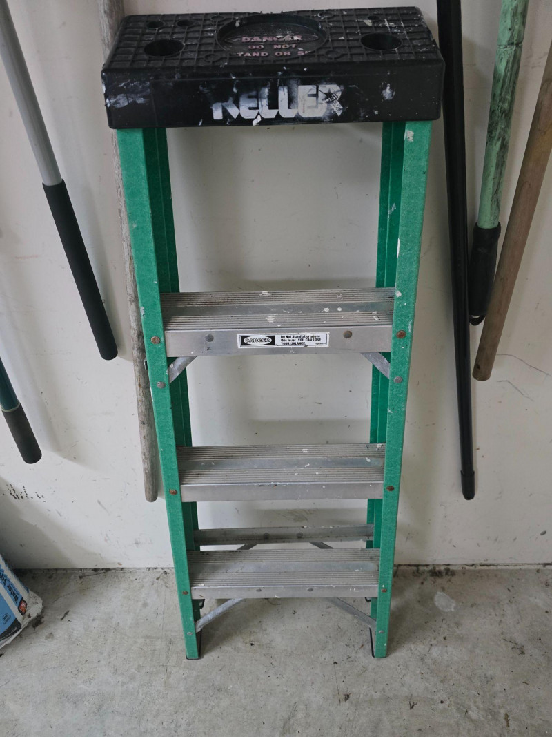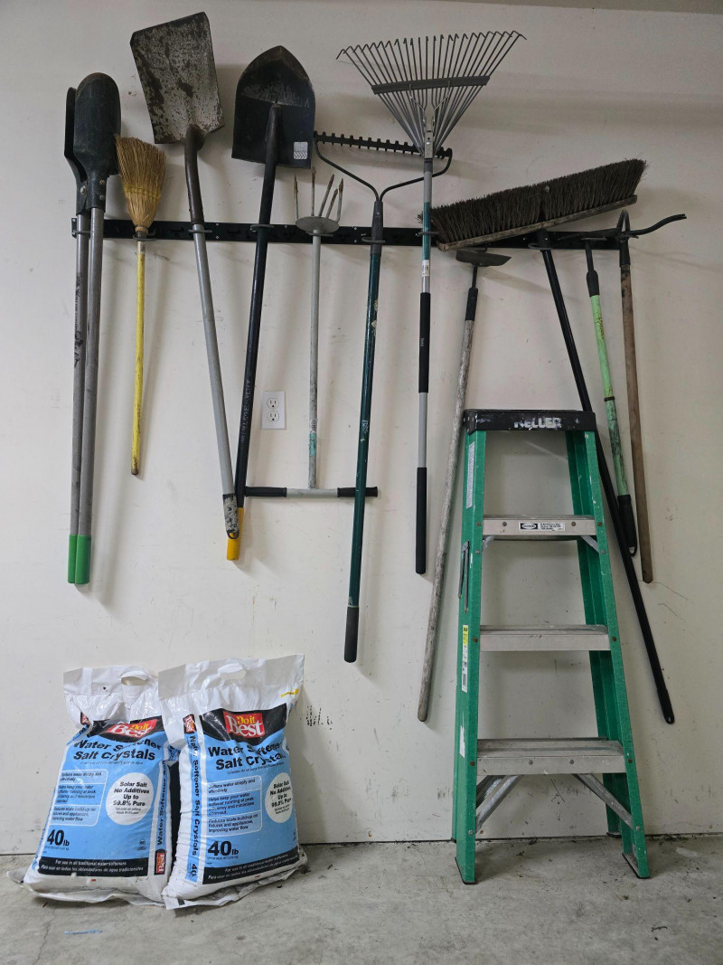 Lot # 87 - Miscellaneous Outdoor Tools – Ladder, Salt Bags, Shovels & More