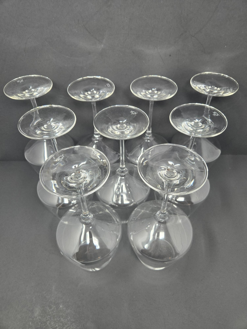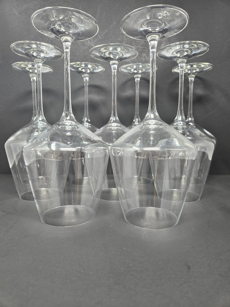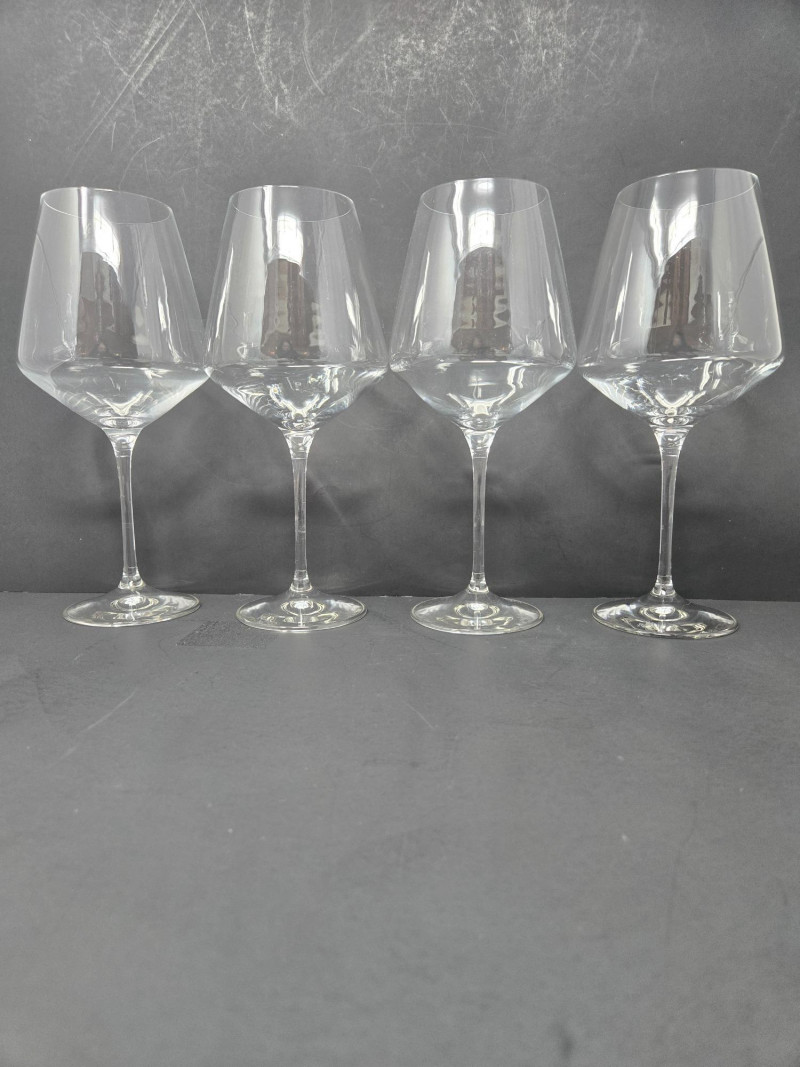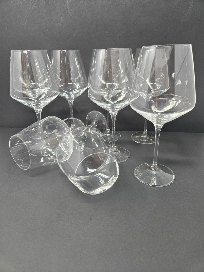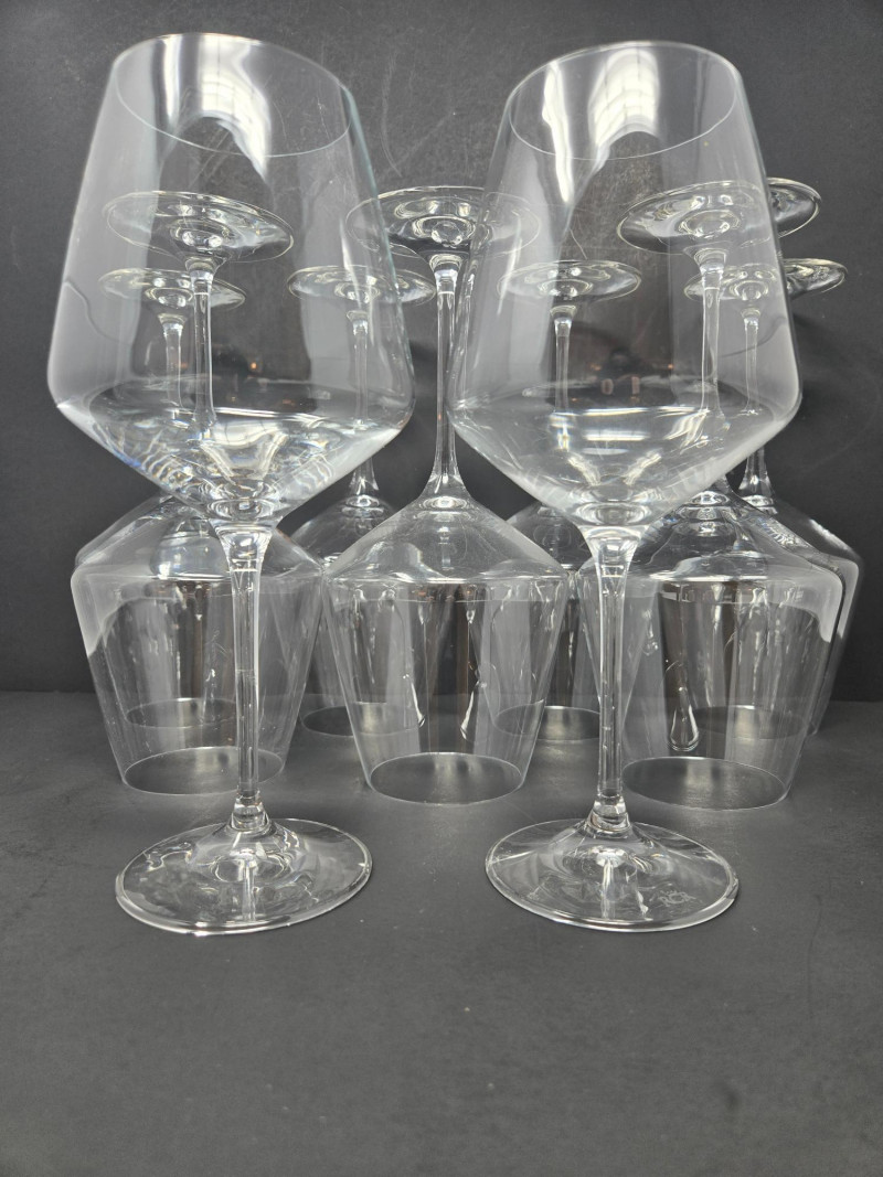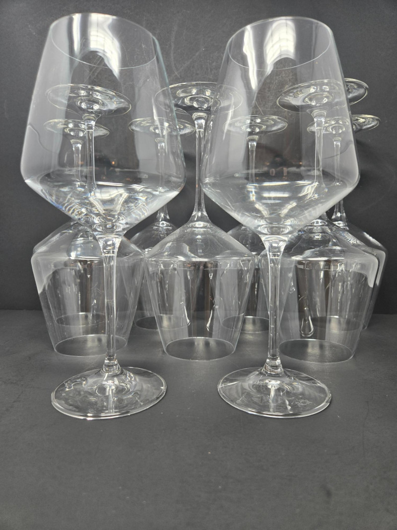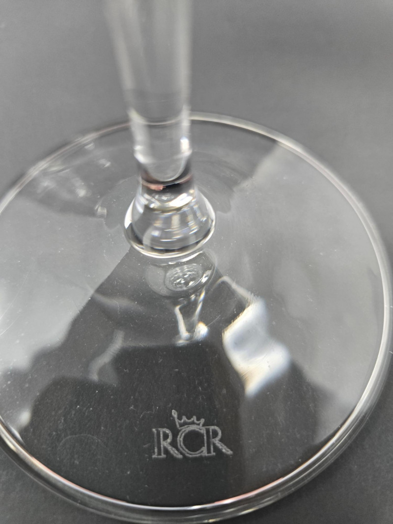 Set of RCR Bordeaux wine glasses, which are known for their elegant design and high-quality crystal craftsmanship. Design & Shape: Material: Quantity: Condition: