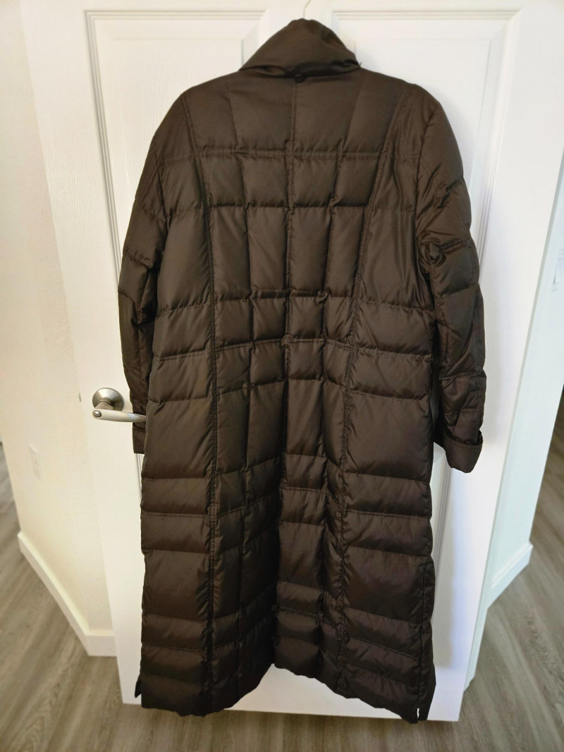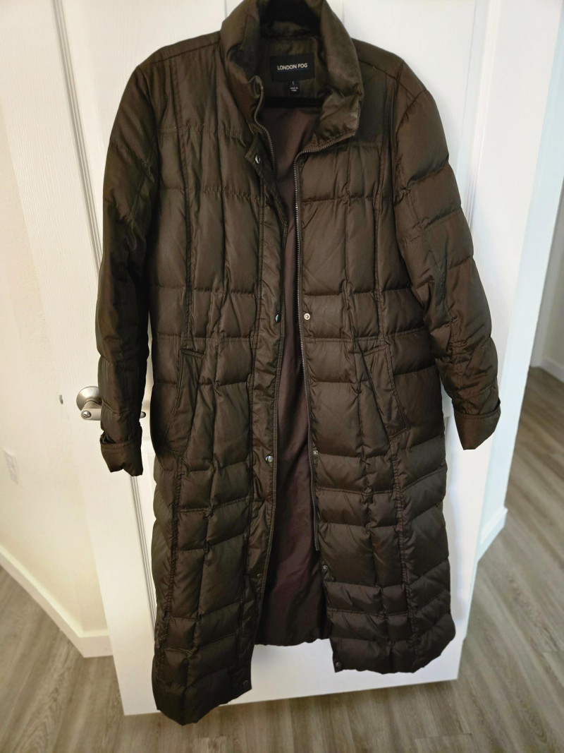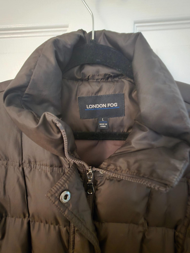 Ladies London Fog puffer coat in dark brown, size Large. Style & Design: Closure & Details: Condition: