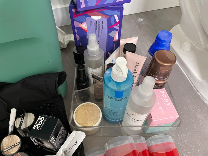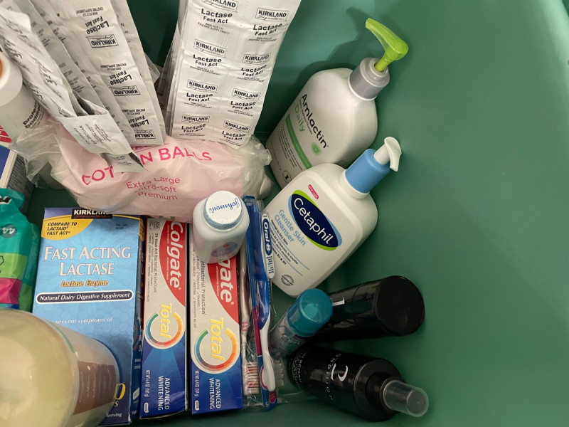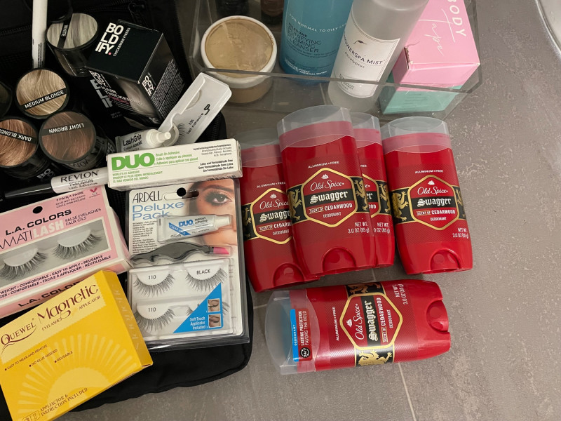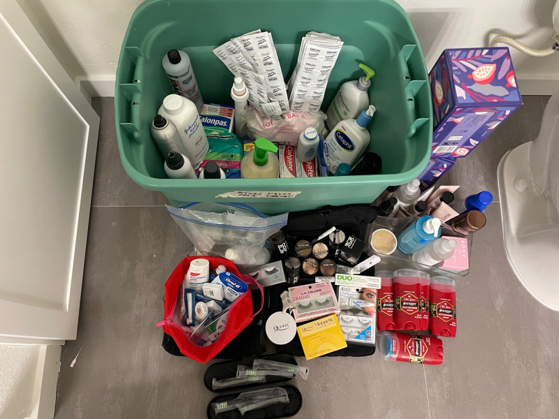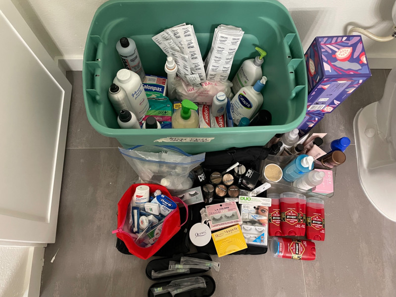 Condition: Mixed new and gently used; organized and ready for use Skin & Body Care: Lotions: Cetaphil, Lubriderm, Aveeno, Nivea, Vaseline Soaps & Washes: Softsoap, Dial, Dove Deodorants: Secret, Degree, Old Spice, Sure Hair Care: Shampoos: Pantene, Herbal Essences, Head & Shoulders Styling & Treatment: Olay, Neutrogena Dental & Oral Care: Toothpaste: Colgate, Sensodyne Mouthwash: Listerine Brushes & Accessories: Oral-B, floss picks Medication & First Aid: Pain relief: Advil, Tylenol Allergy & cold: Benadryl, Vicks Skin treatments: Hydrocortisone, Neosporin, Lamisil, Clotrimazole Motion sickness: Dramamine Eye care: Visine Lip care: Carmex Feminine Hygiene: Products from Always and Tampax Cosmetics & Accessories: DUO lash adhesive, La Colors makeup Q-tips, small organizers and travel bags Maintenance Supplies: Dezcal descaling powder for coffee machinesLot Title: Tub Full of Toiletries – Everyday Essentials