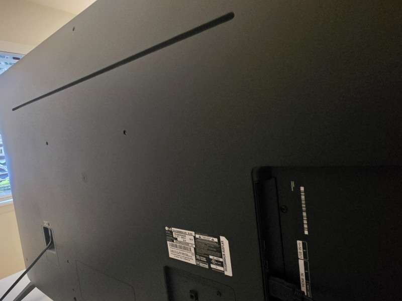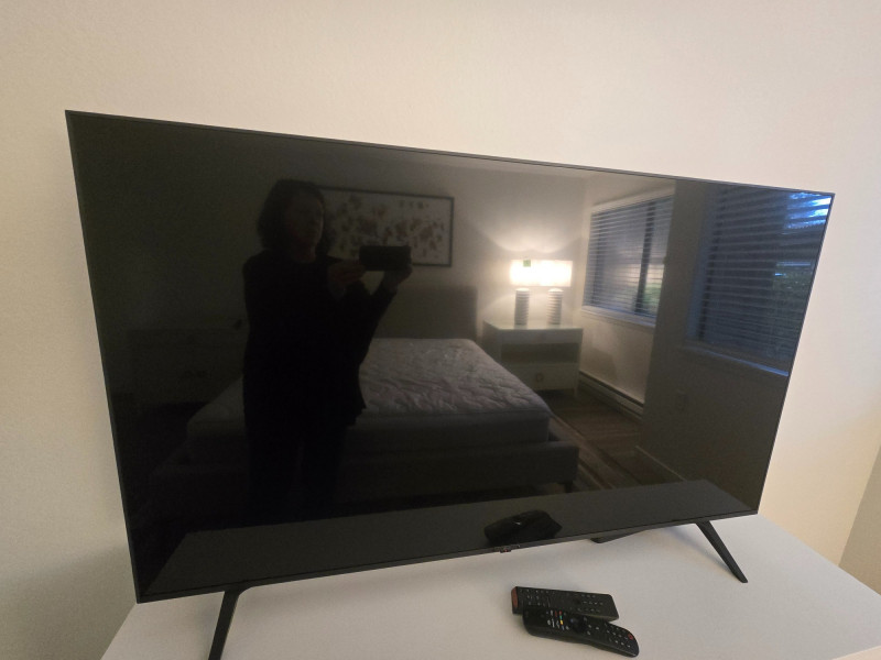 56" Flat-screen TV with a sleek, modern design. Screen: Stand: Accessories: Setting:
